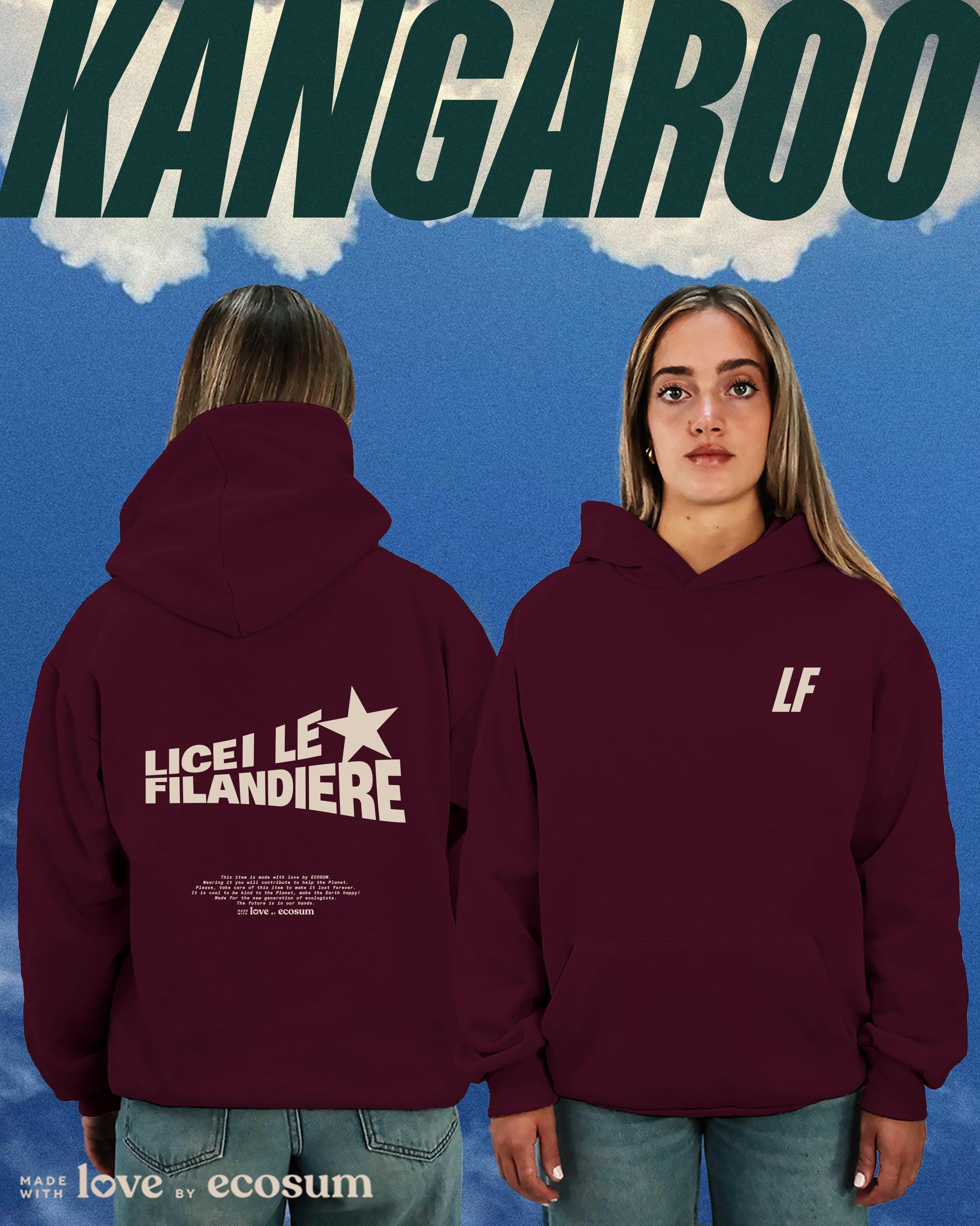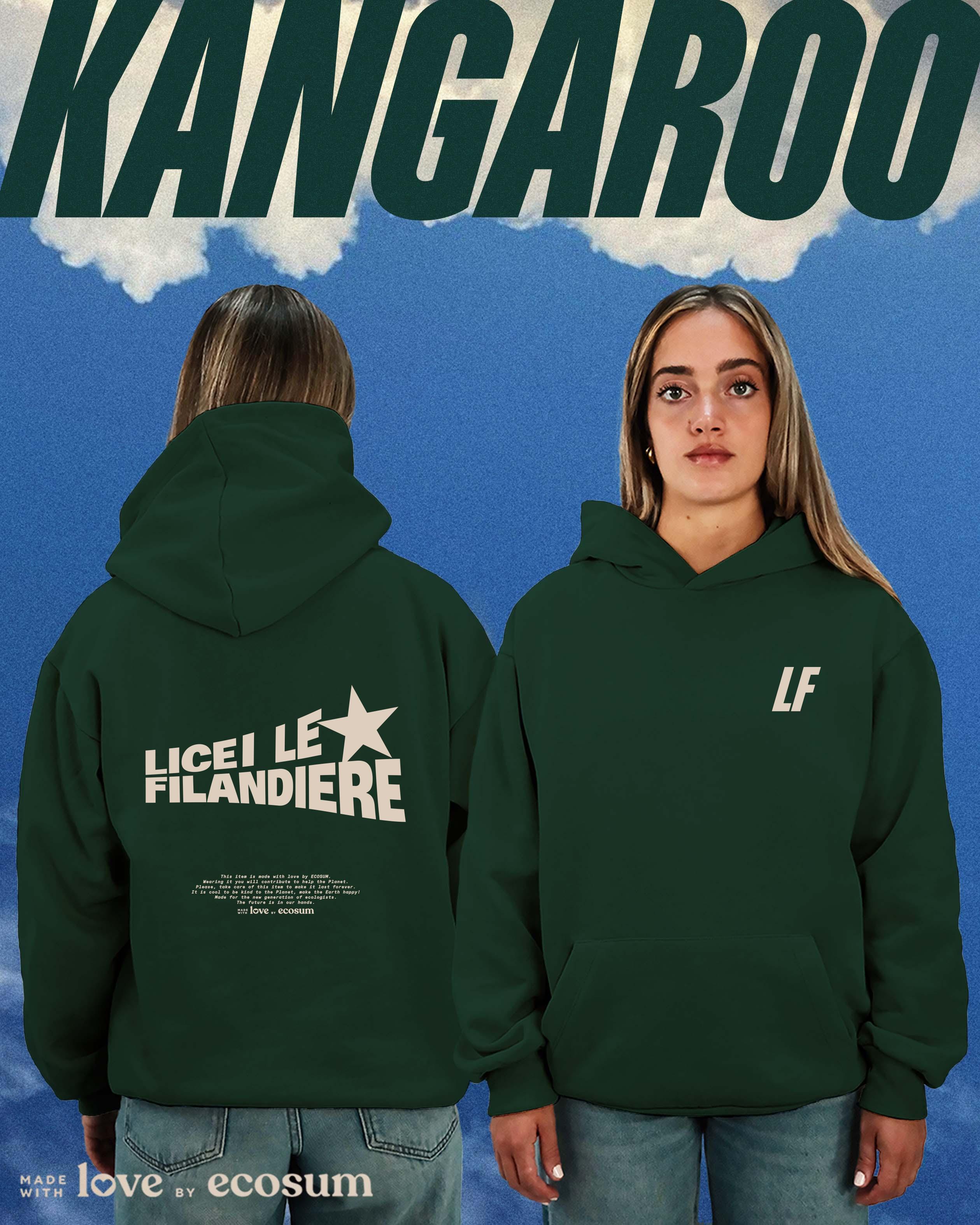 Hoodie iconica con cappuccio e tascone, studiata e prodotta in Italia con filati riciclati.