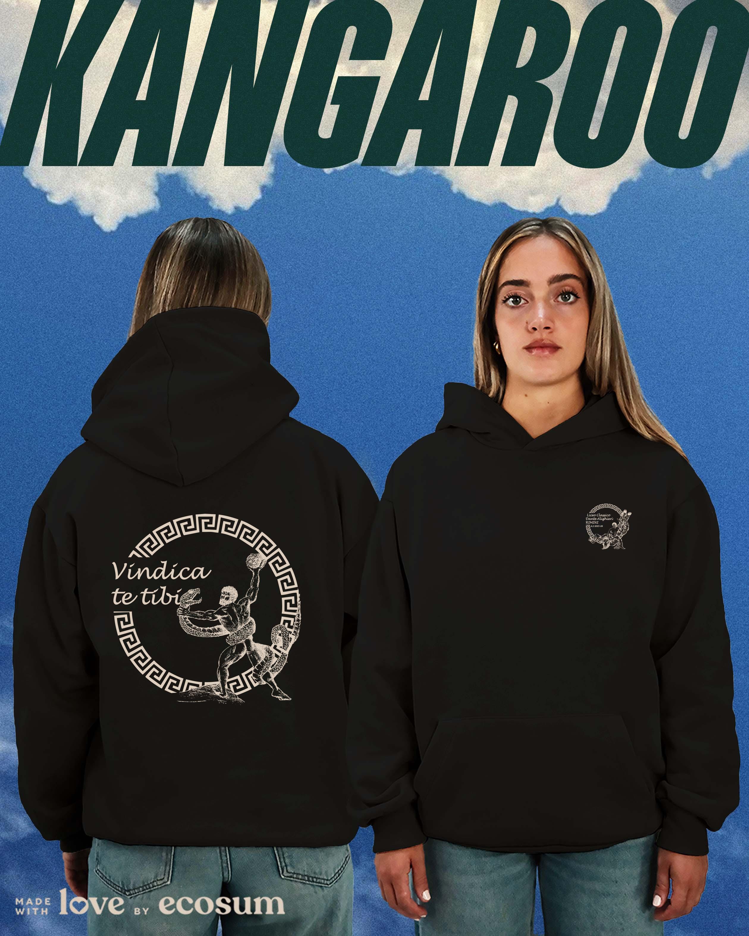 Hoodie iconica con cappuccio e tascone, studiata e prodotta in Italia con filati riciclati.