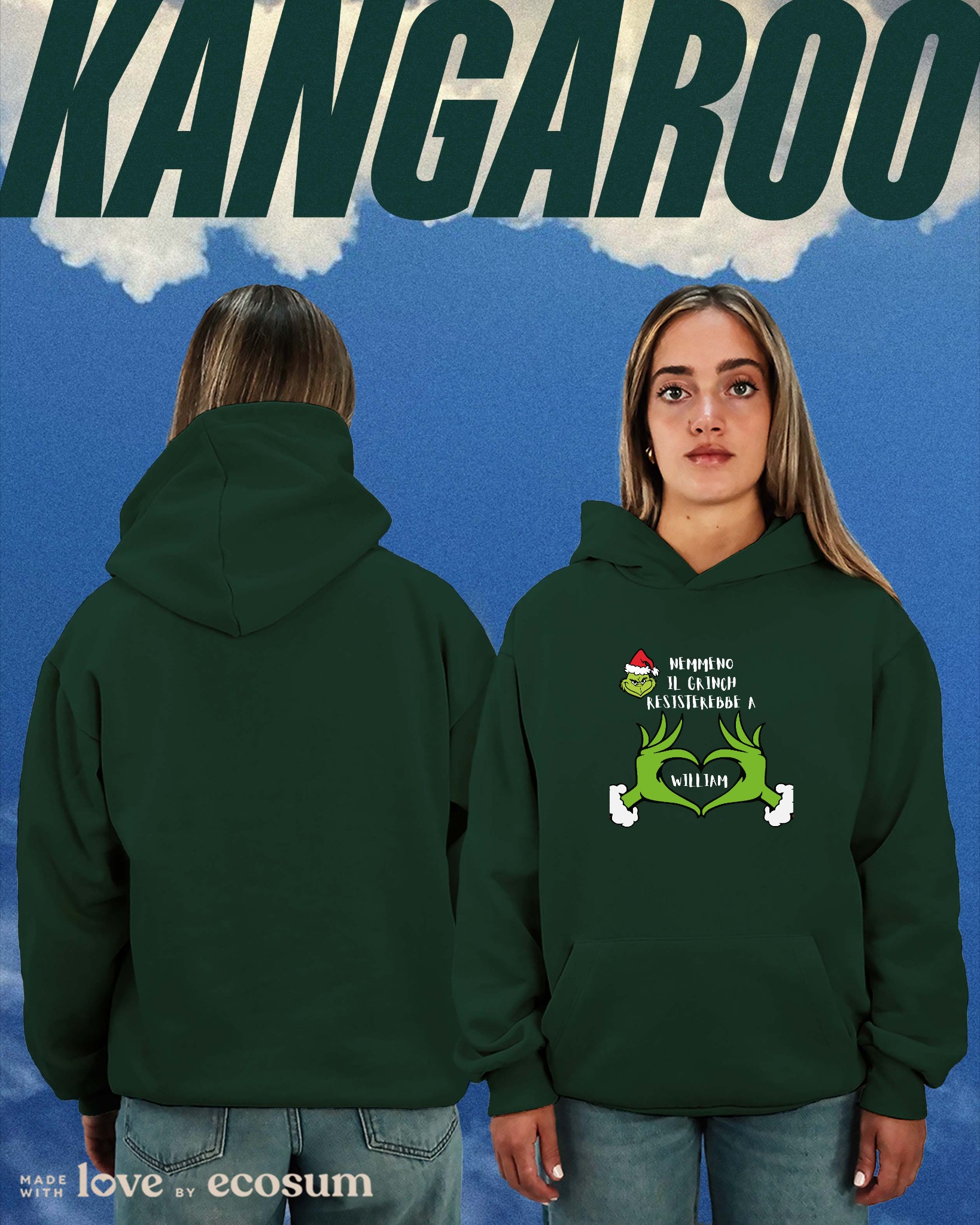 Hoodie iconica con cappuccio e tascone, studiata e prodotta in Italia con filati riciclati.