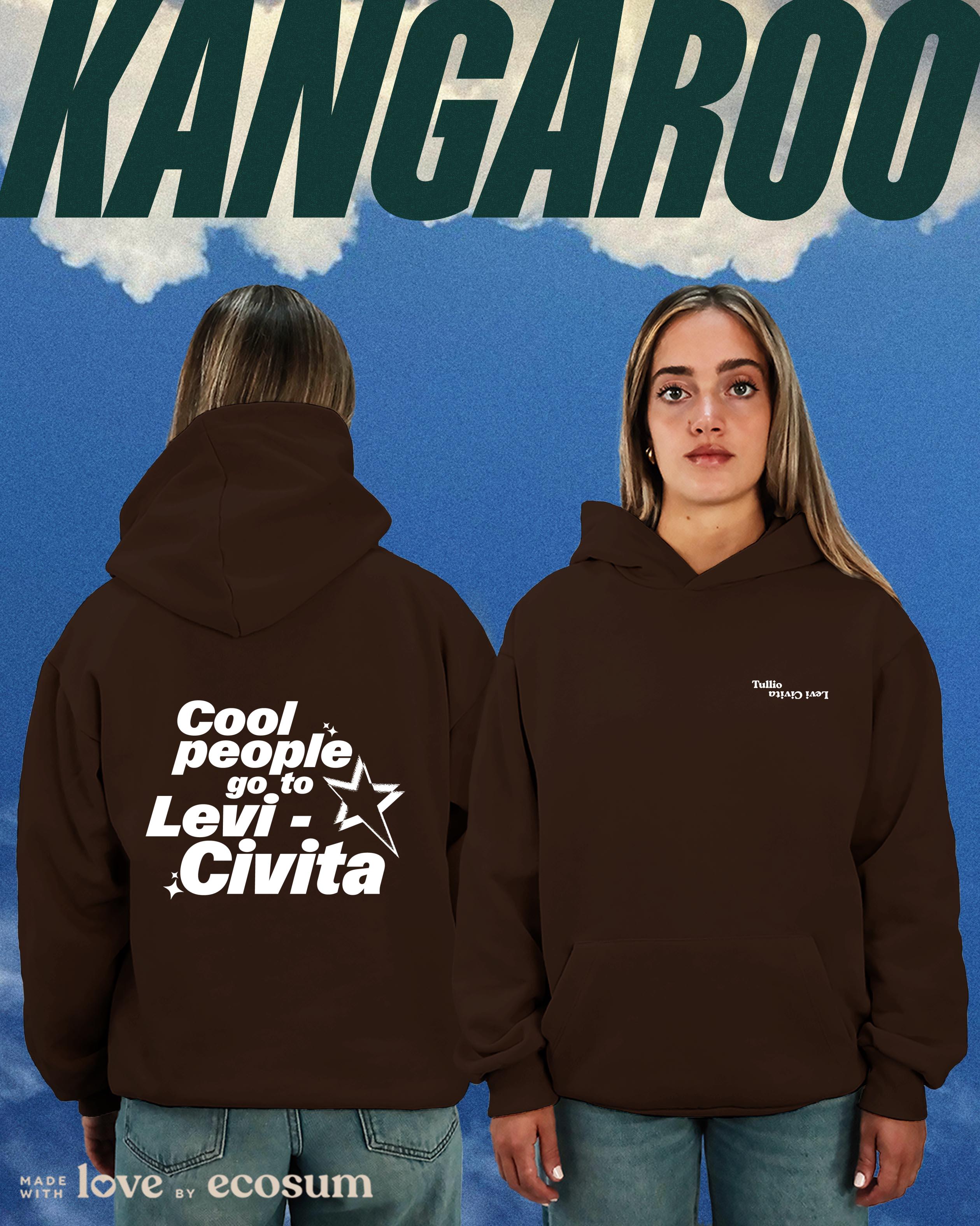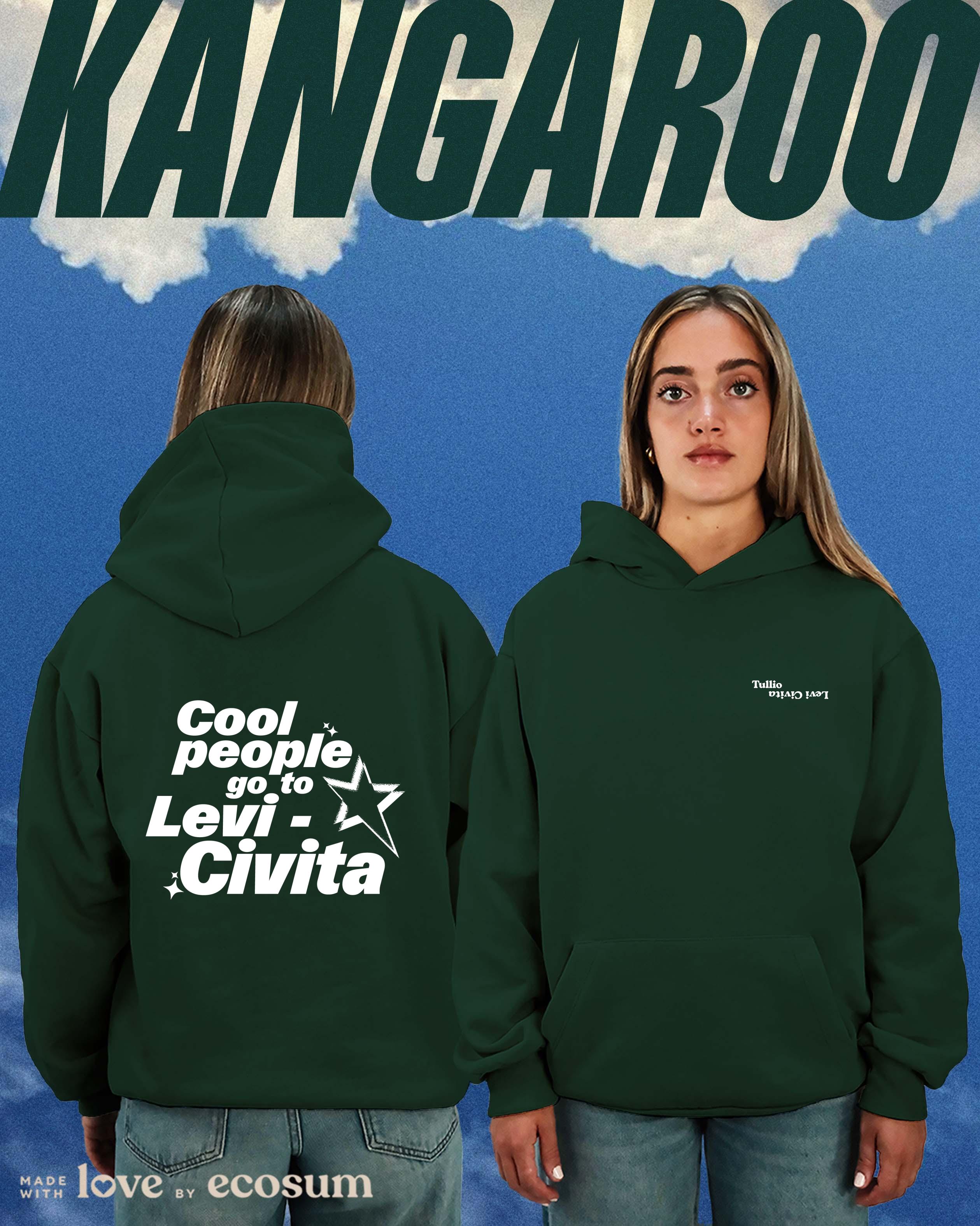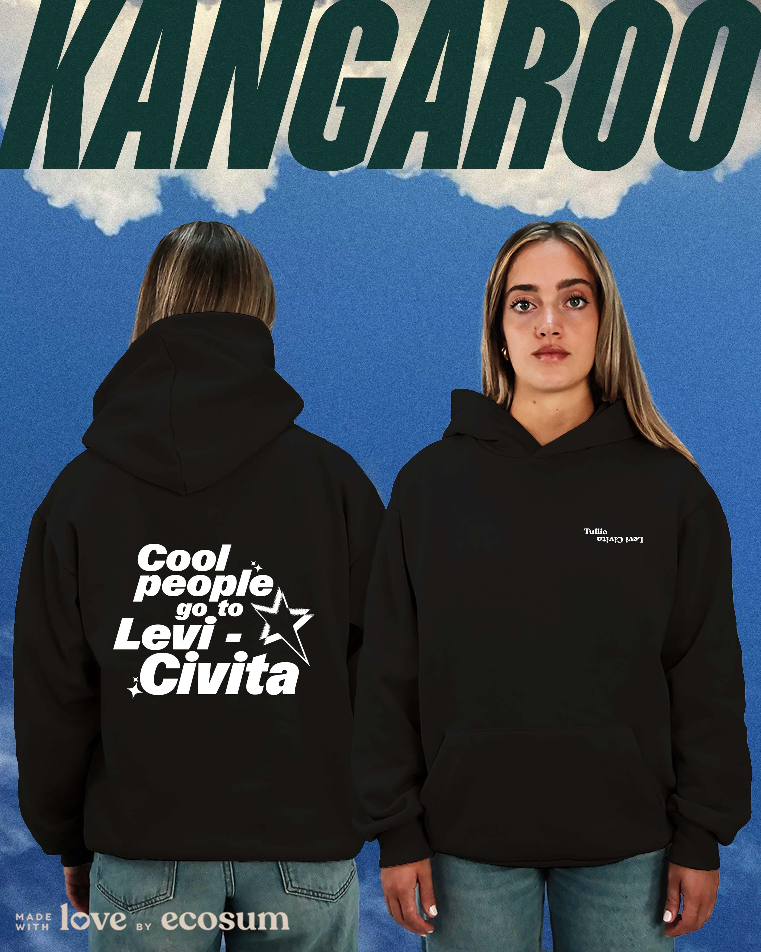 Hoodie iconica con cappuccio e tascone, studiata e prodotta in Italia con filati riciclati.
