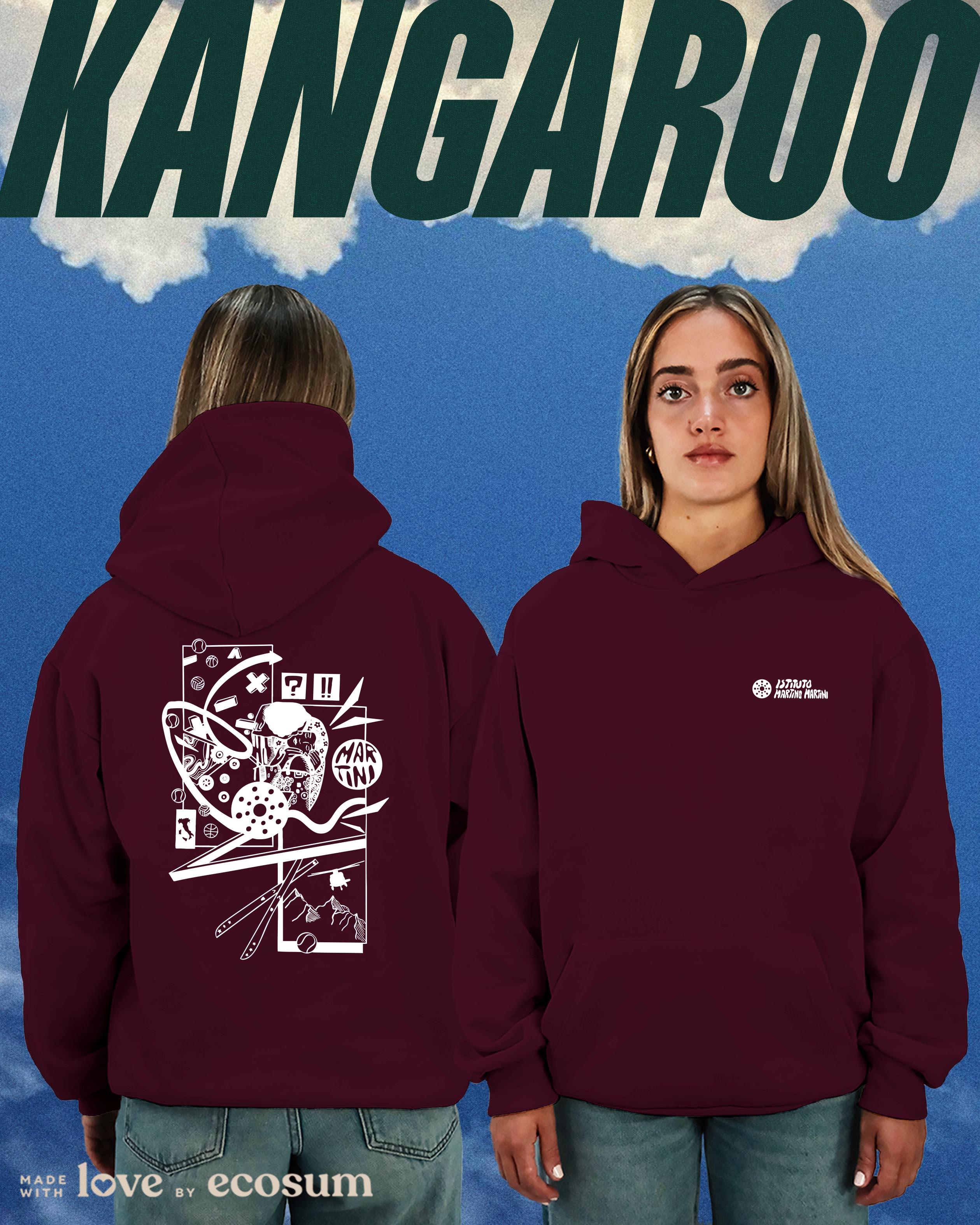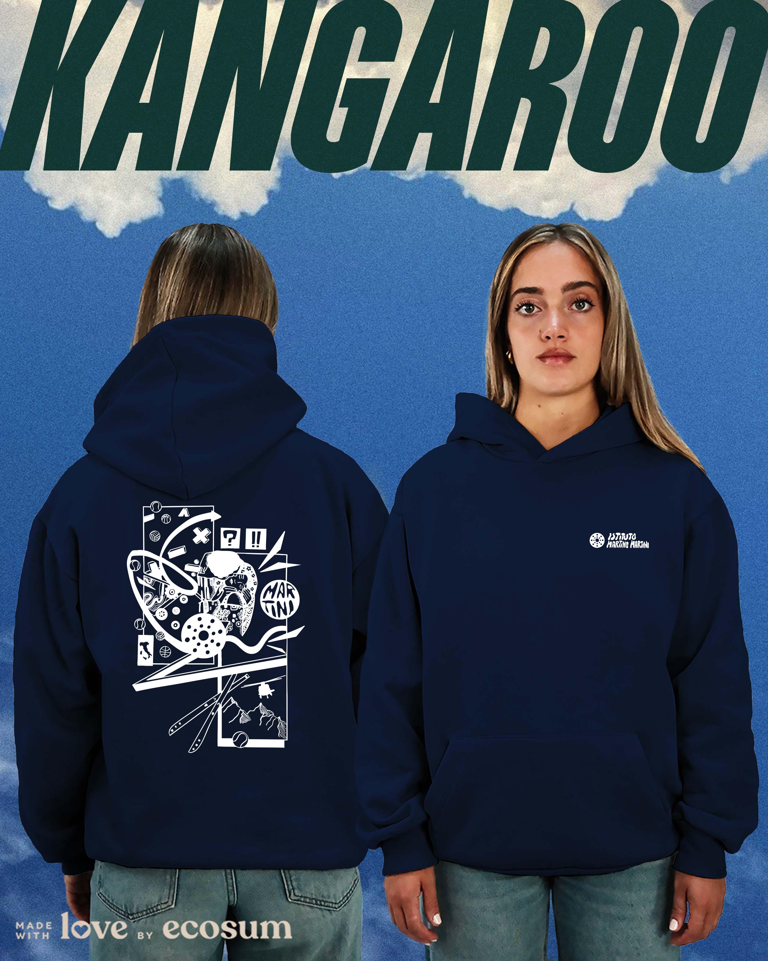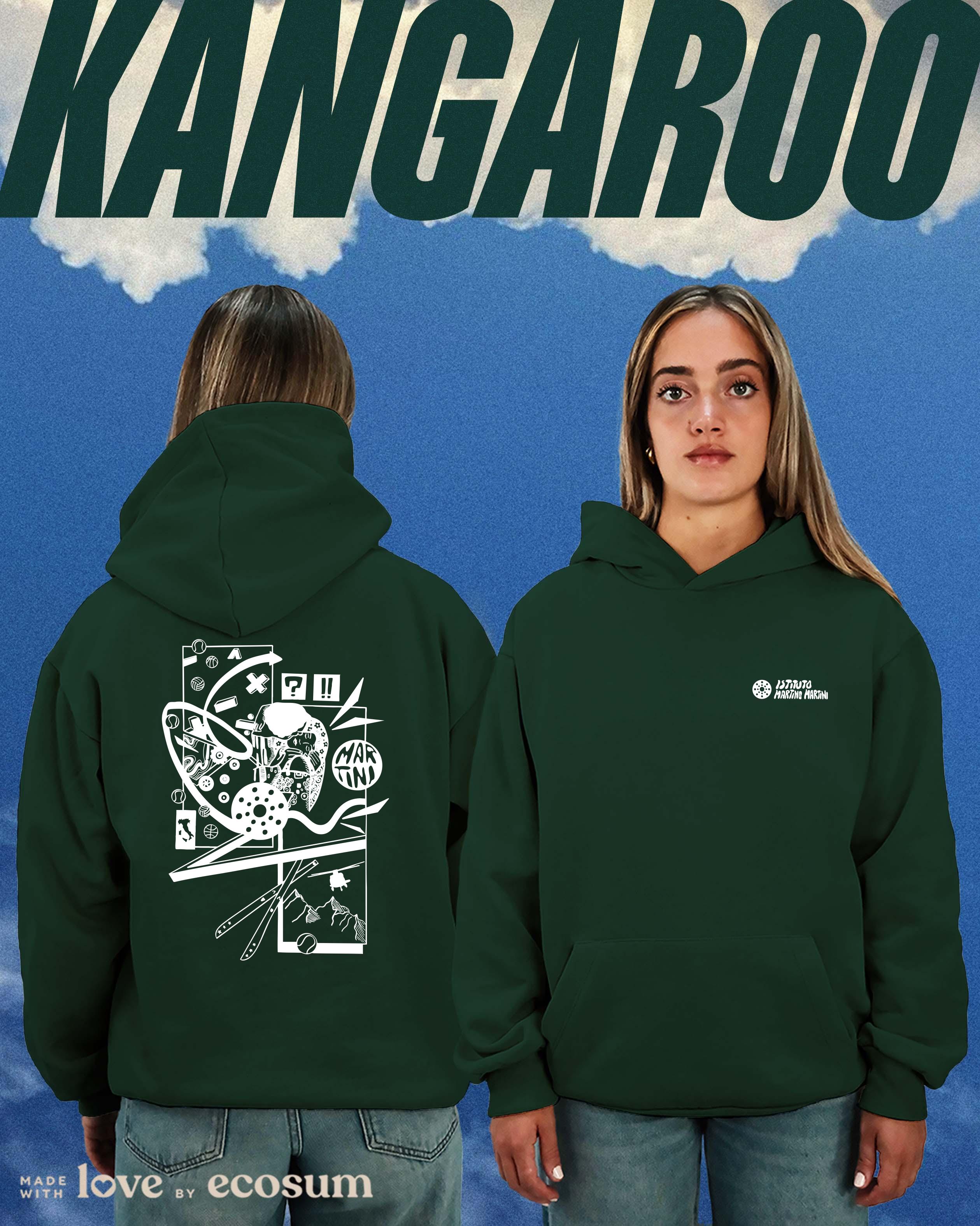 Hoodie iconica con cappuccio e tascone, studiata e prodotta in Italia con filati riciclati.