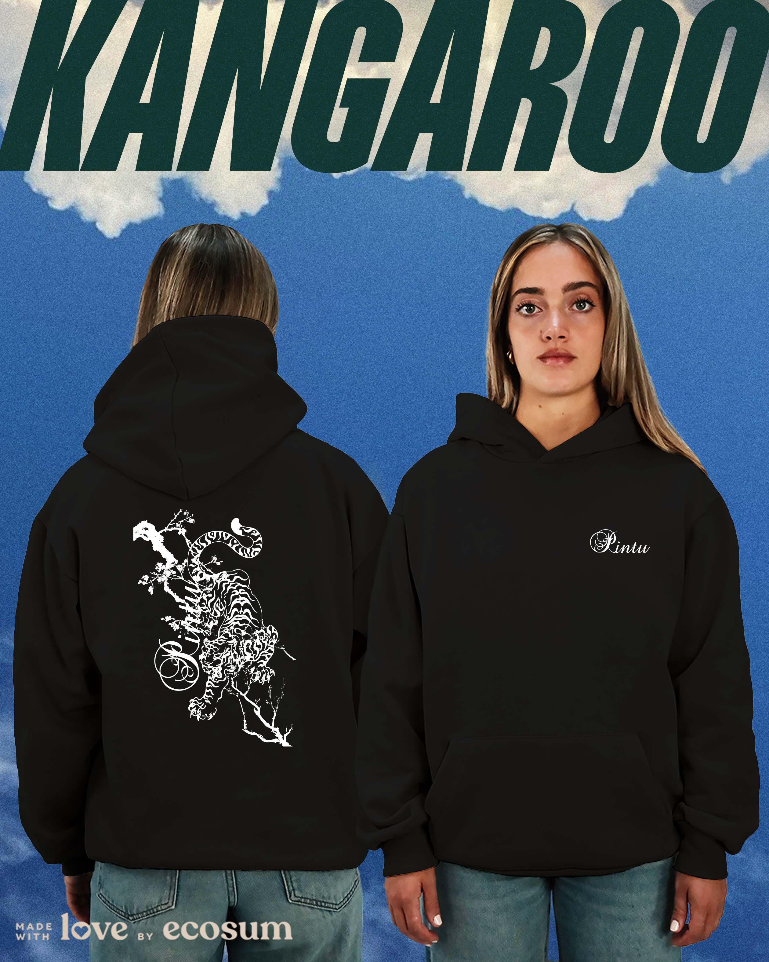 Hoodie iconica con cappuccio e tascone, studiata e prodotta in Italia con filati riciclati.