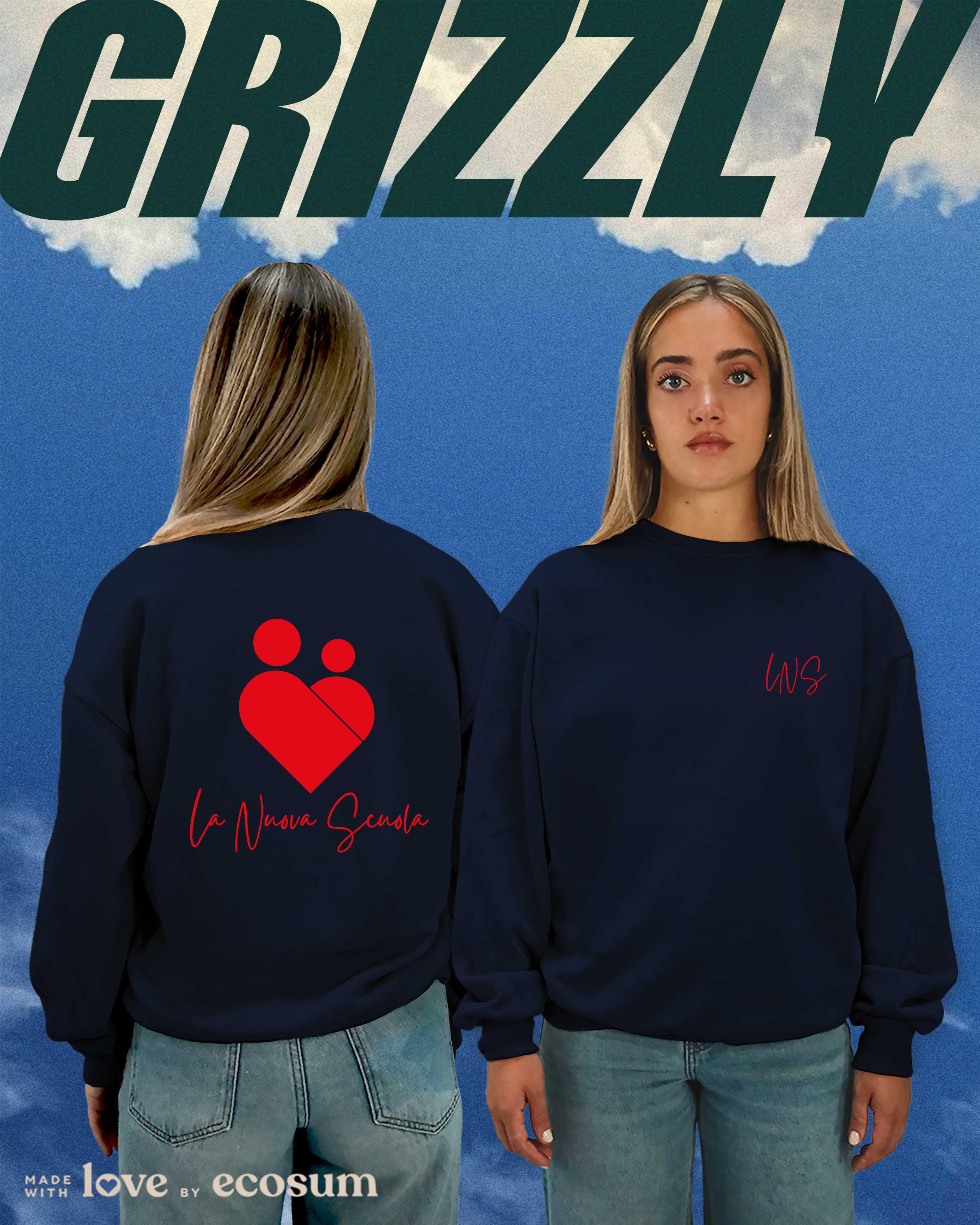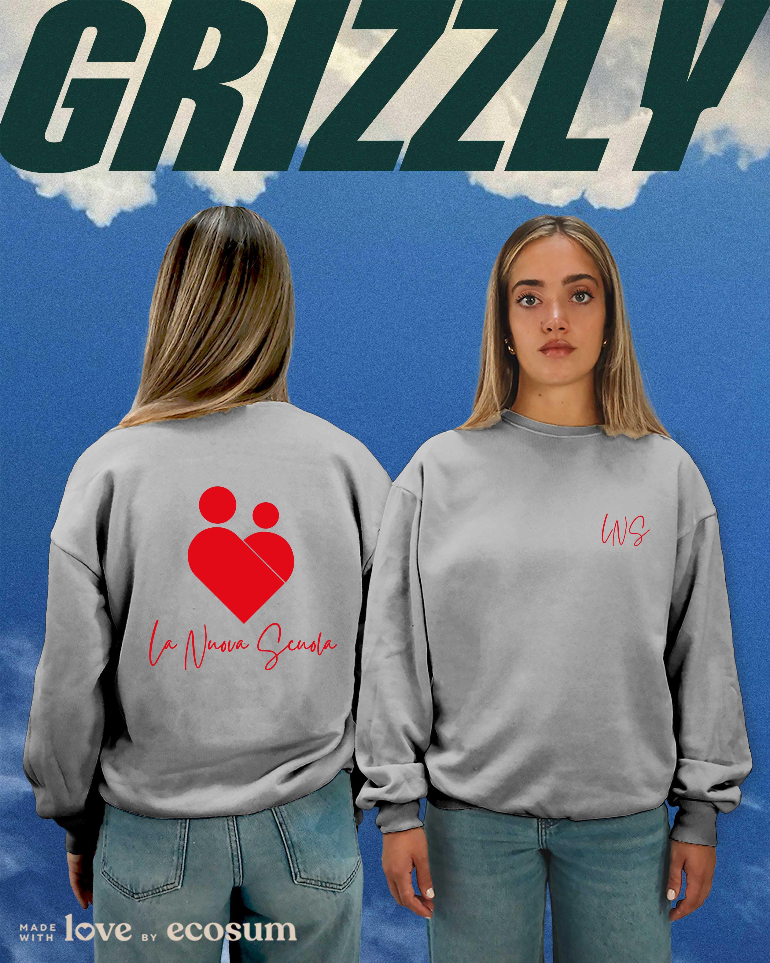 Crewneck iconica girocollo, studiata e prodotta in Italia con filati riciclati.