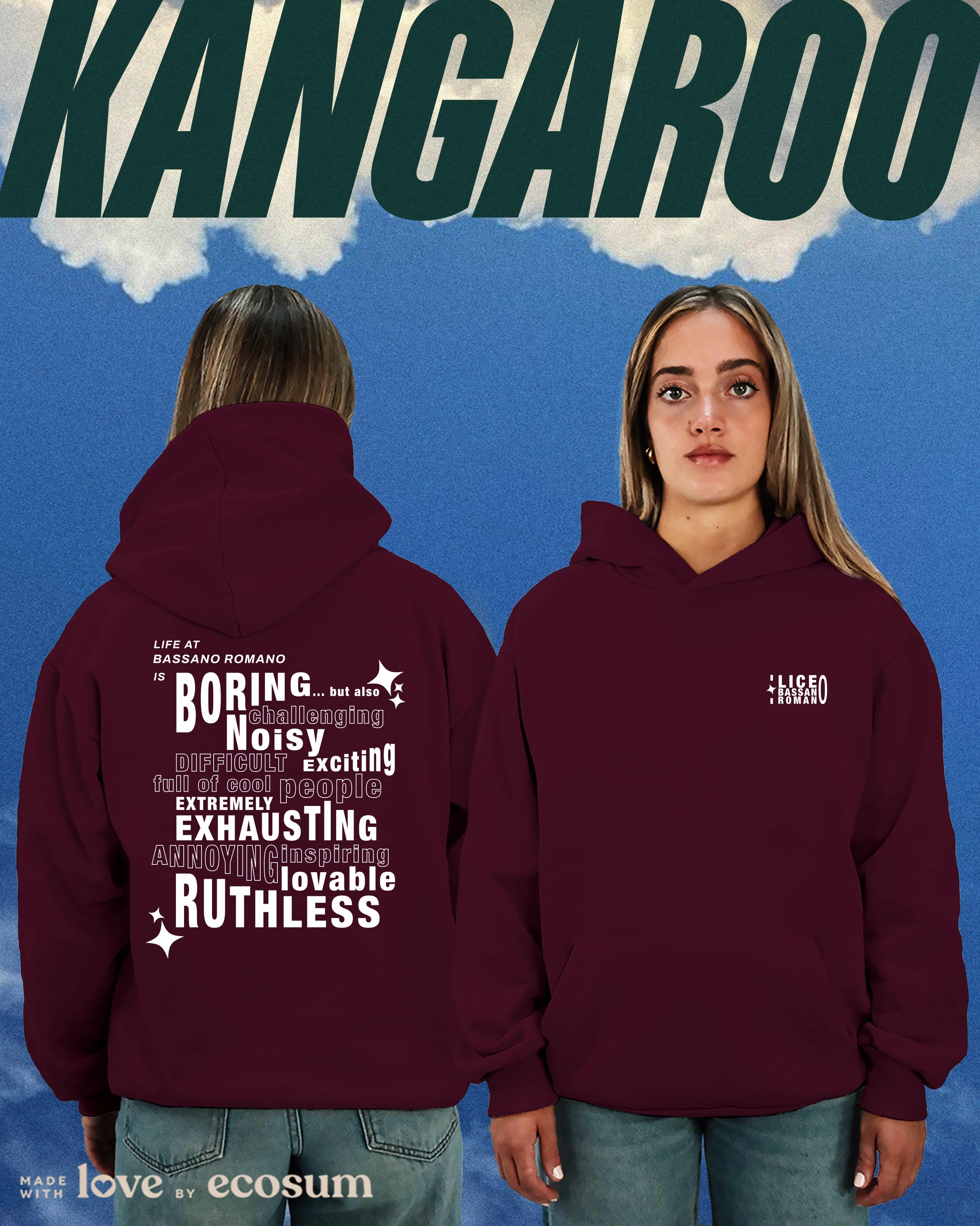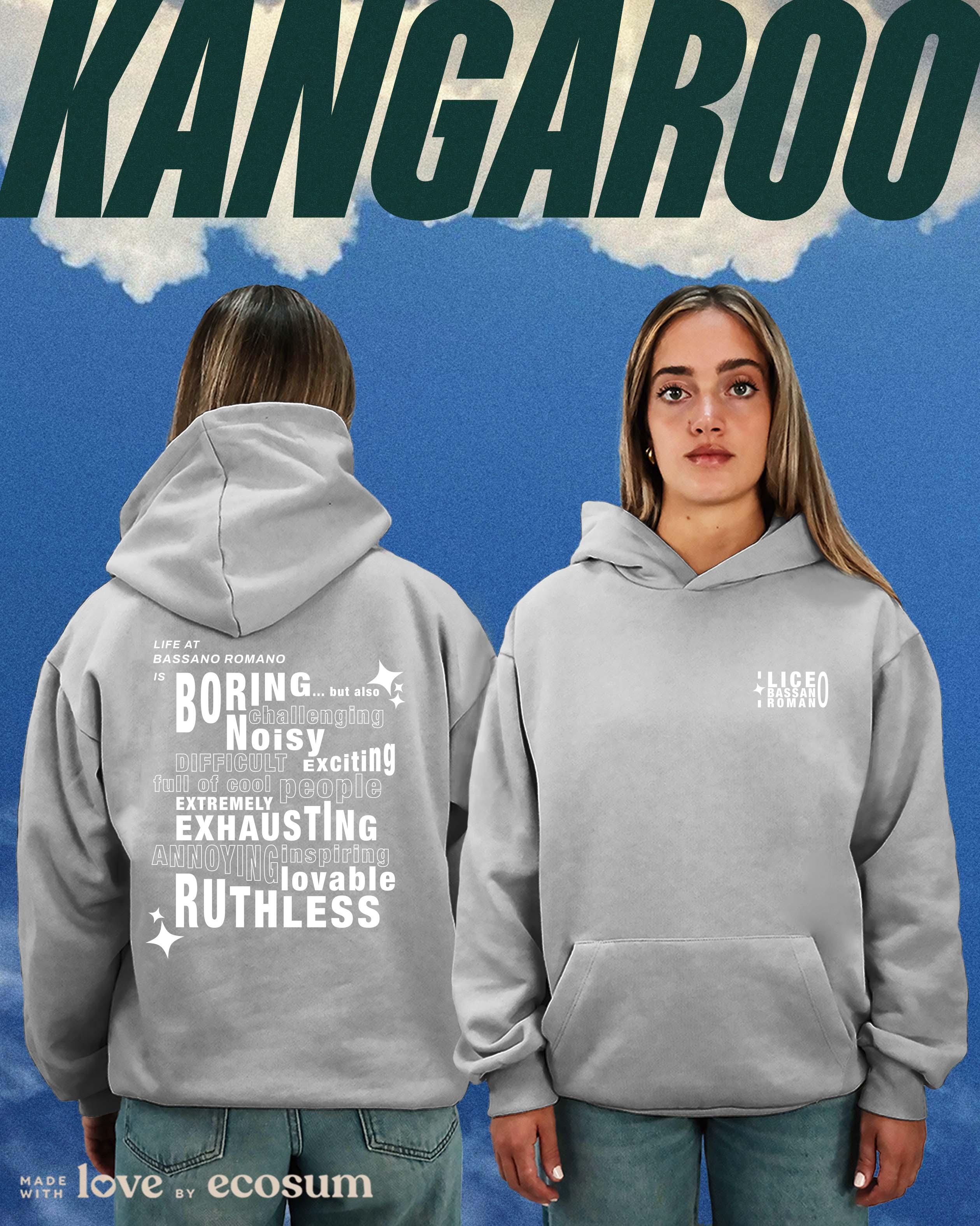 Hoodie iconica con cappuccio e tascone, studiata e prodotta in Italia con filati riciclati.
