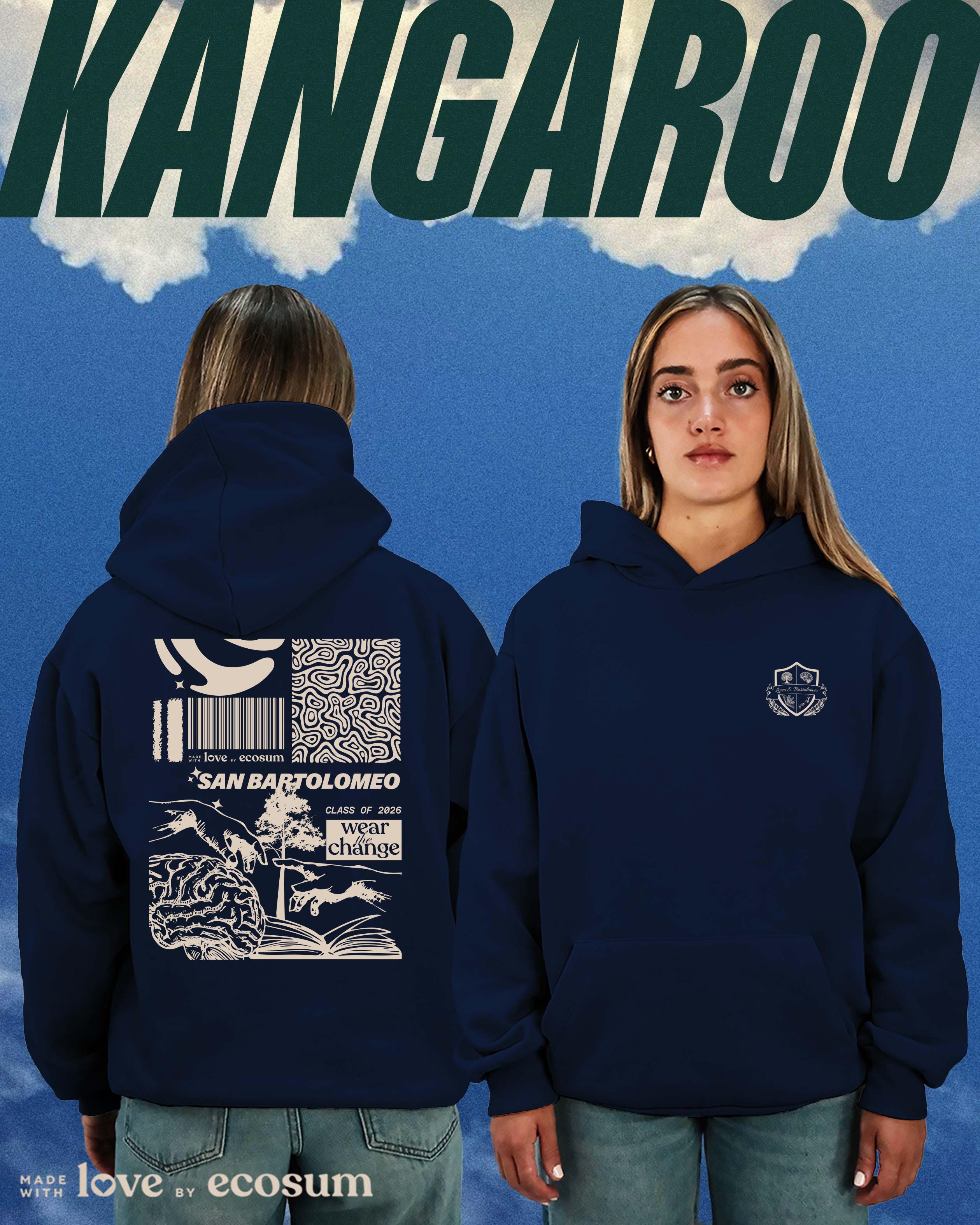 Hoodie iconica con cappuccio e tascone, studiata e prodotta in Italia con filati riciclati.