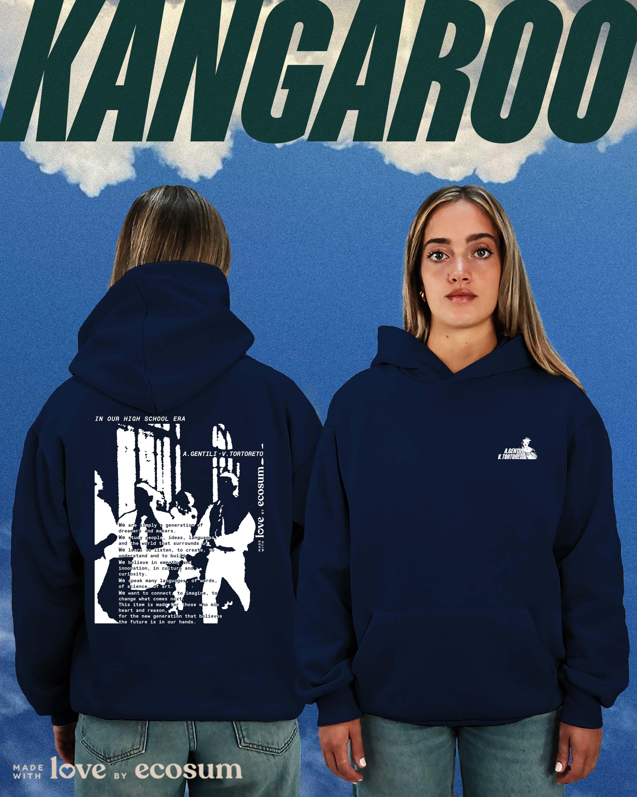 Hoodie iconica con cappuccio e tascone, studiata e prodotta in Italia con filati riciclati.