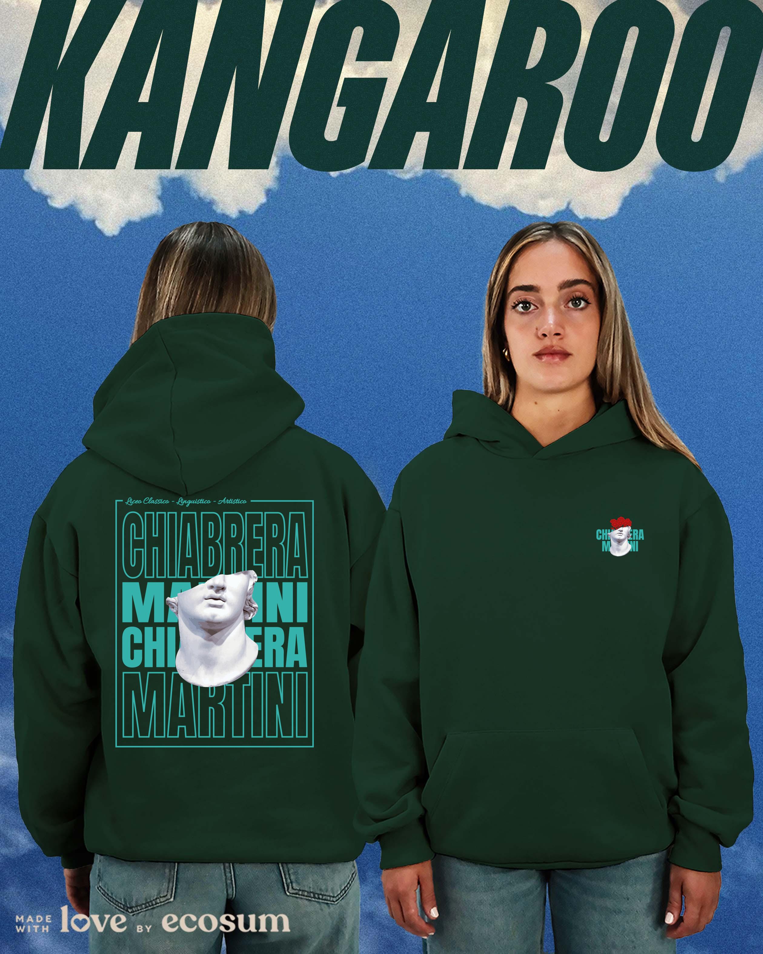 Hoodie iconica con cappuccio e tascone, studiata e prodotta in Italia con filati riciclati.