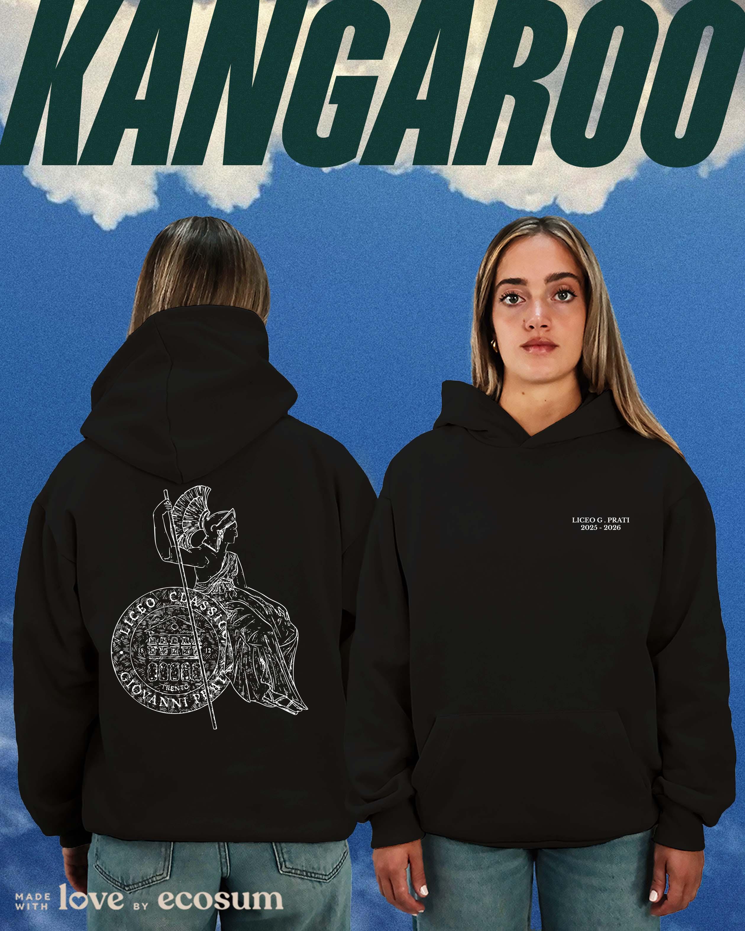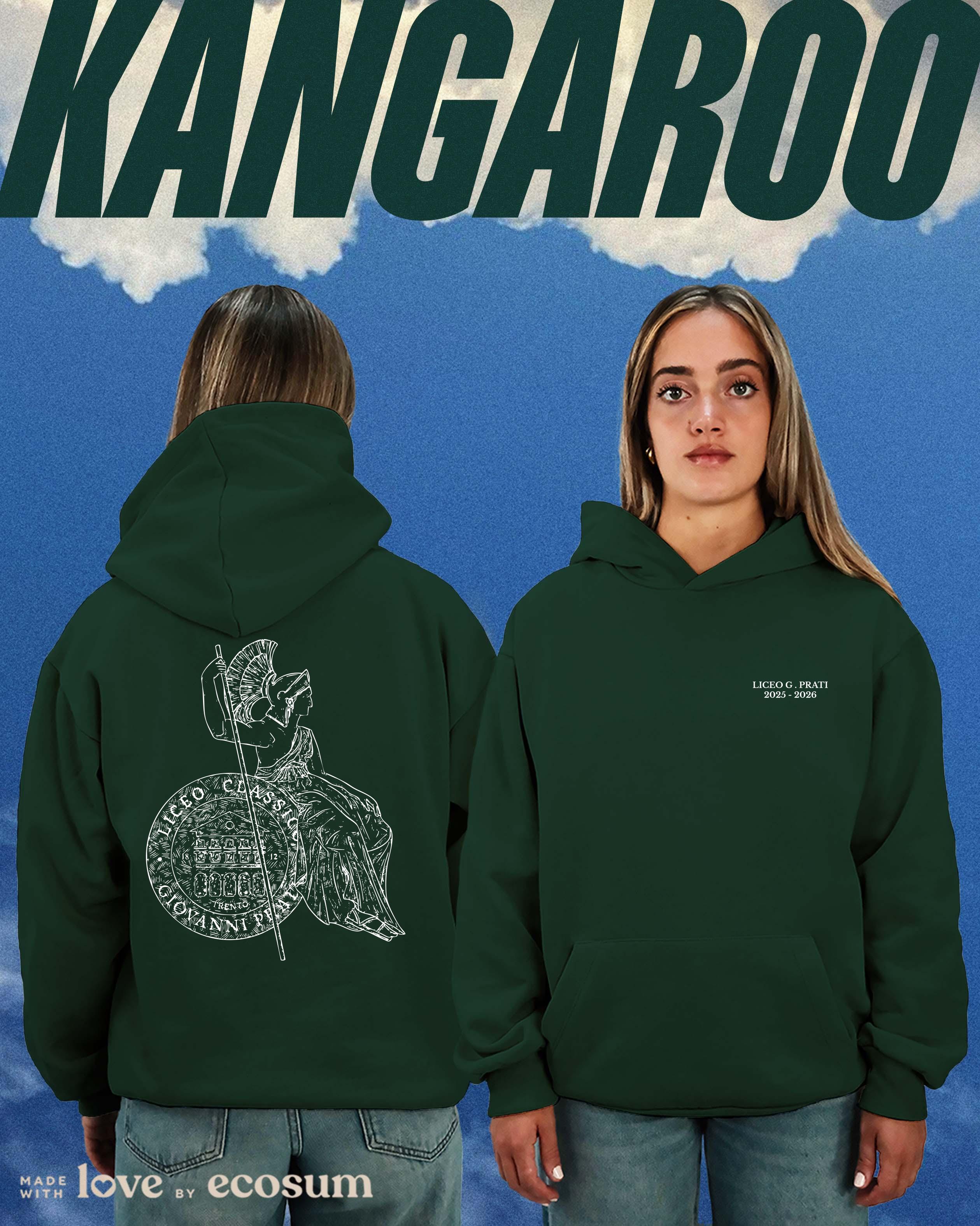 Hoodie iconica con cappuccio e tascone, studiata e prodotta in Italia con filati riciclati.
