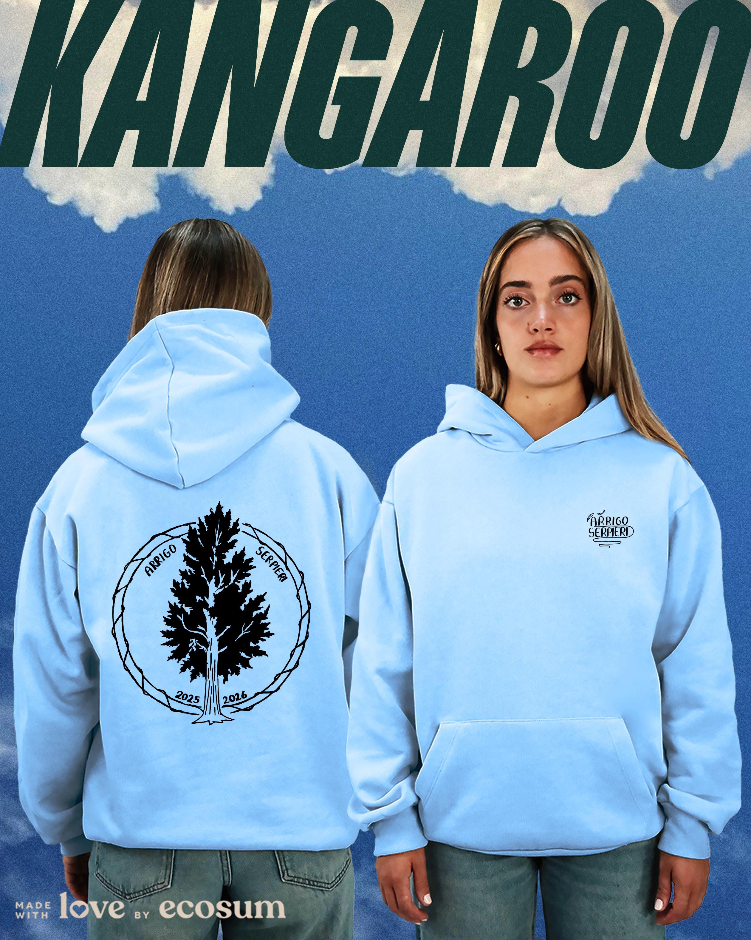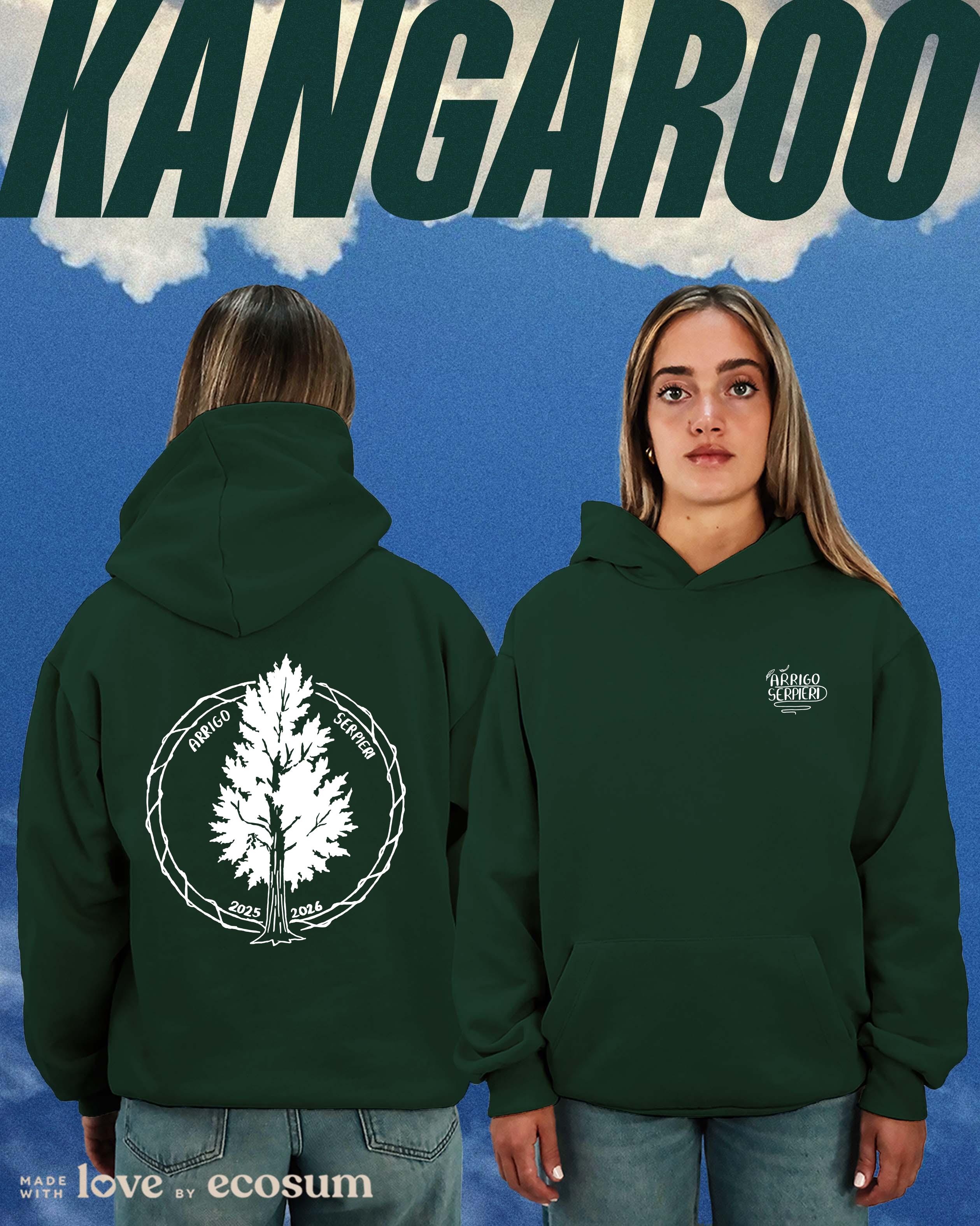 Hoodie iconica con cappuccio e tascone, studiata e prodotta in Italia con filati riciclati.