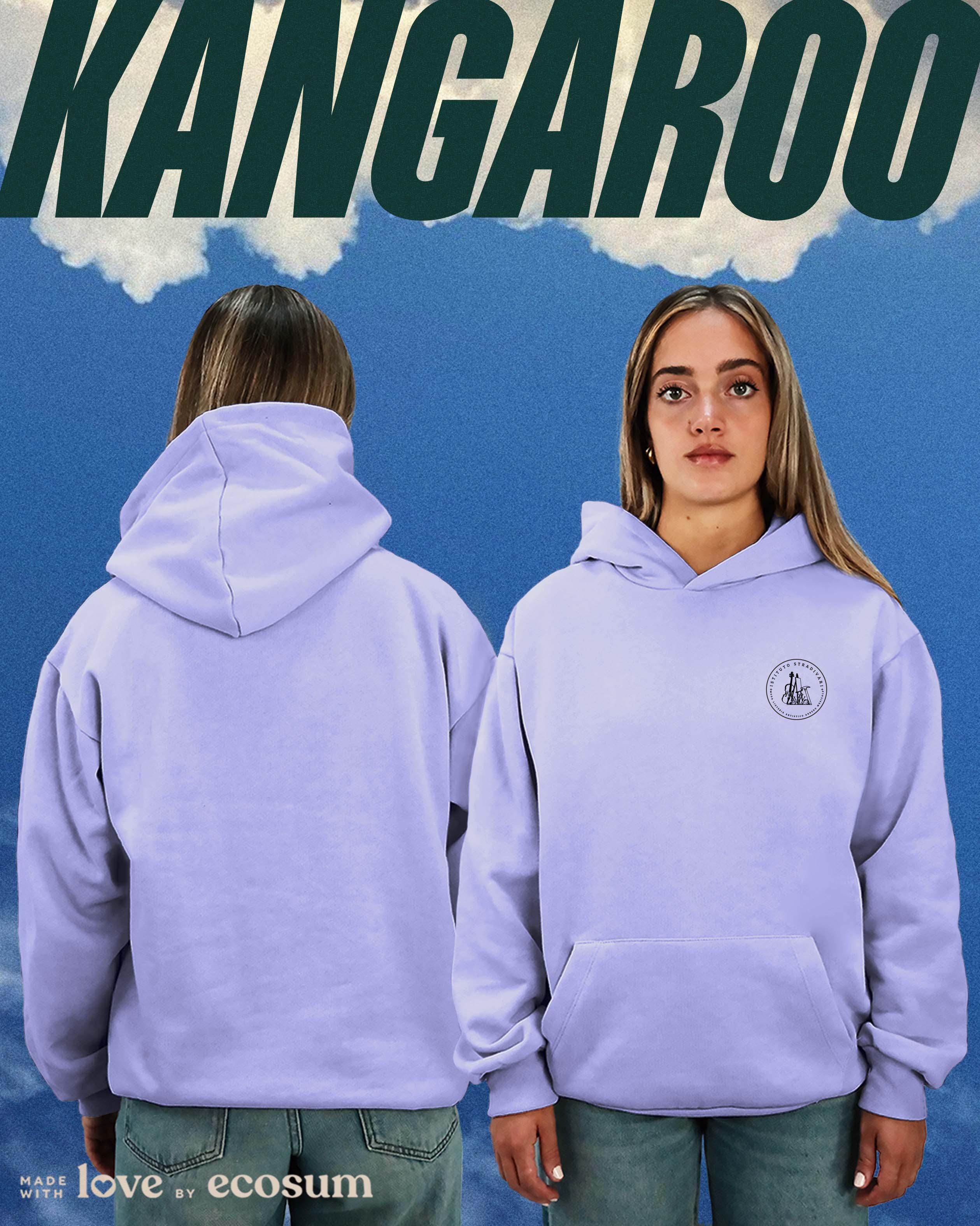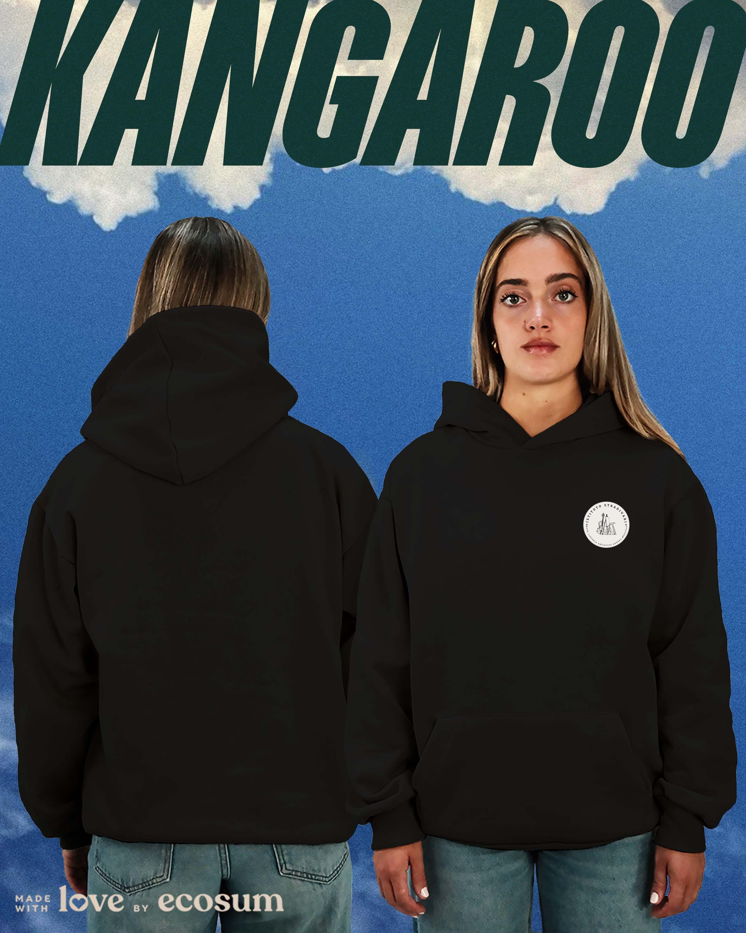 Hoodie iconica con cappuccio e tascone, studiata e prodotta in Italia con filati riciclati.