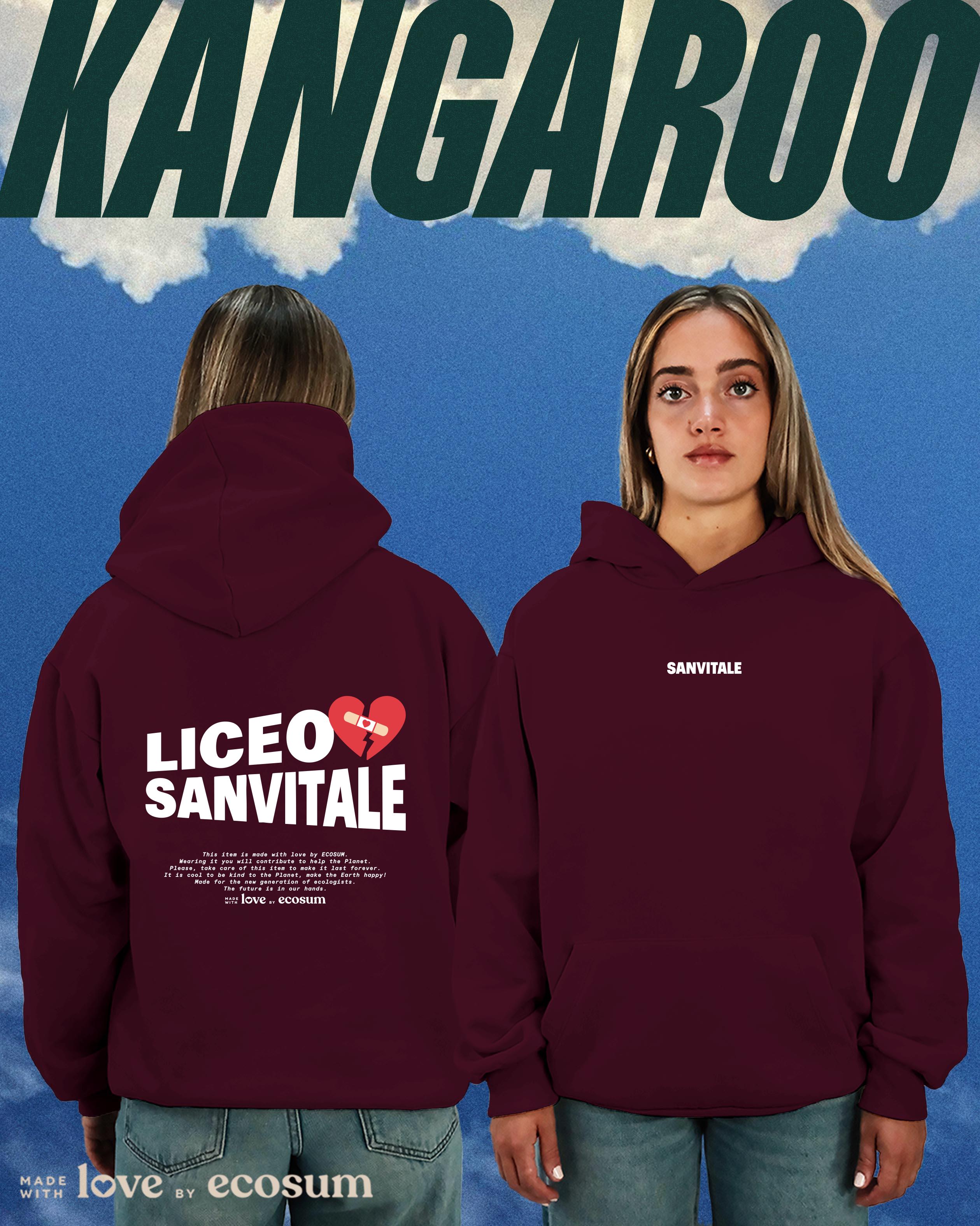 Hoodie iconica con cappuccio e tascone, studiata e prodotta in Italia con filati riciclati.