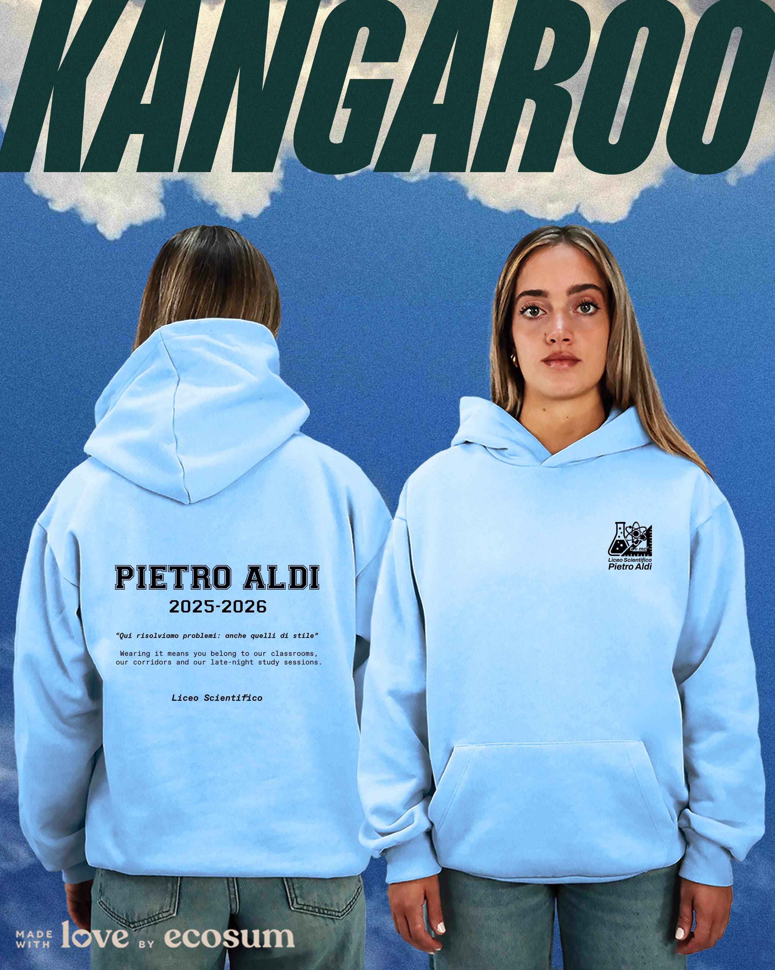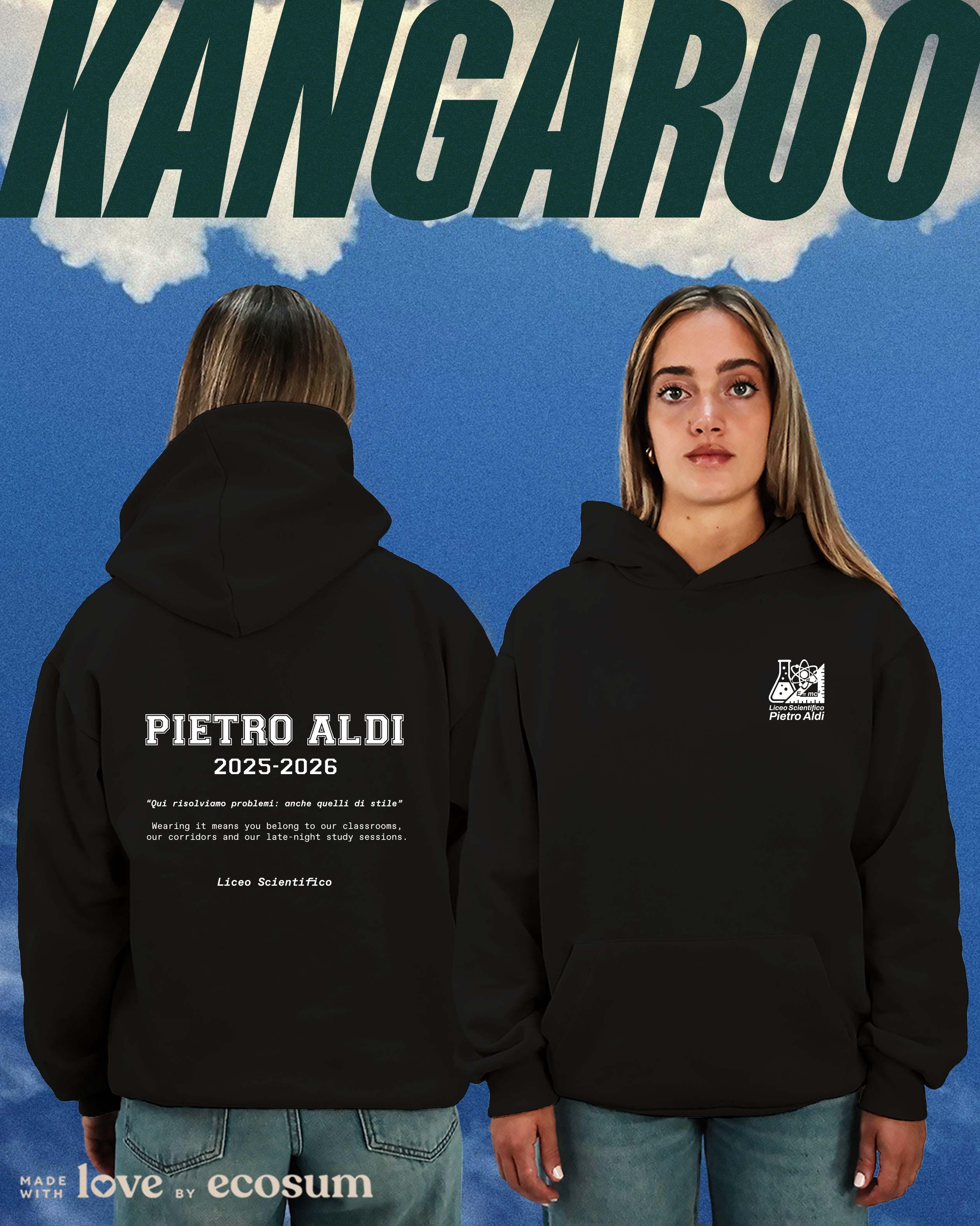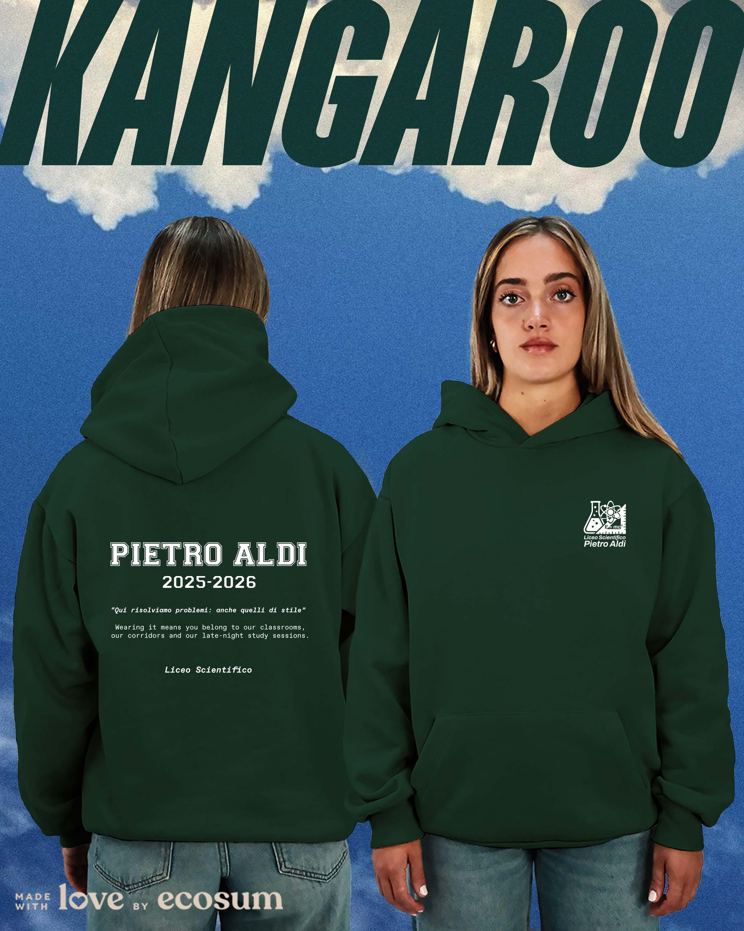 Hoodie iconica con cappuccio e tascone, studiata e prodotta in Italia con filati riciclati.