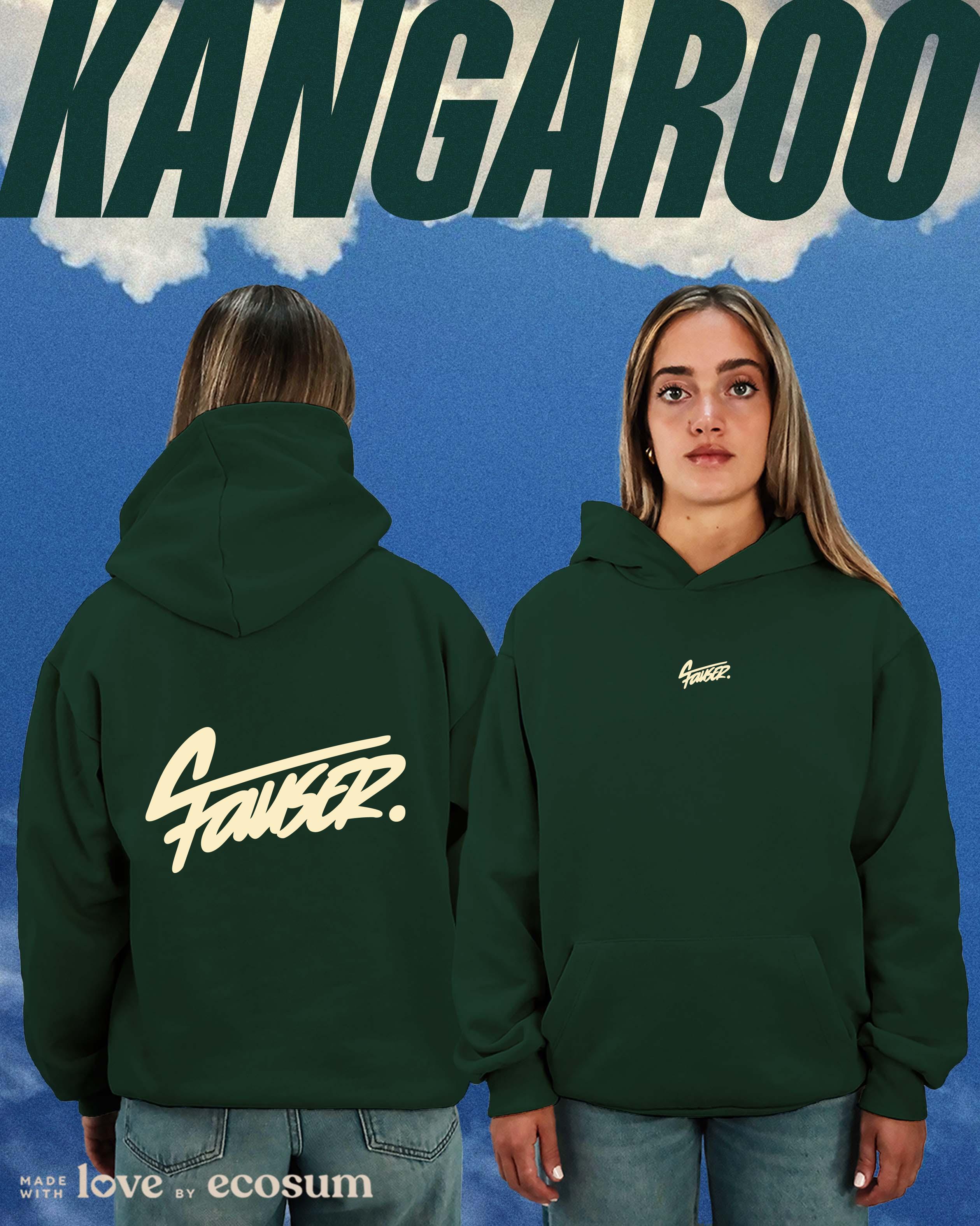 Hoodie iconica con cappuccio e tascone, studiata e prodotta in Italia con filati riciclati.