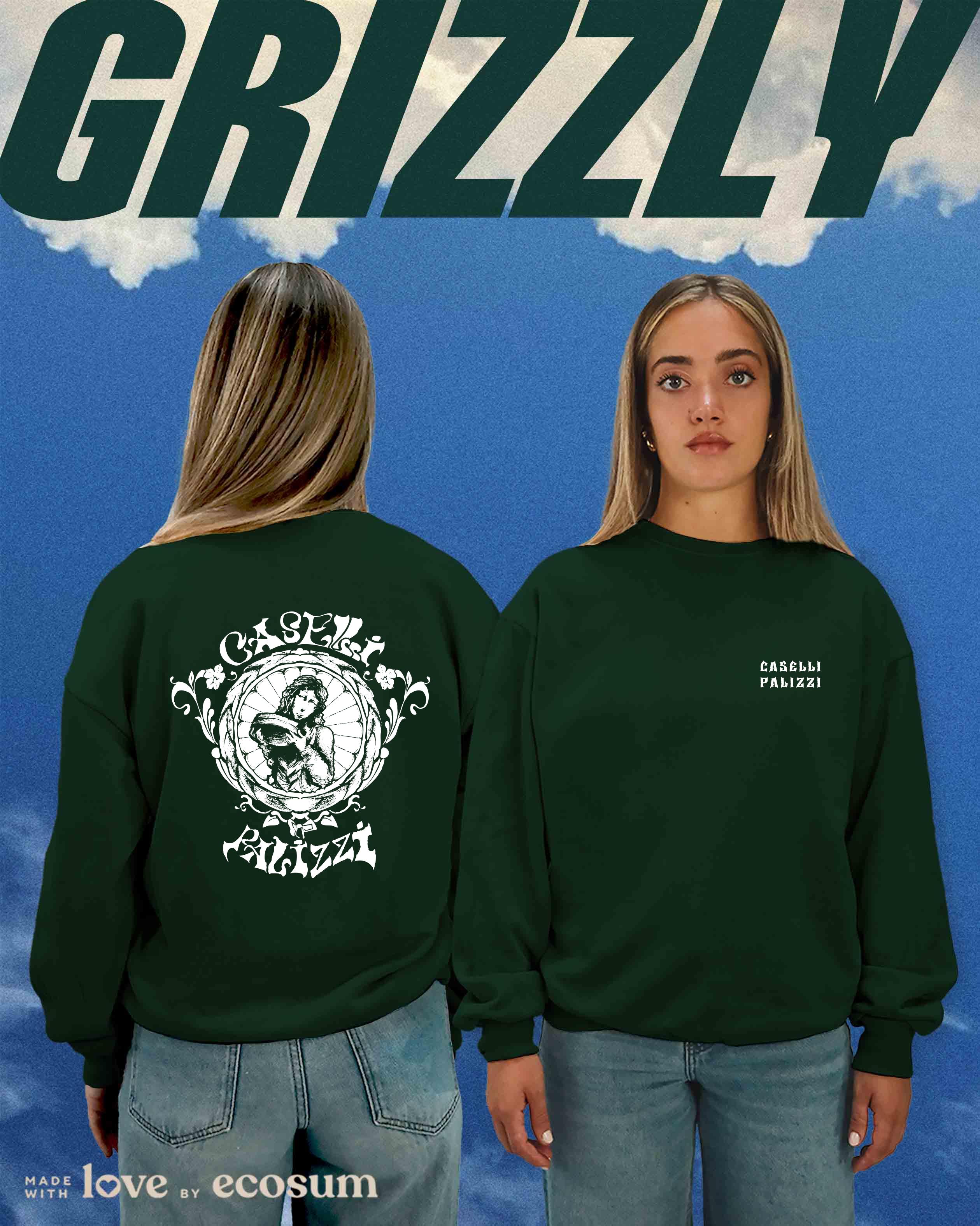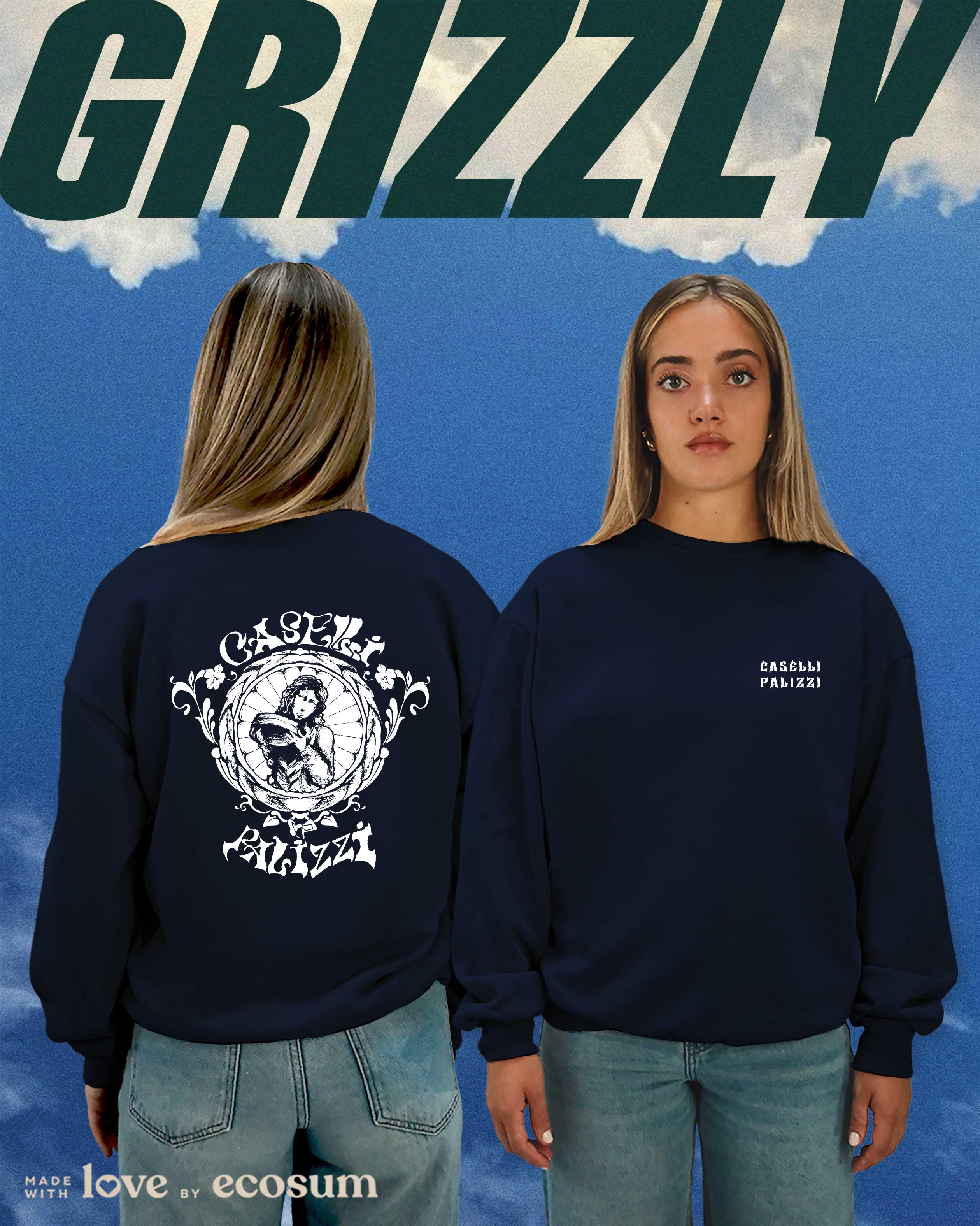 Crewneck iconica girocollo, studiata e prodotta in Italia con filati riciclati.
