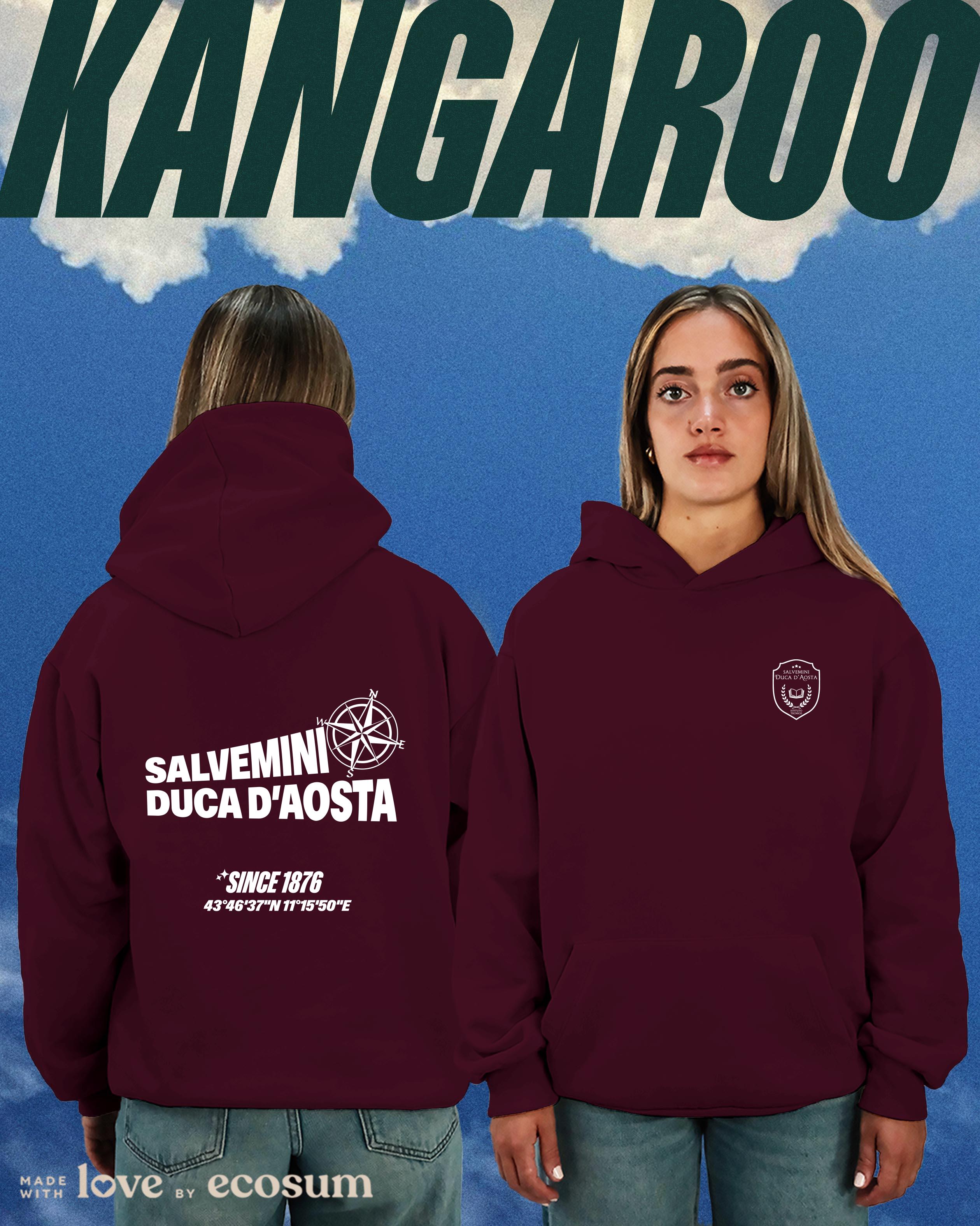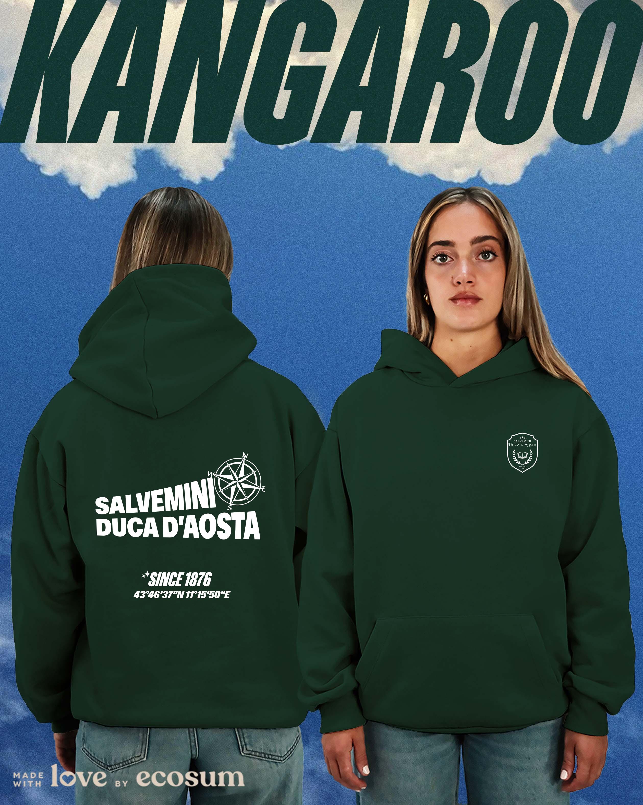 Hoodie iconica con cappuccio e tascone, studiata e prodotta in Italia con filati riciclati.