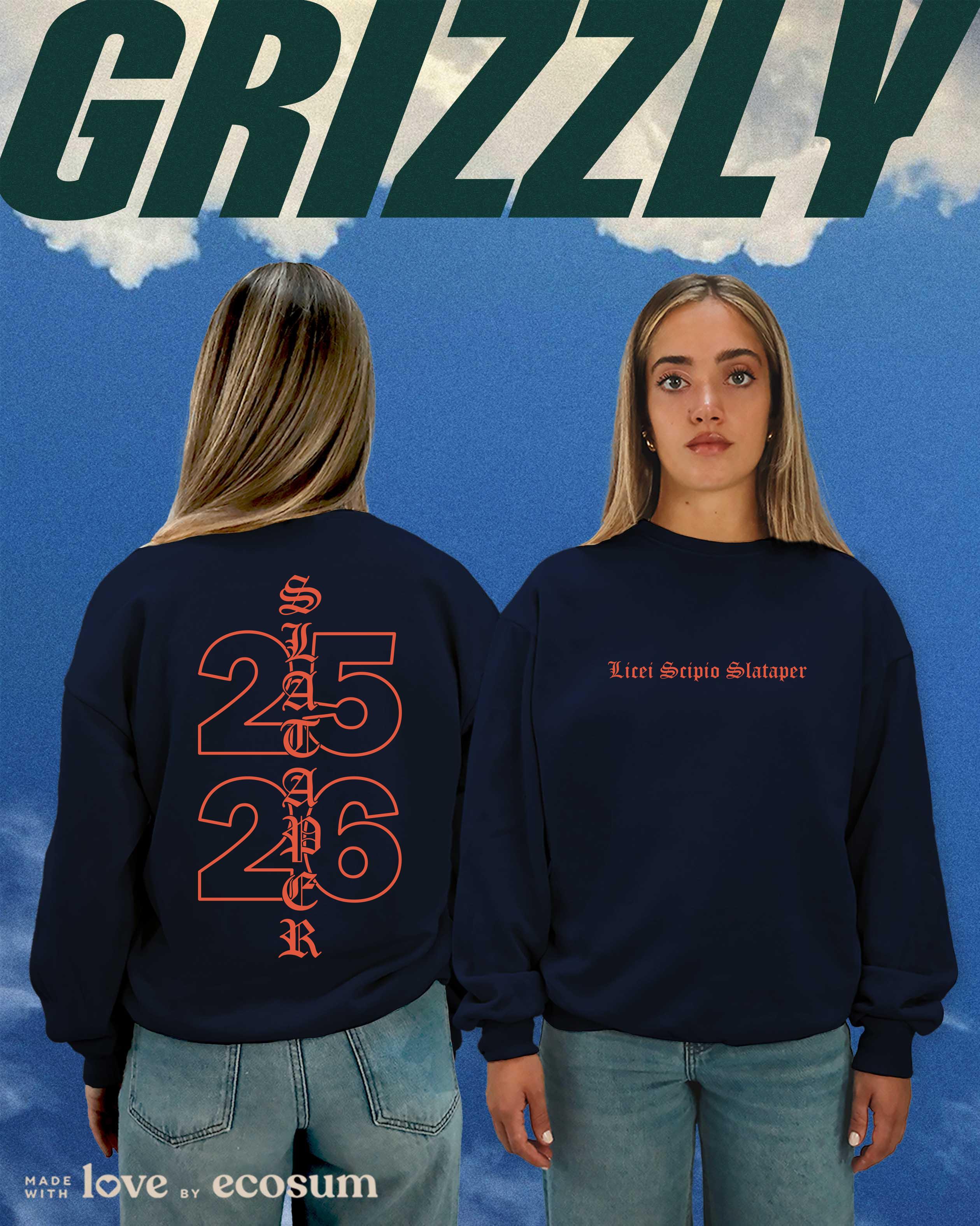 Crewneck iconica girocollo, studiata e prodotta in Italia con filati riciclati.