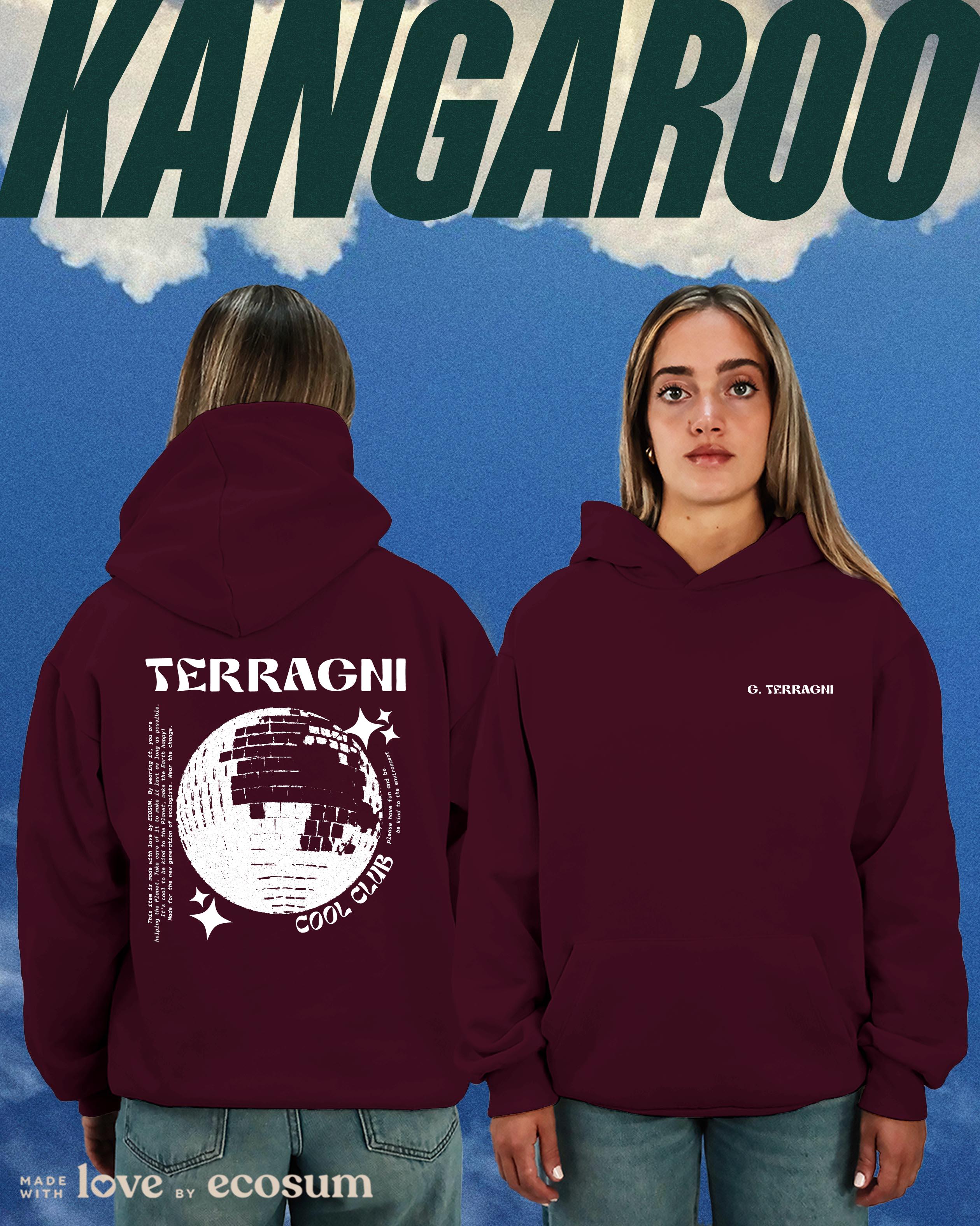 Hoodie iconica con cappuccio e tascone, studiata e prodotta in Italia con filati riciclati.