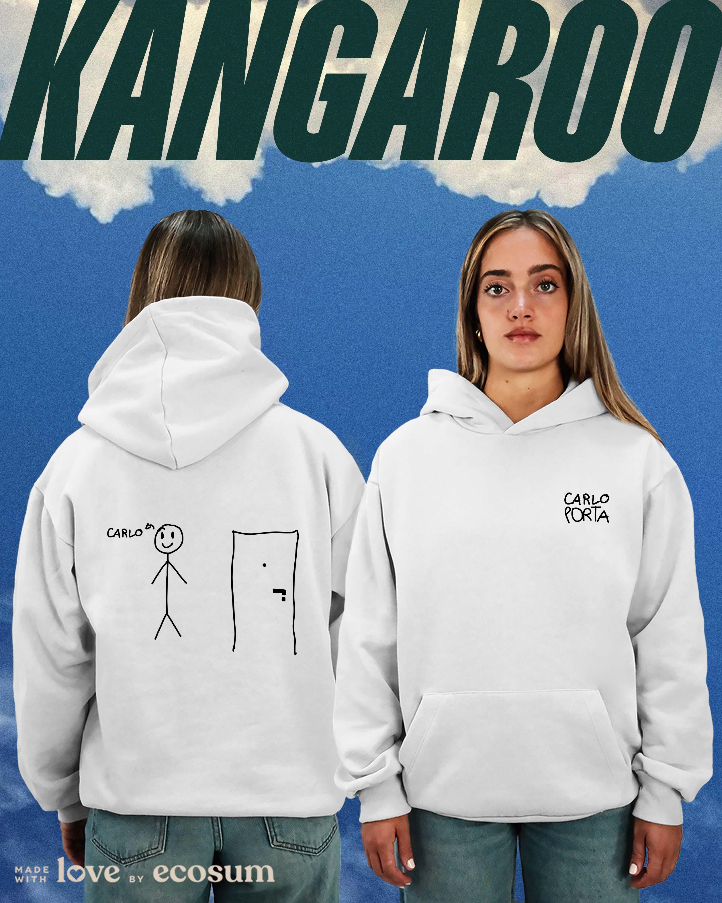 Hoodie iconica con cappuccio e tascone, studiata e prodotta in Italia con filati riciclati.