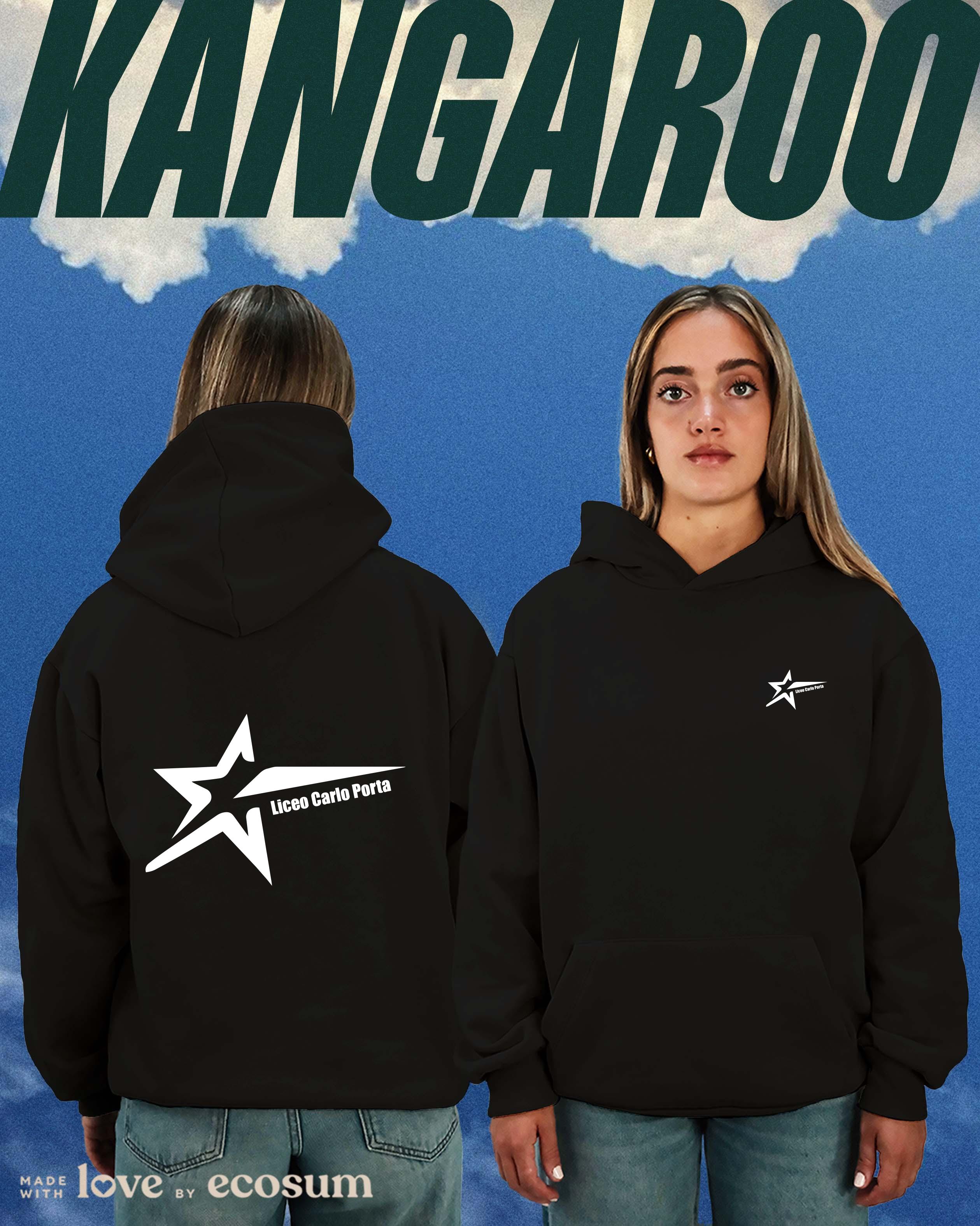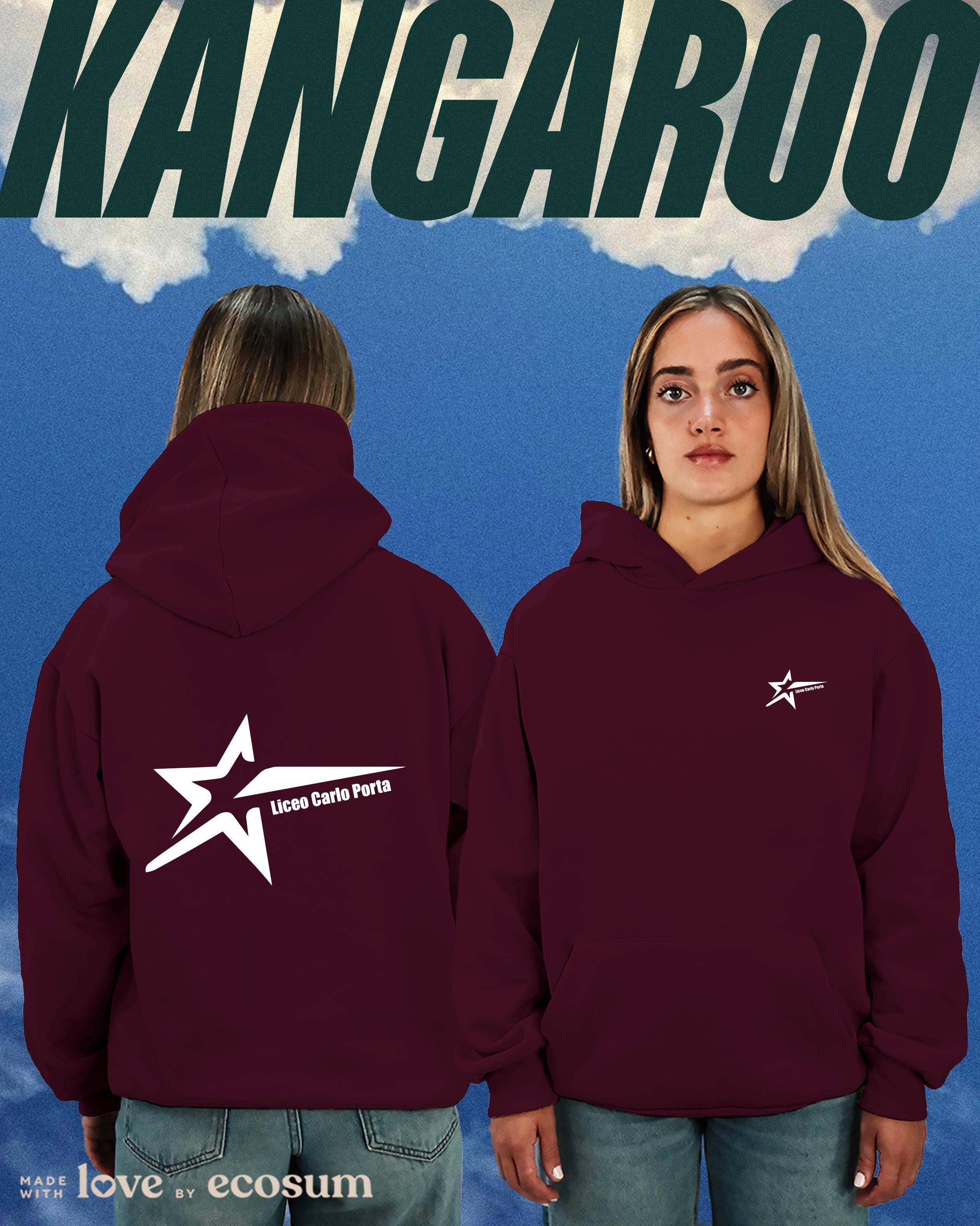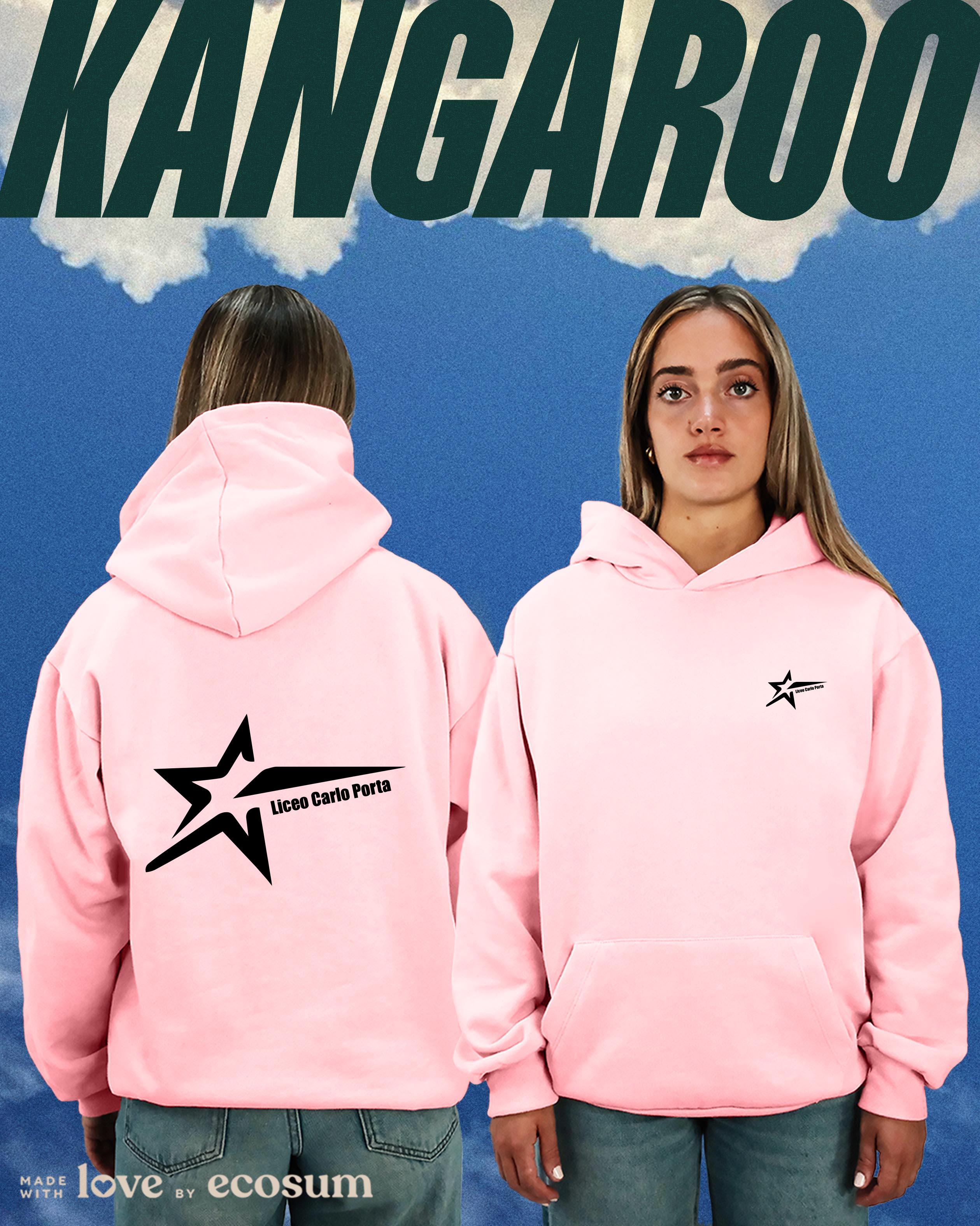 Hoodie iconica con cappuccio e tascone, studiata e prodotta in Italia con filati riciclati.