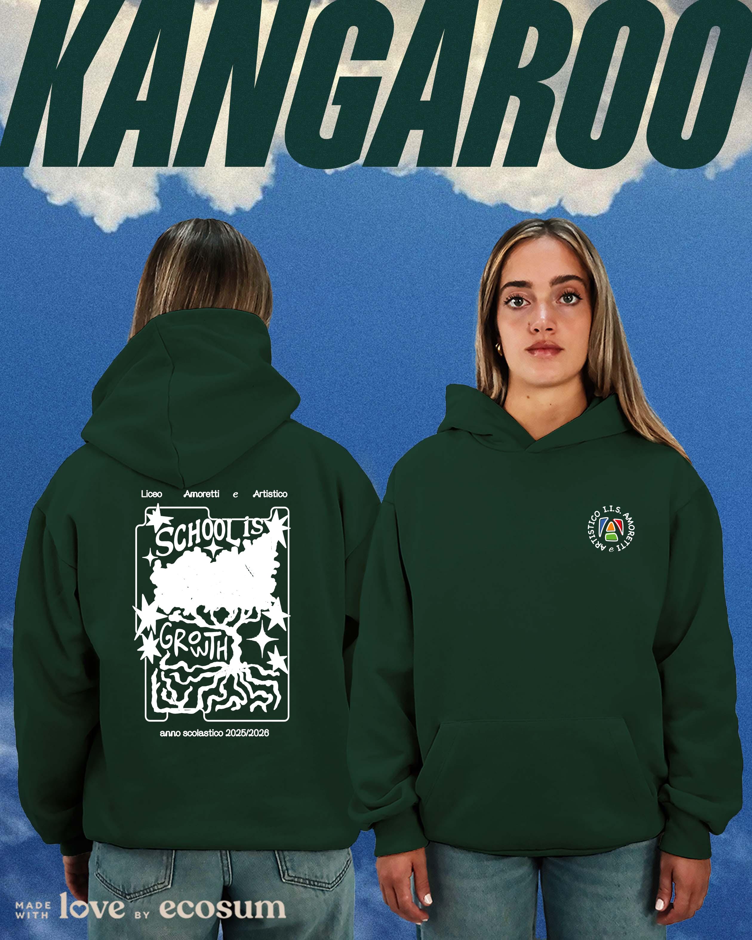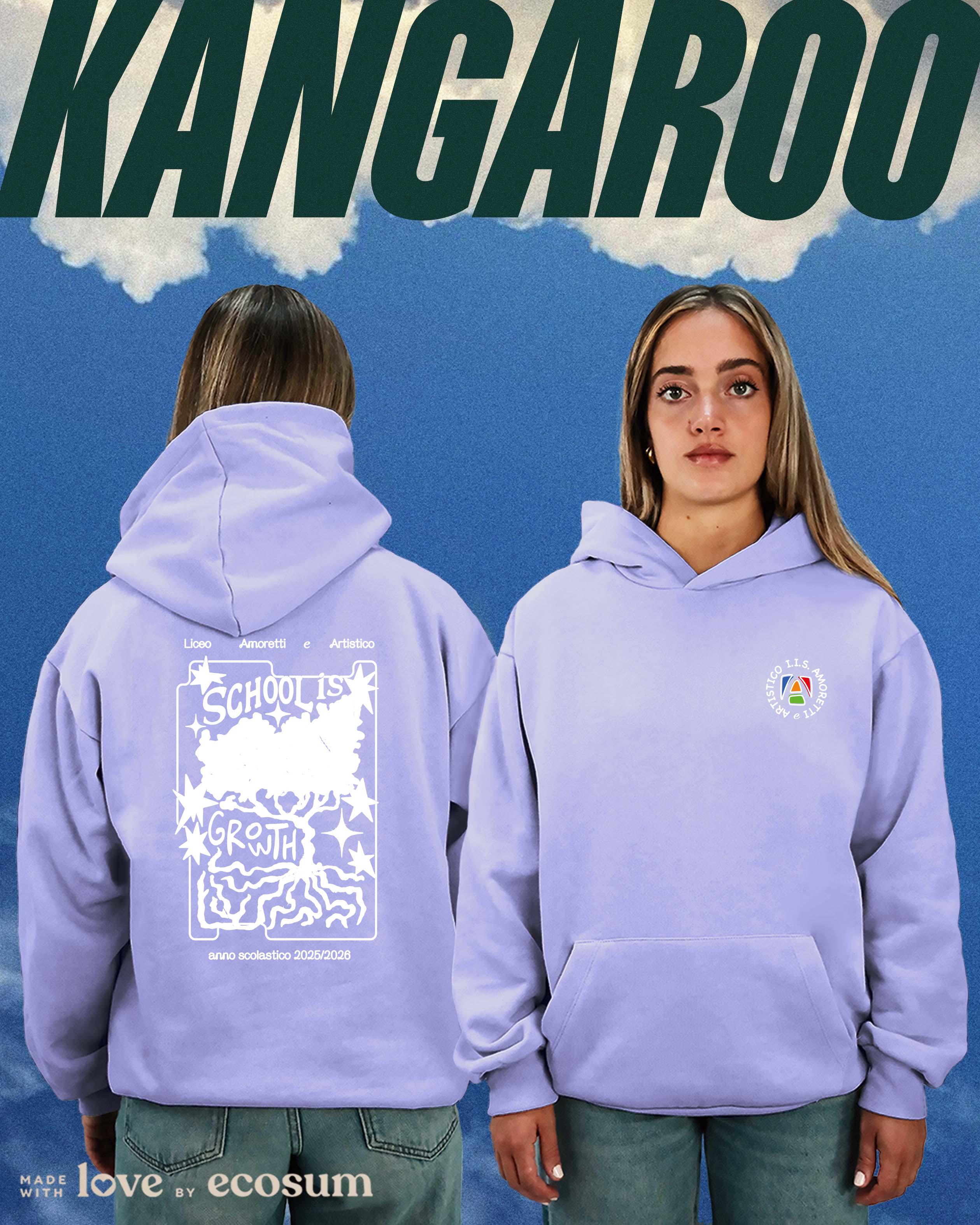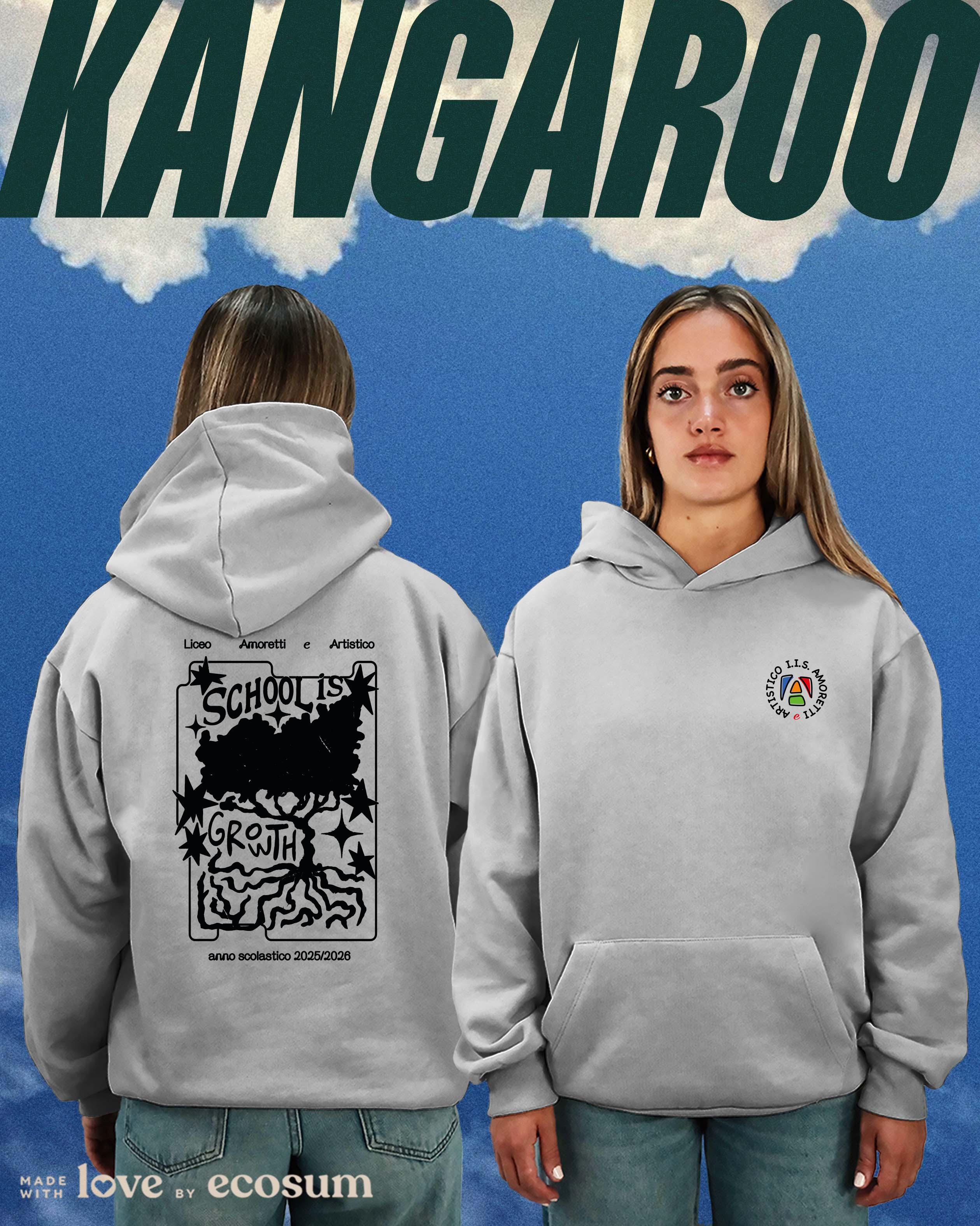 Hoodie iconica con cappuccio e tascone, studiata e prodotta in Italia con filati riciclati.
