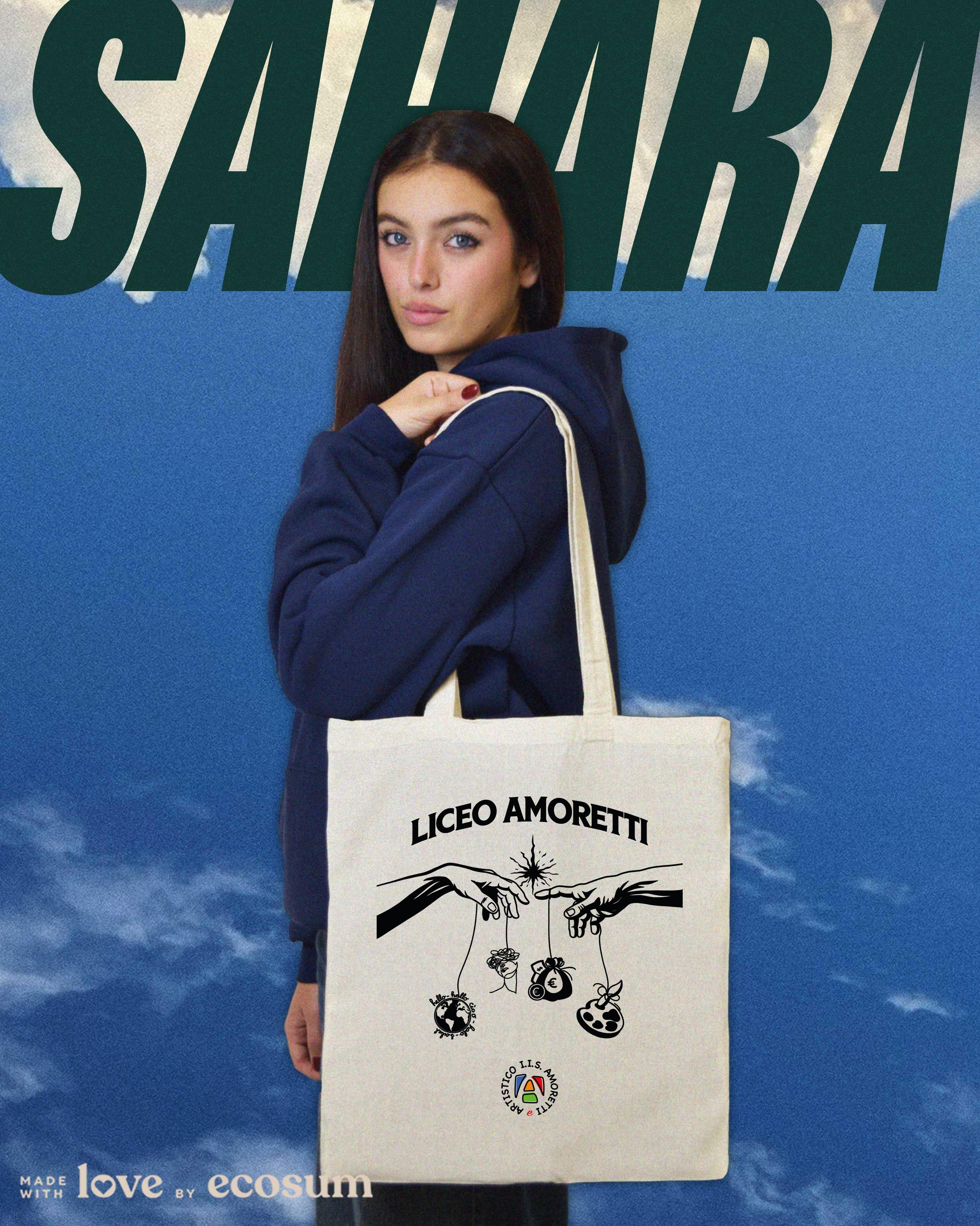 Tote bag versatile da portare con sé tutti i giorni prodotta con cotone biologico certificato.