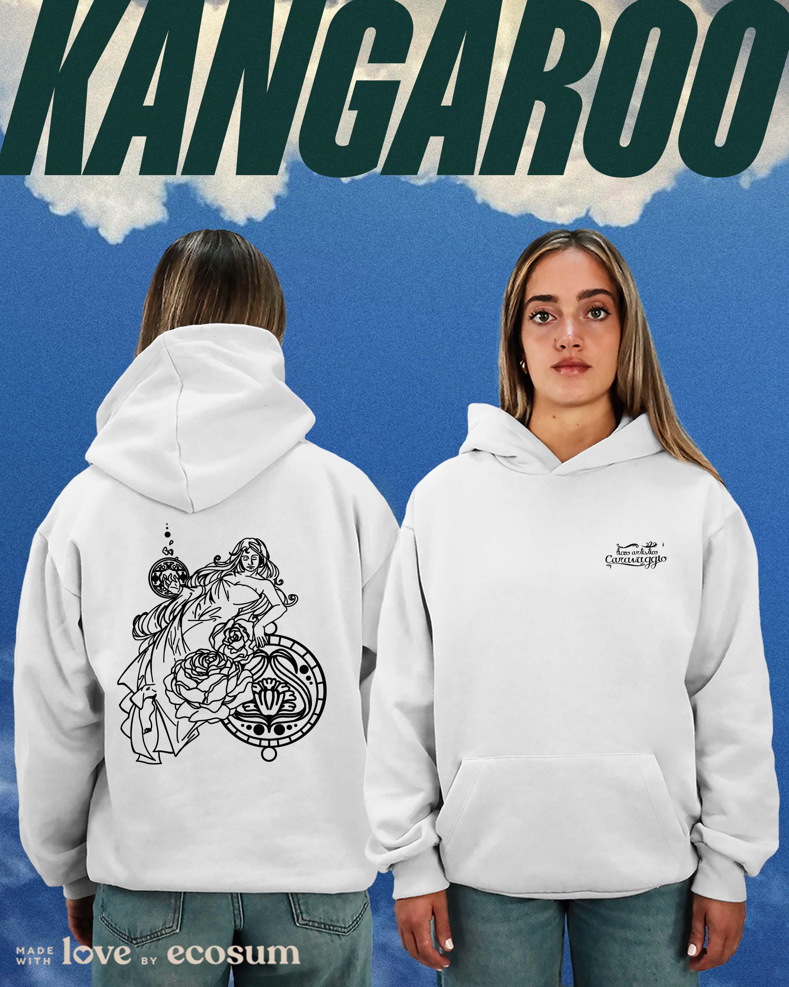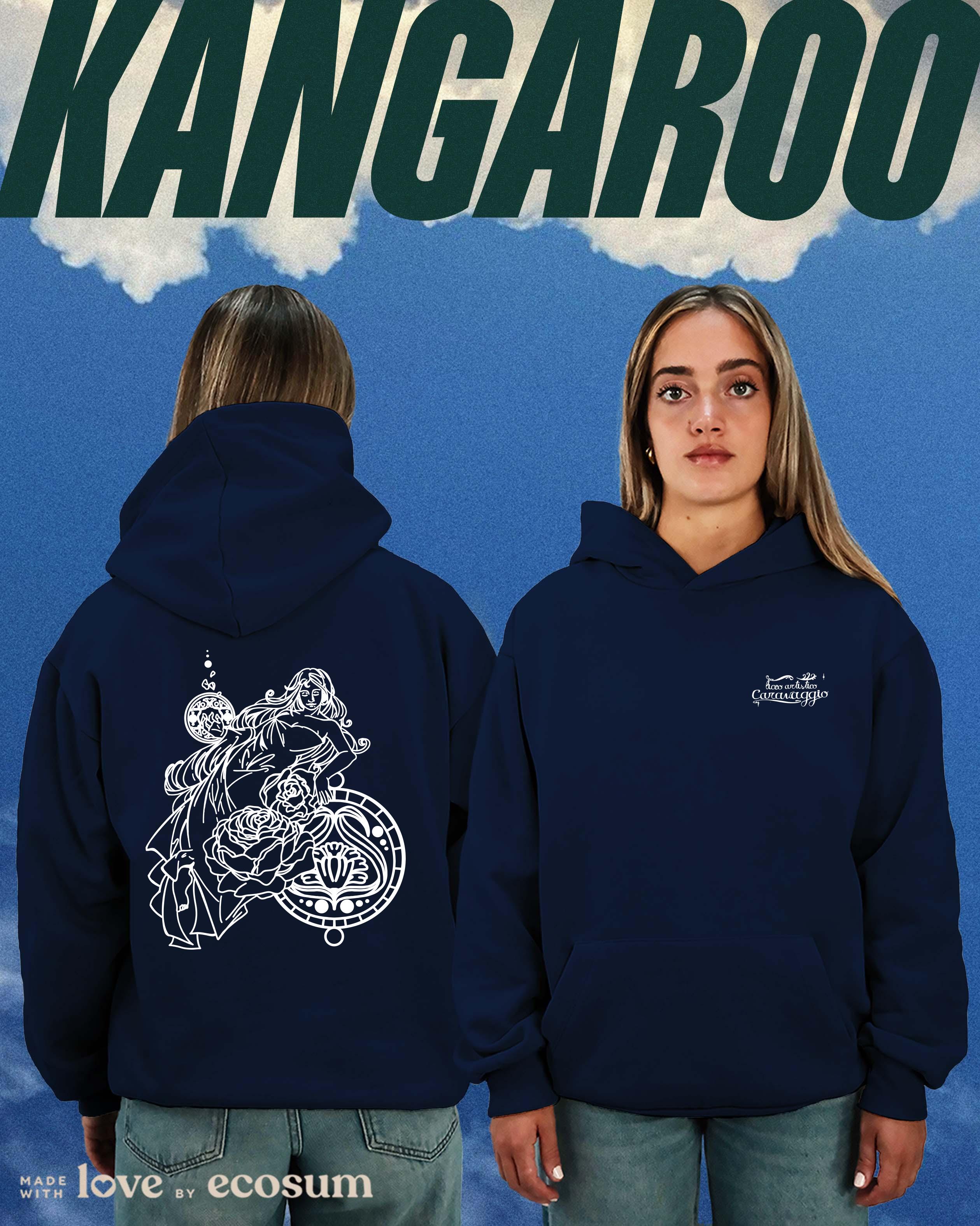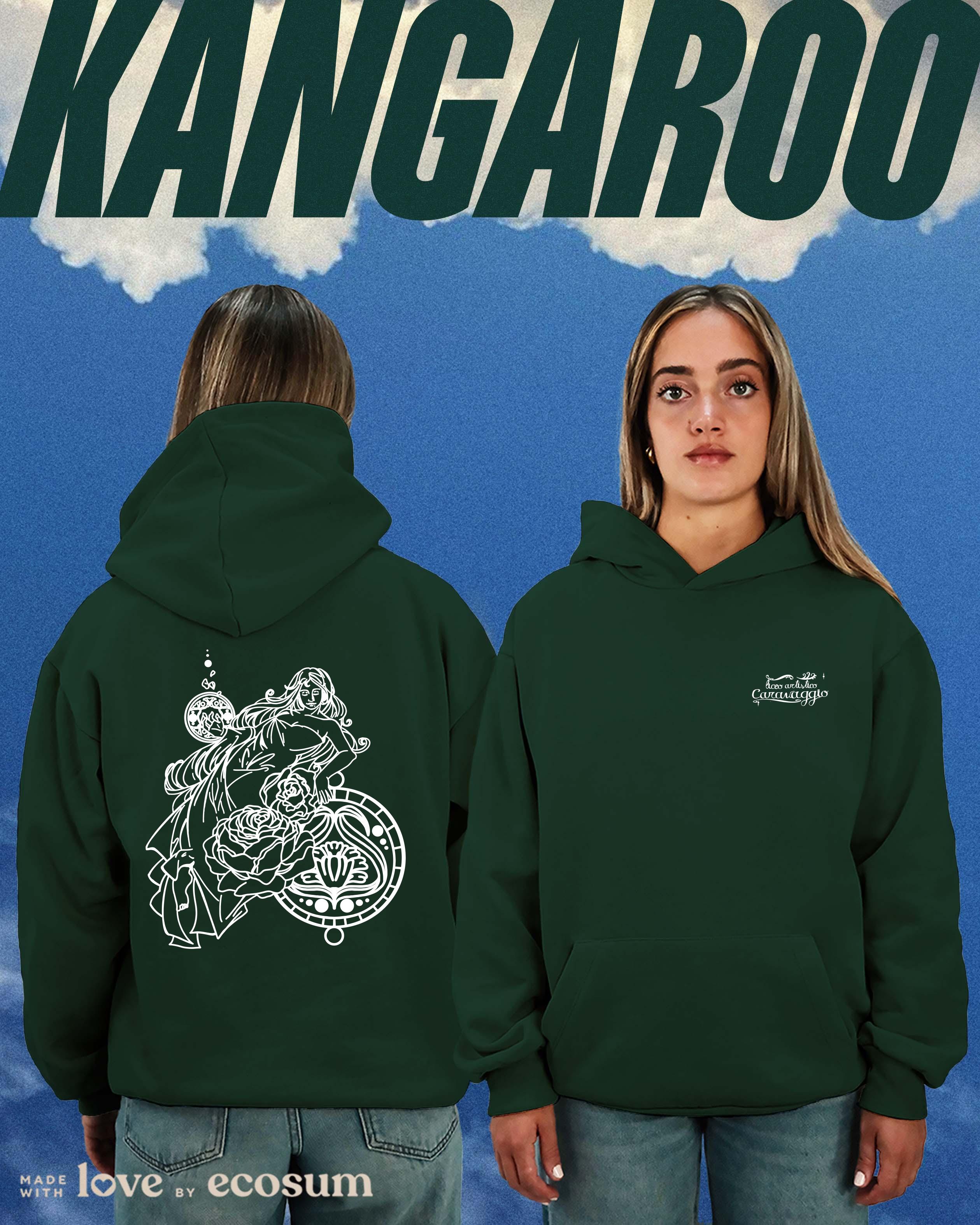Hoodie iconica con cappuccio e tascone, studiata e prodotta in Italia con filati riciclati.