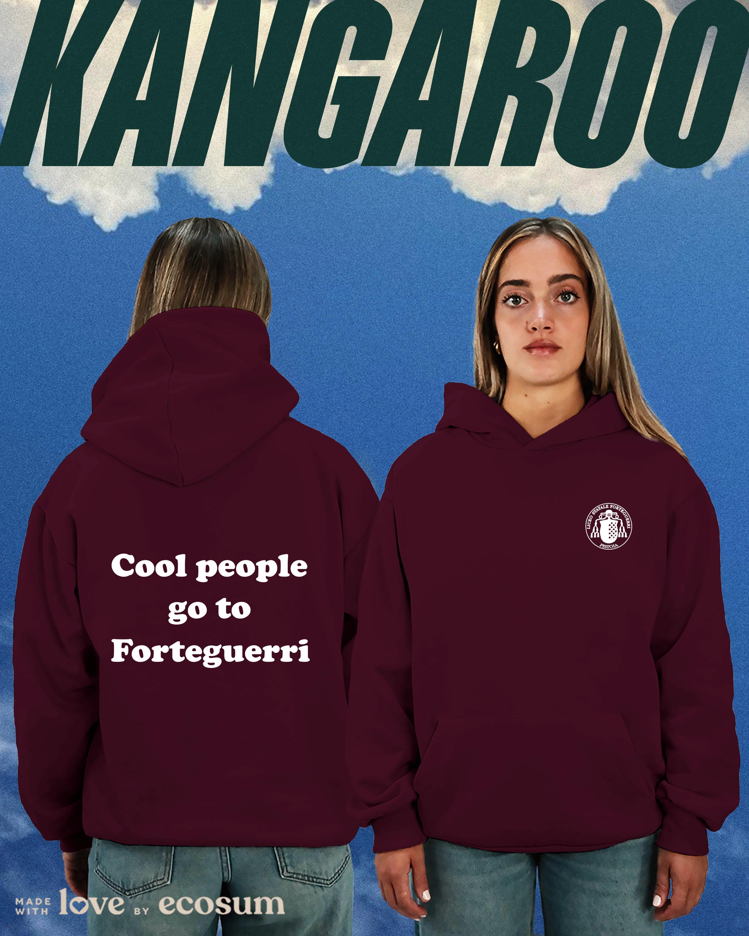 Hoodie iconica con cappuccio e tascone, studiata e prodotta in Italia con filati riciclati.