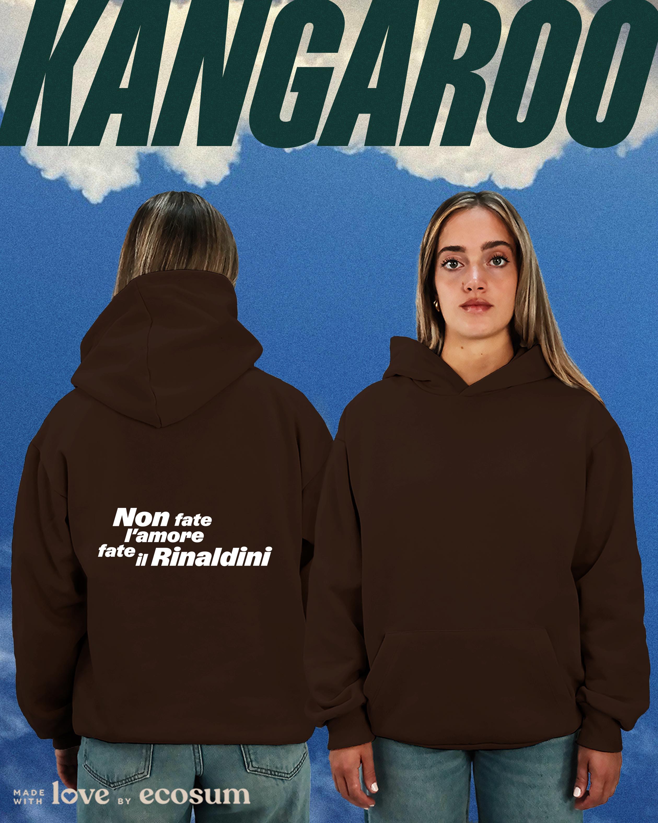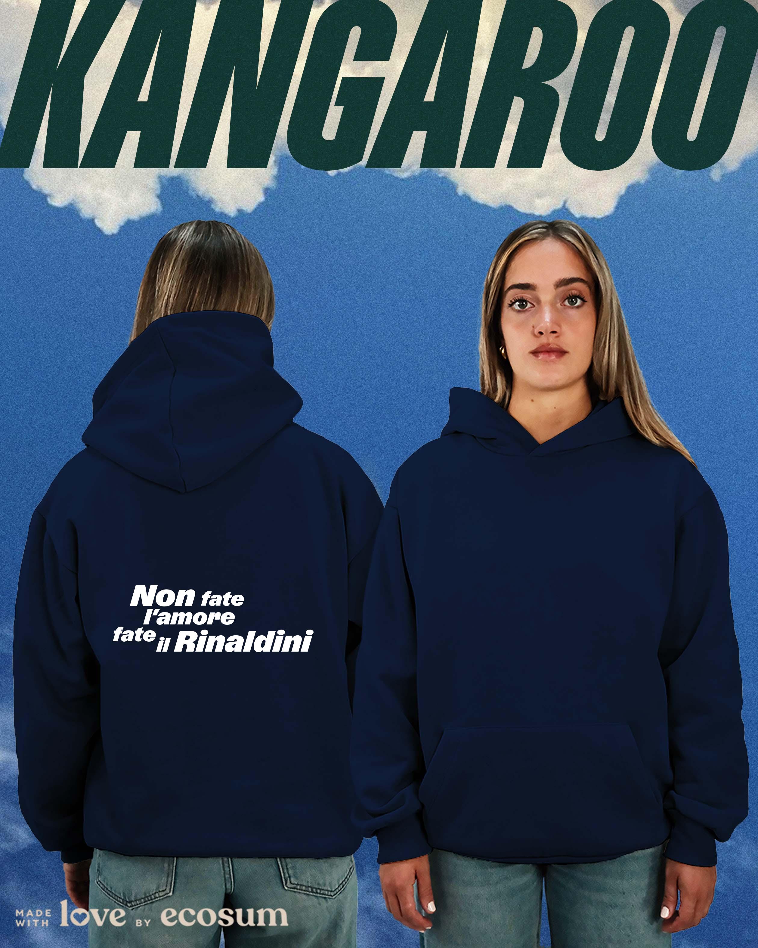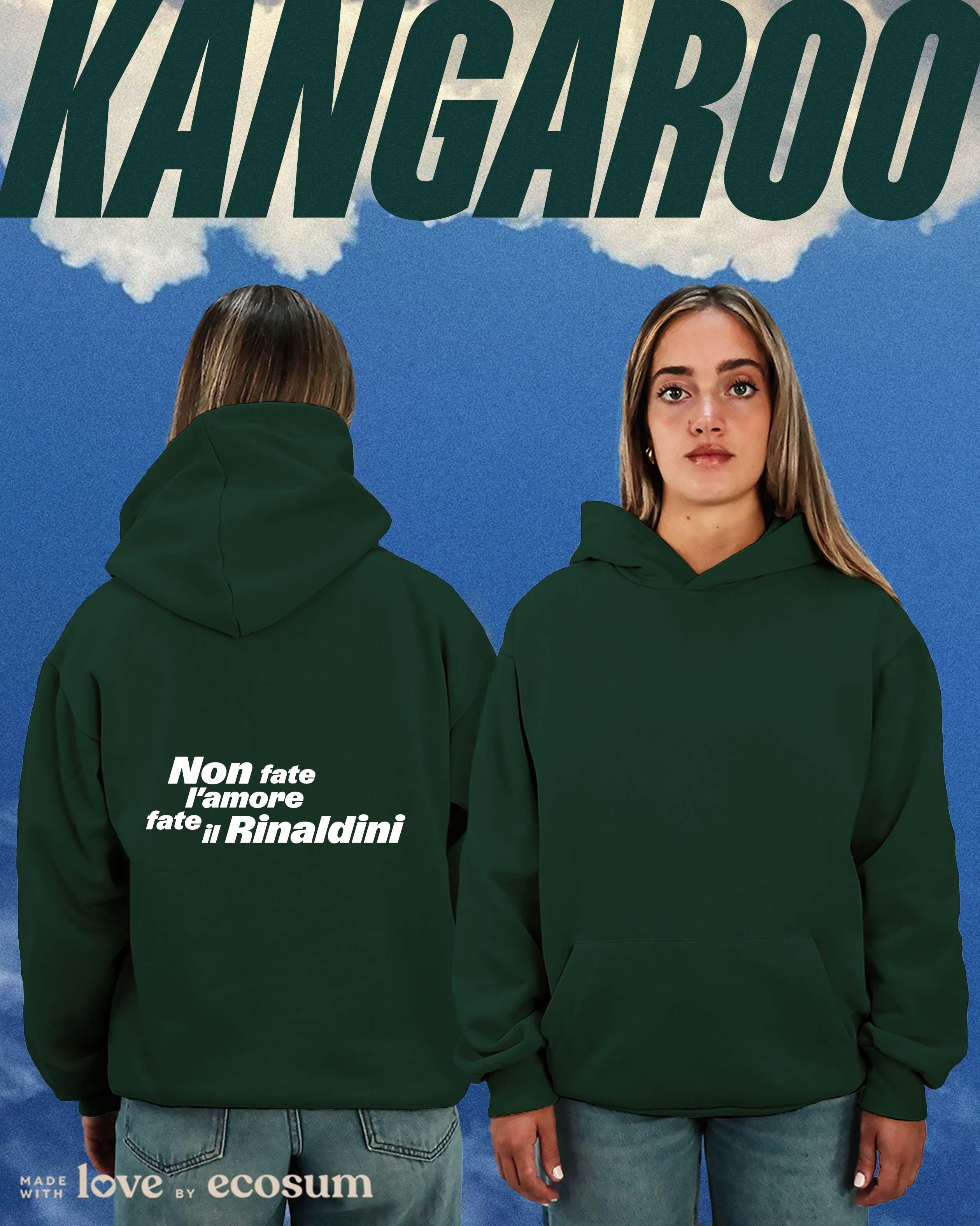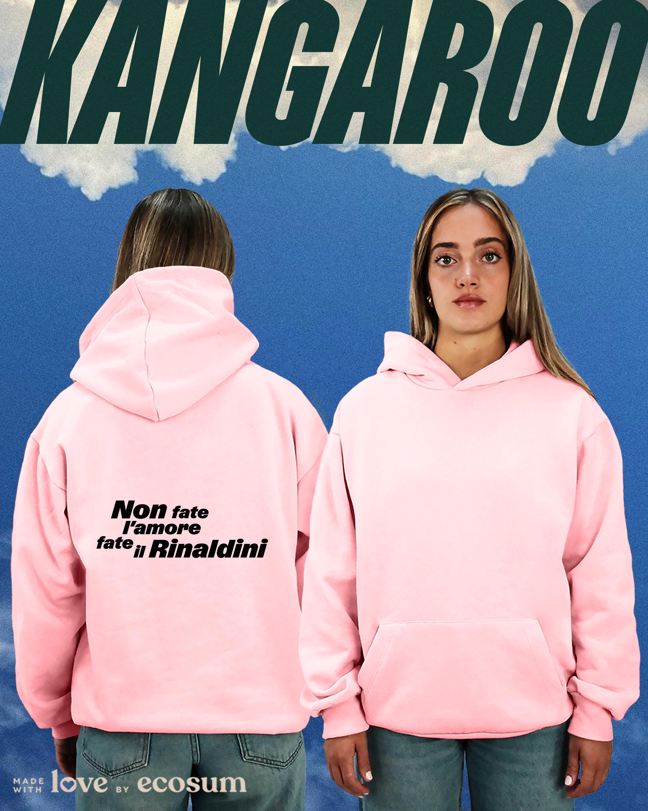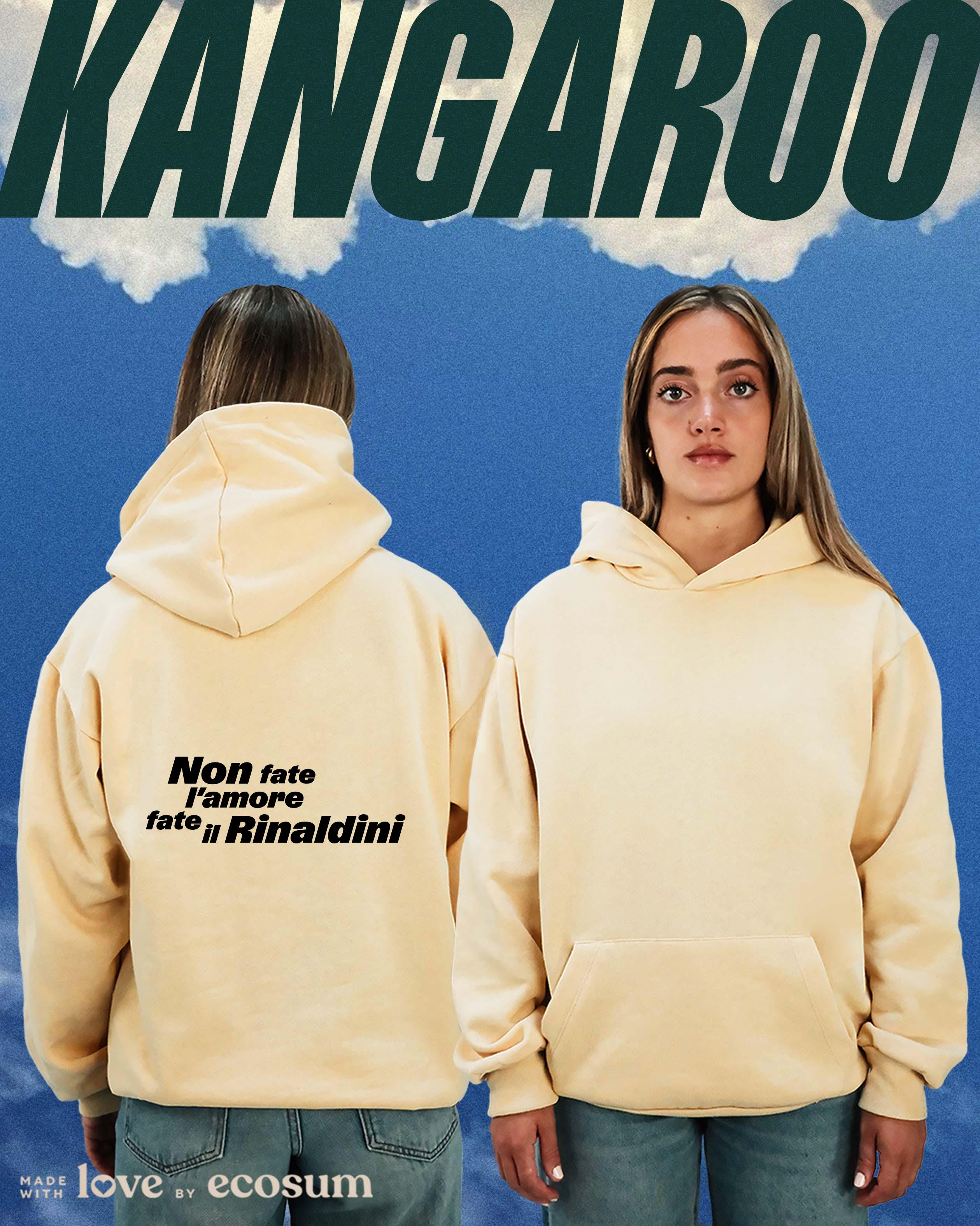 Hoodie iconica con cappuccio e tascone, studiata e prodotta in Italia con filati riciclati.