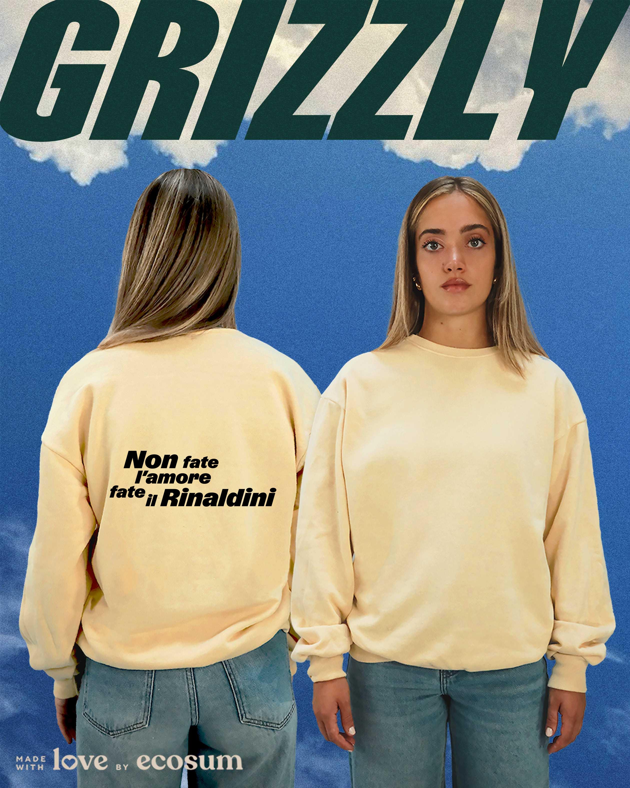 Crewneck iconica girocollo, studiata e prodotta in Italia con filati riciclati.