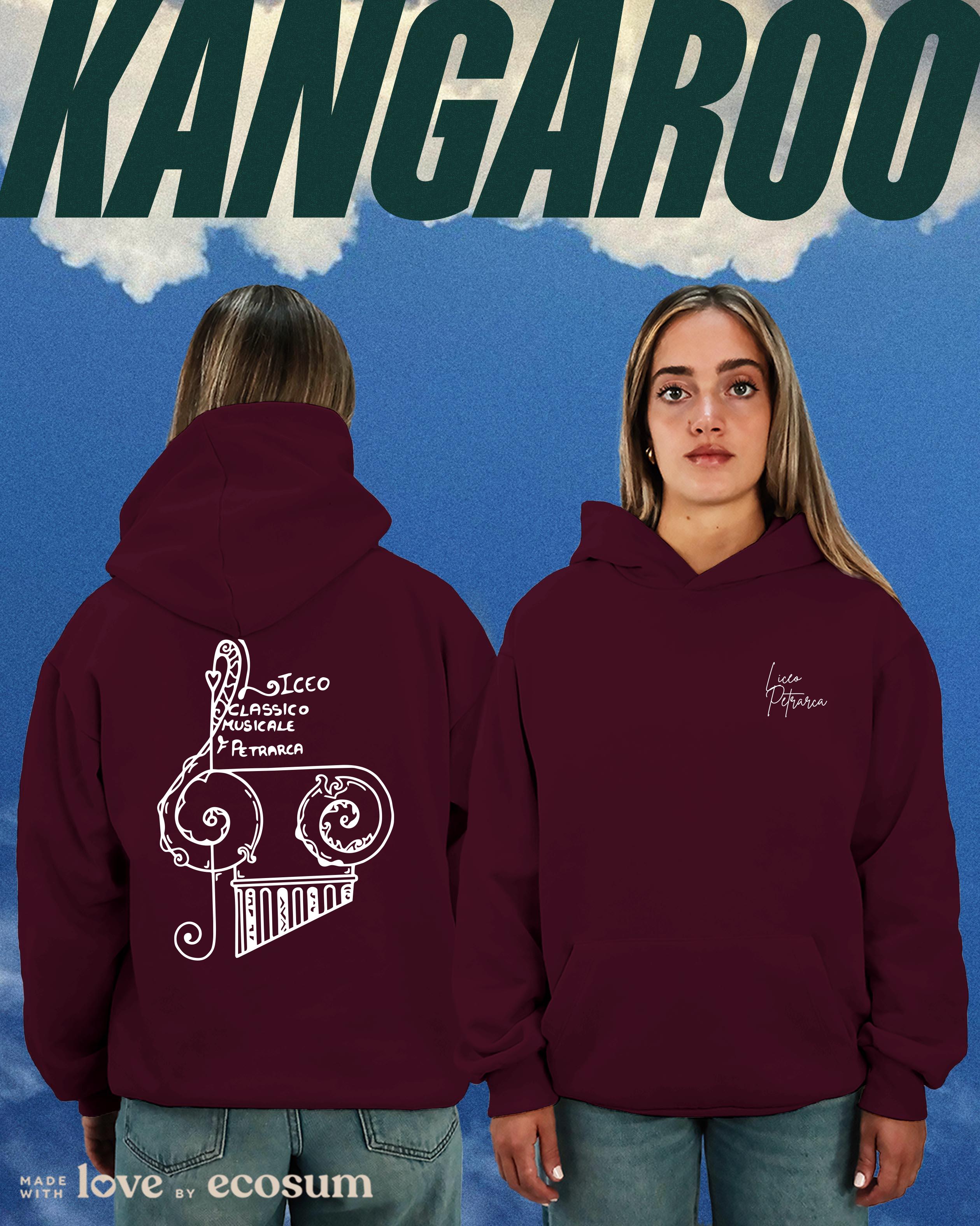 Hoodie iconica con cappuccio e tascone, studiata e prodotta in Italia con filati riciclati.