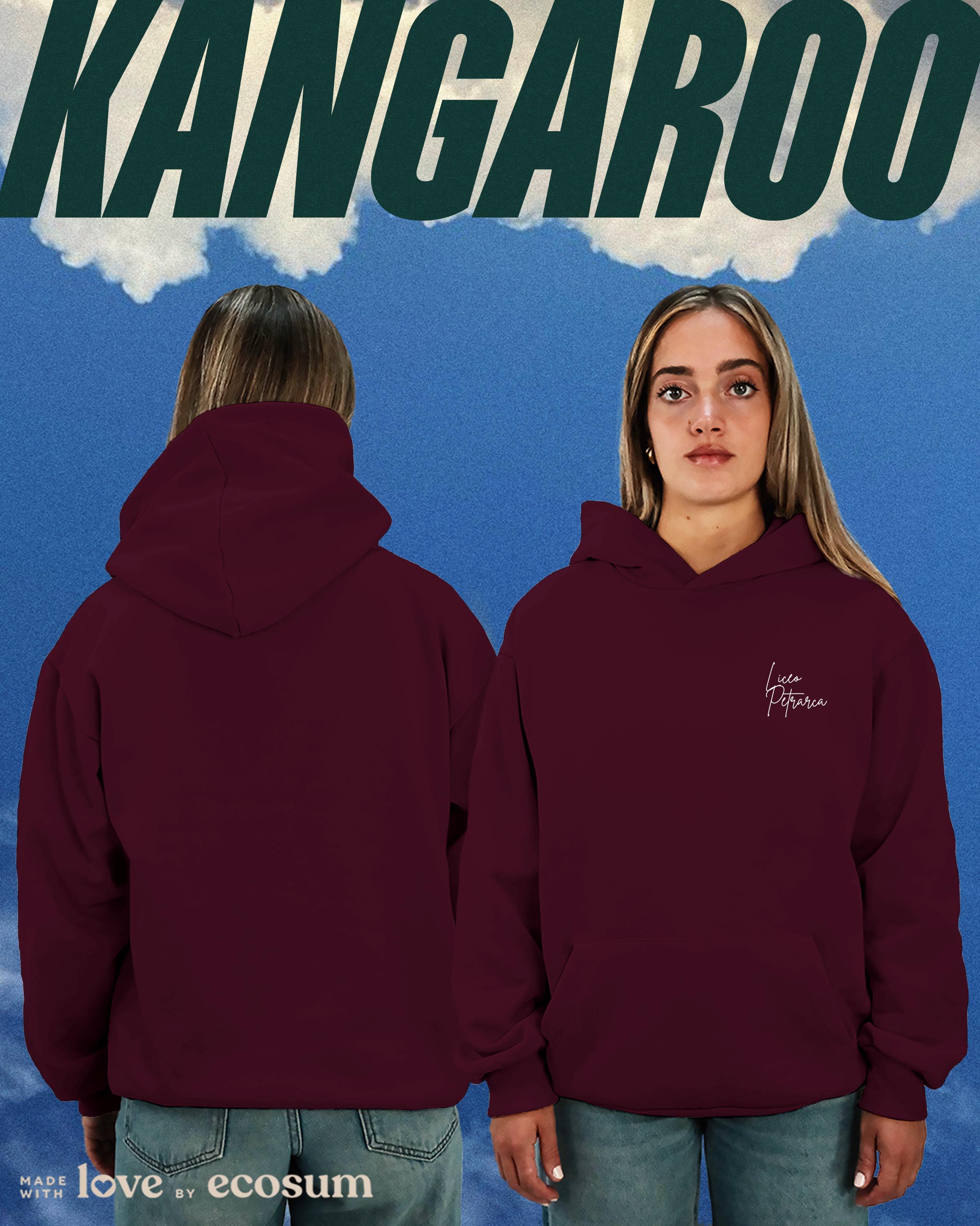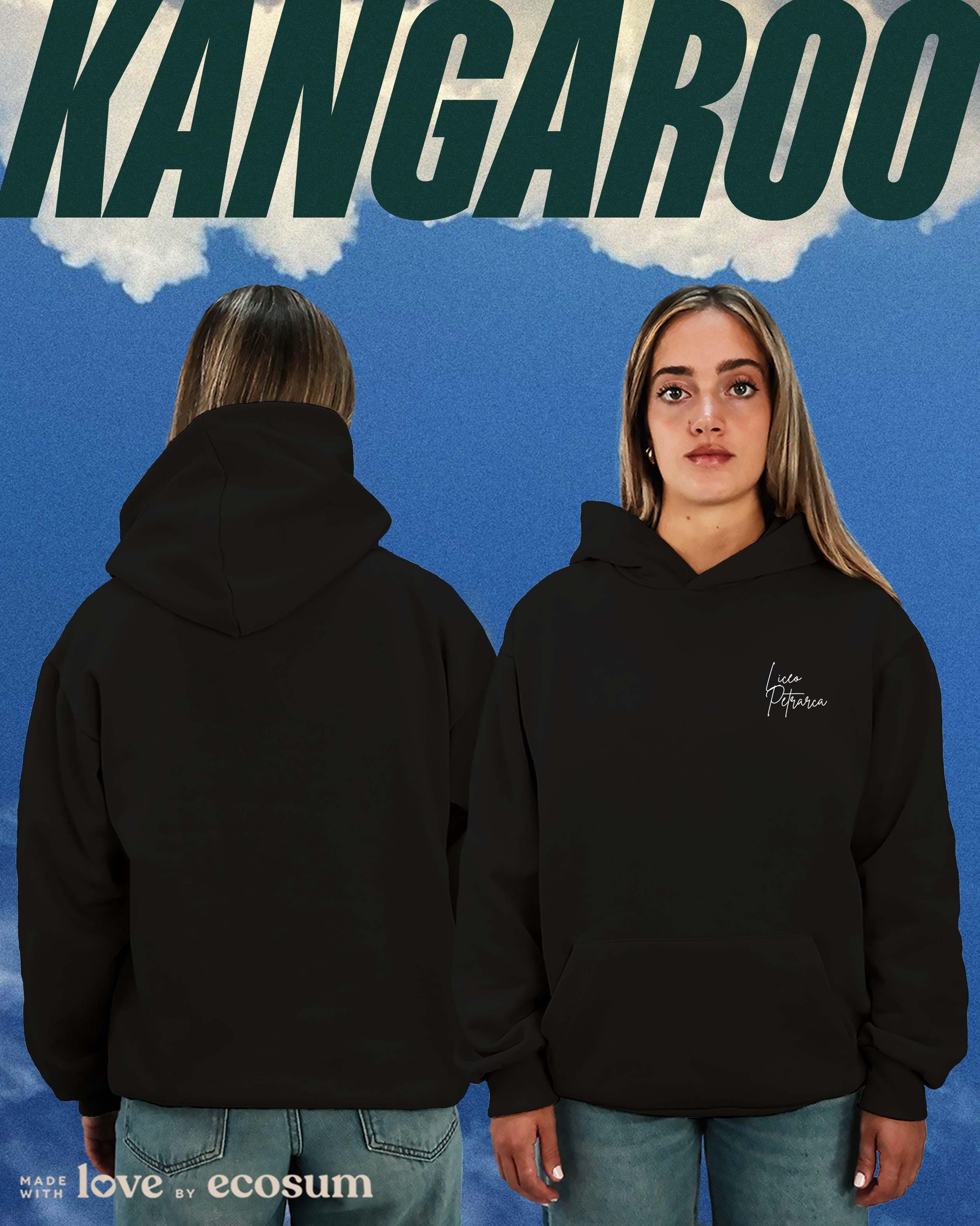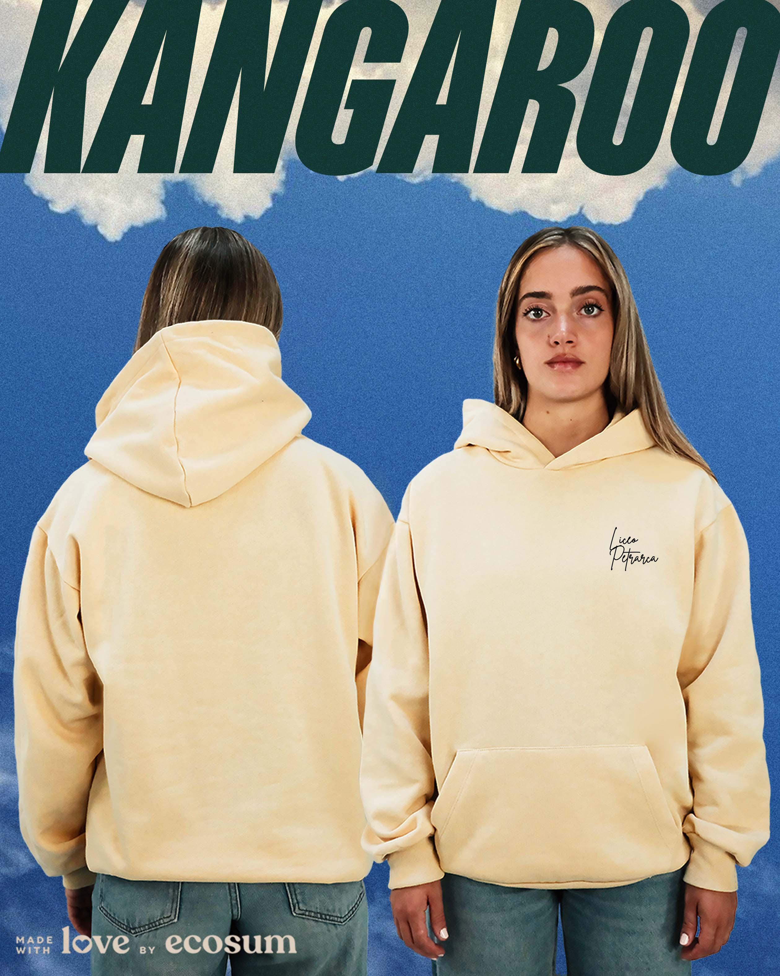 Hoodie iconica con cappuccio e tascone, studiata e prodotta in Italia con filati riciclati.