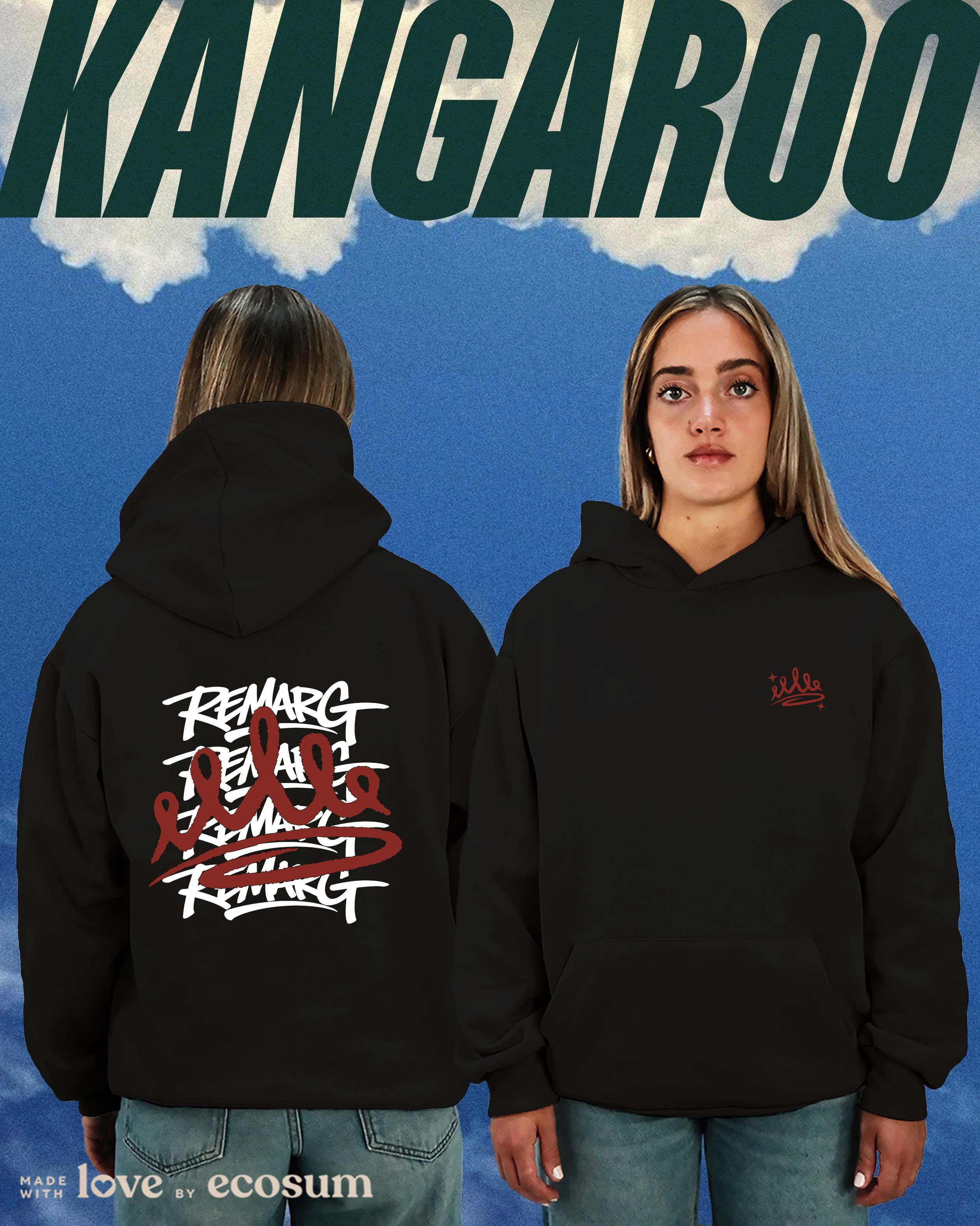 Hoodie iconica con cappuccio e tascone, studiata e prodotta in Italia con filati riciclati.