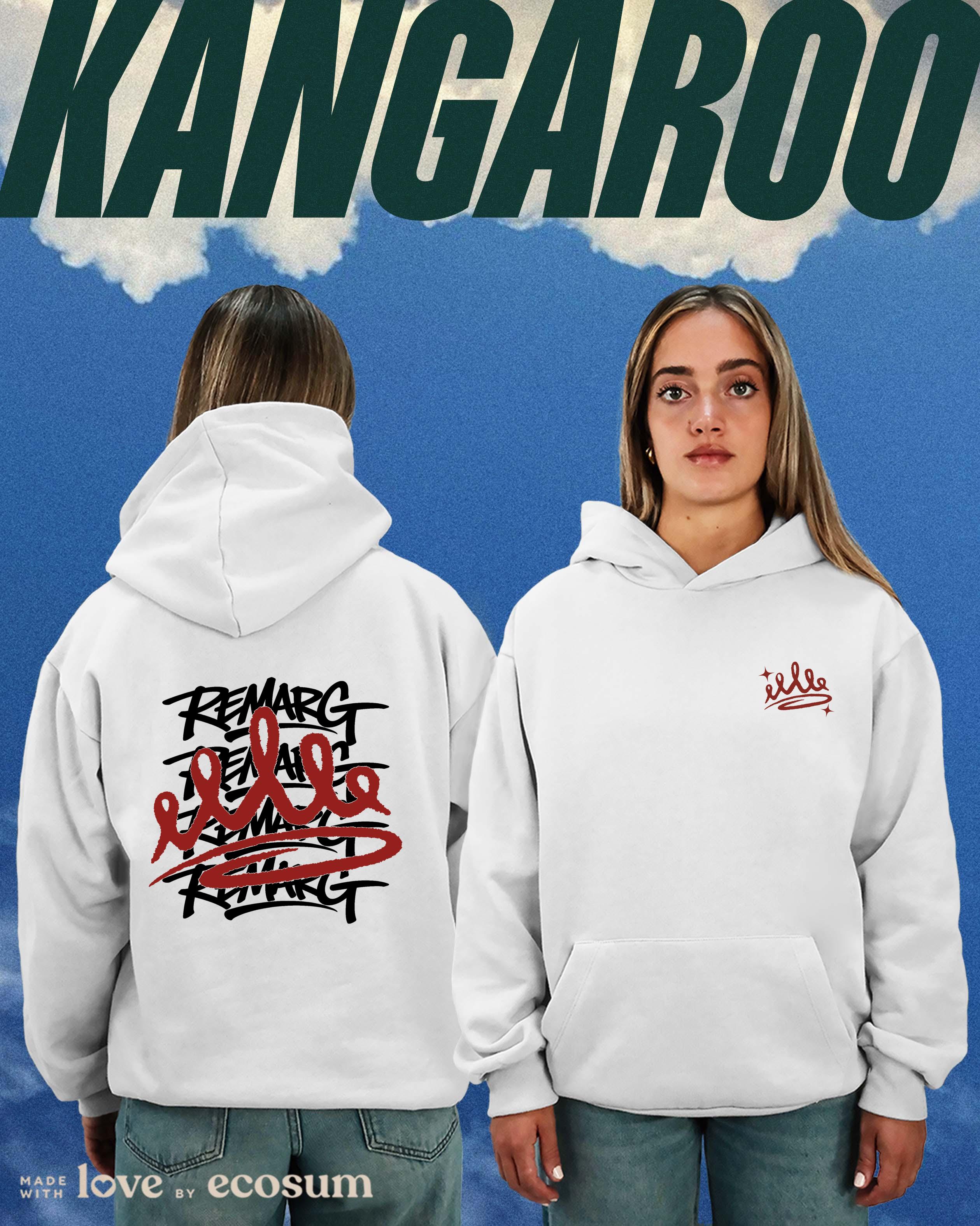 Hoodie iconica con cappuccio e tascone, studiata e prodotta in Italia con filati riciclati.
