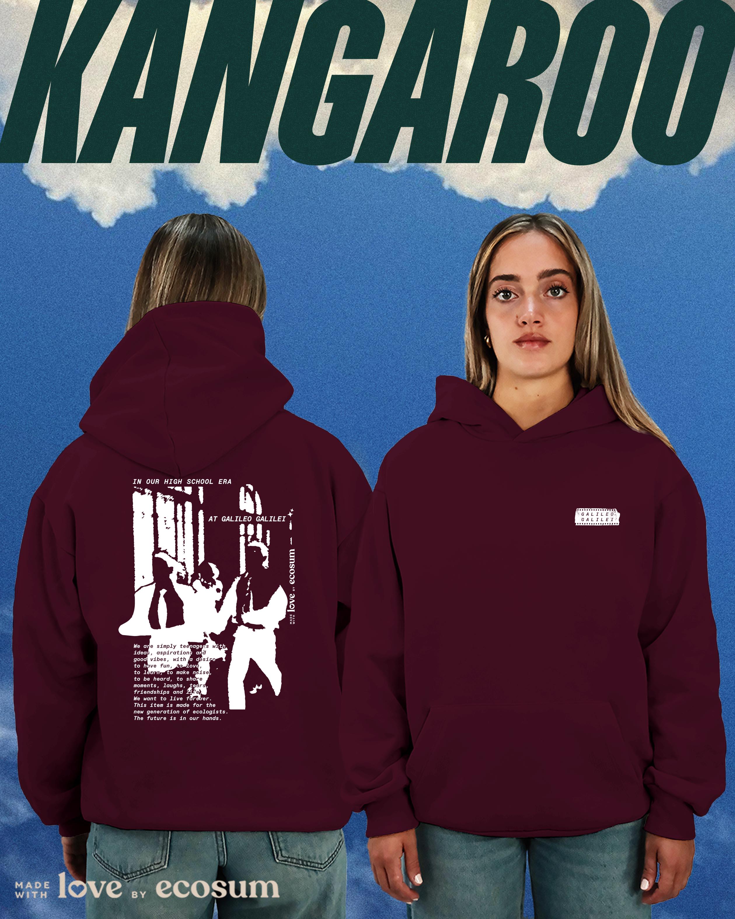 Hoodie iconica con cappuccio e tascone, studiata e prodotta in Italia con filati riciclati.