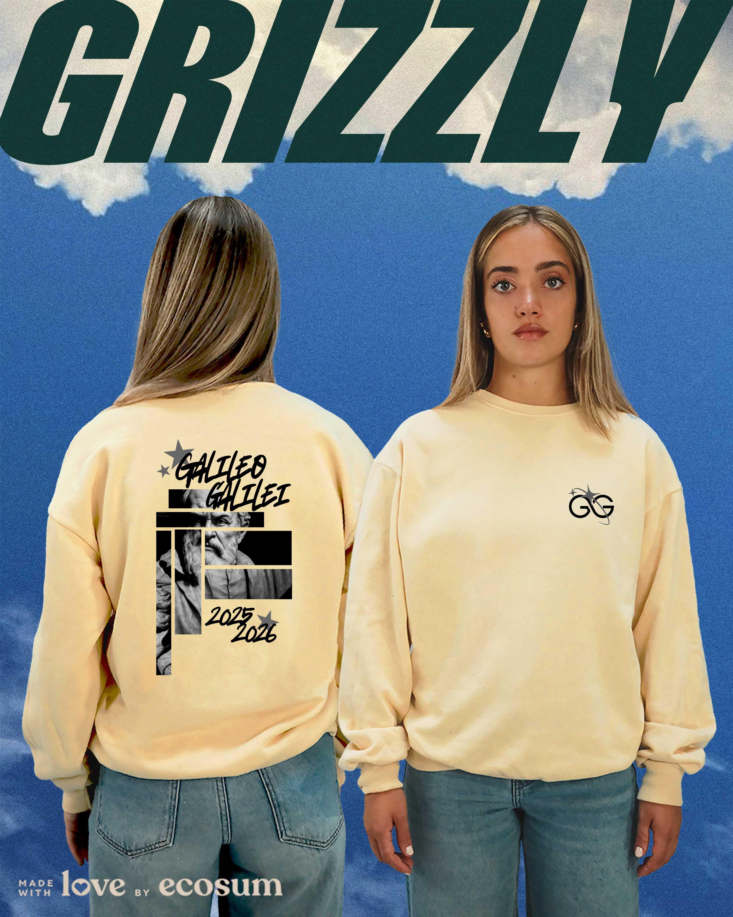 Crewneck iconica girocollo, studiata e prodotta in Italia con filati riciclati.