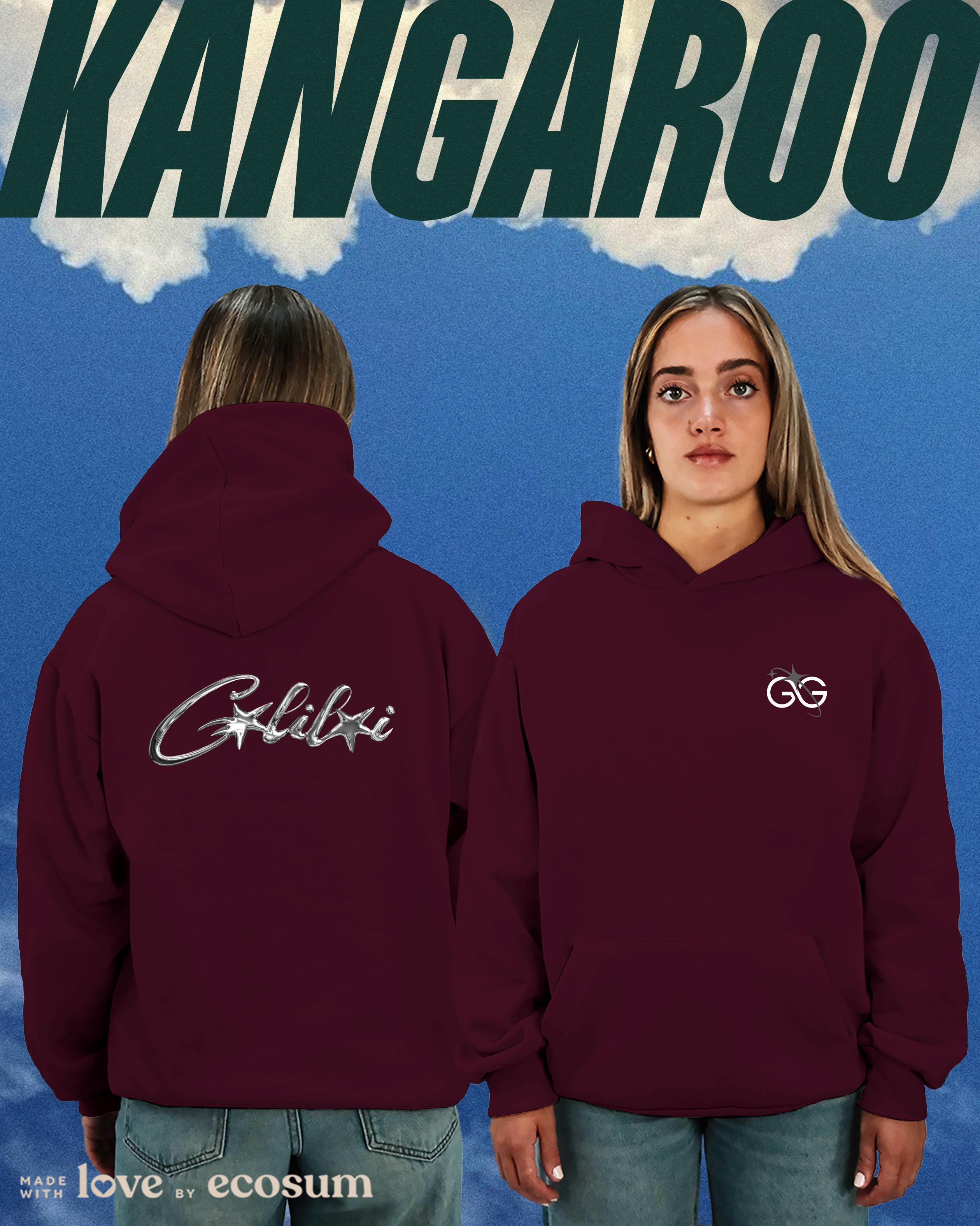 Hoodie iconica con cappuccio e tascone, studiata e prodotta in Italia con filati riciclati.