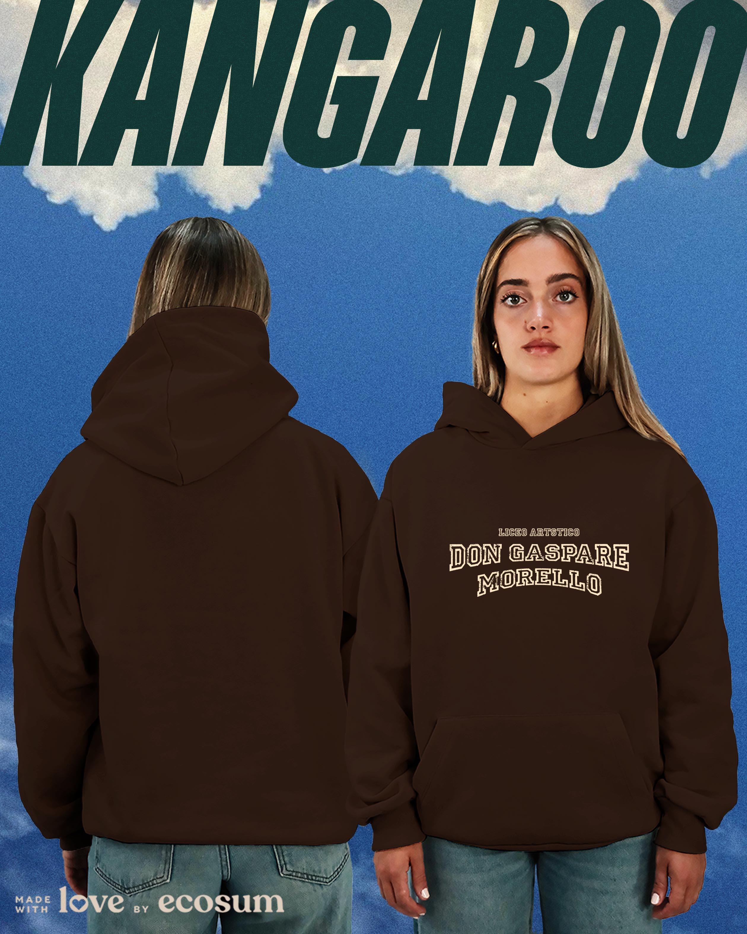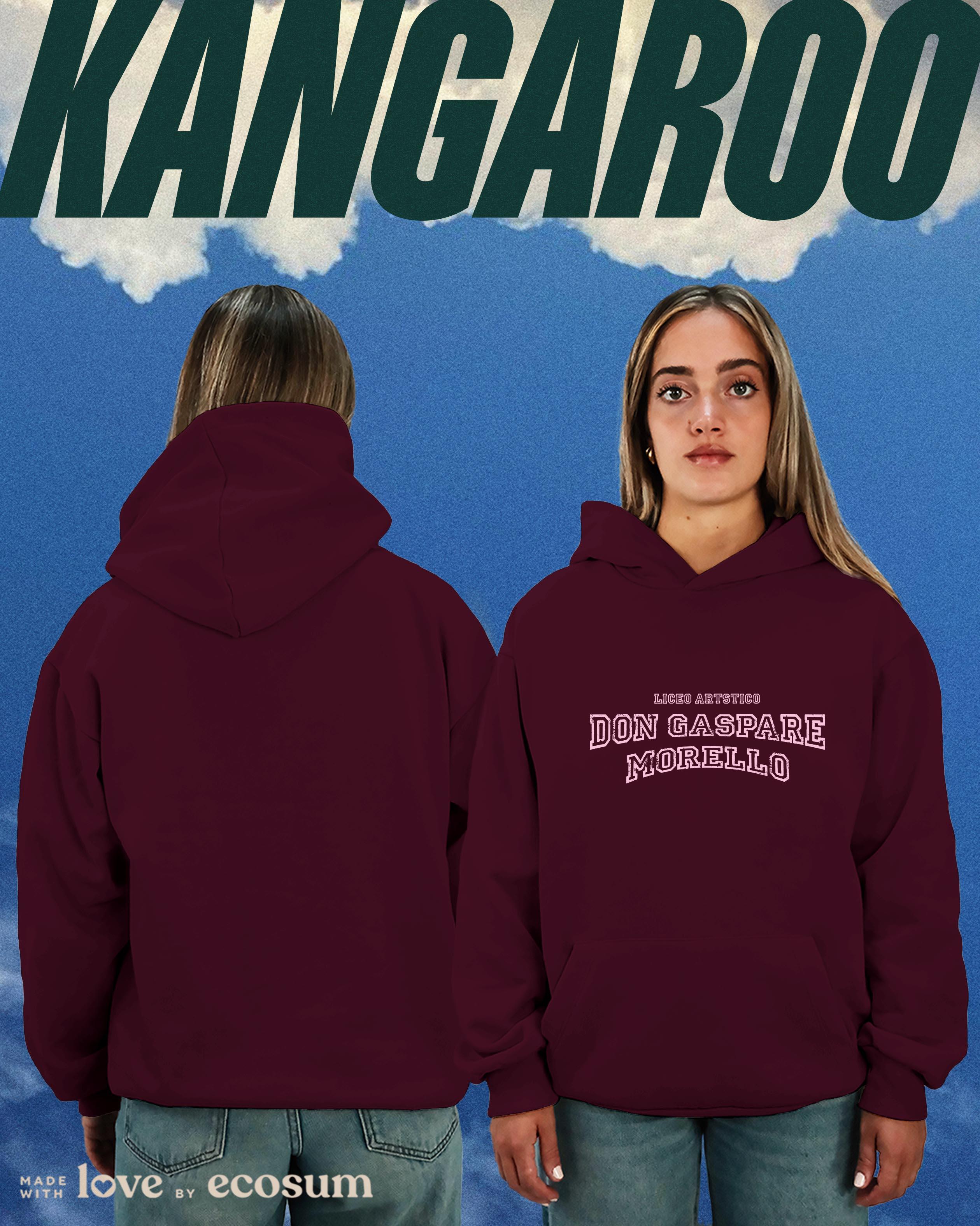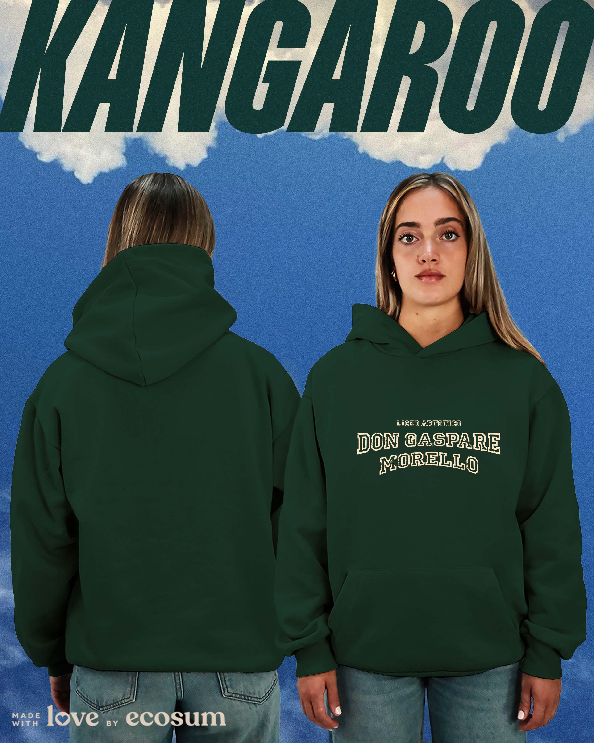 Hoodie iconica con cappuccio e tascone, studiata e prodotta in Italia con filati riciclati.