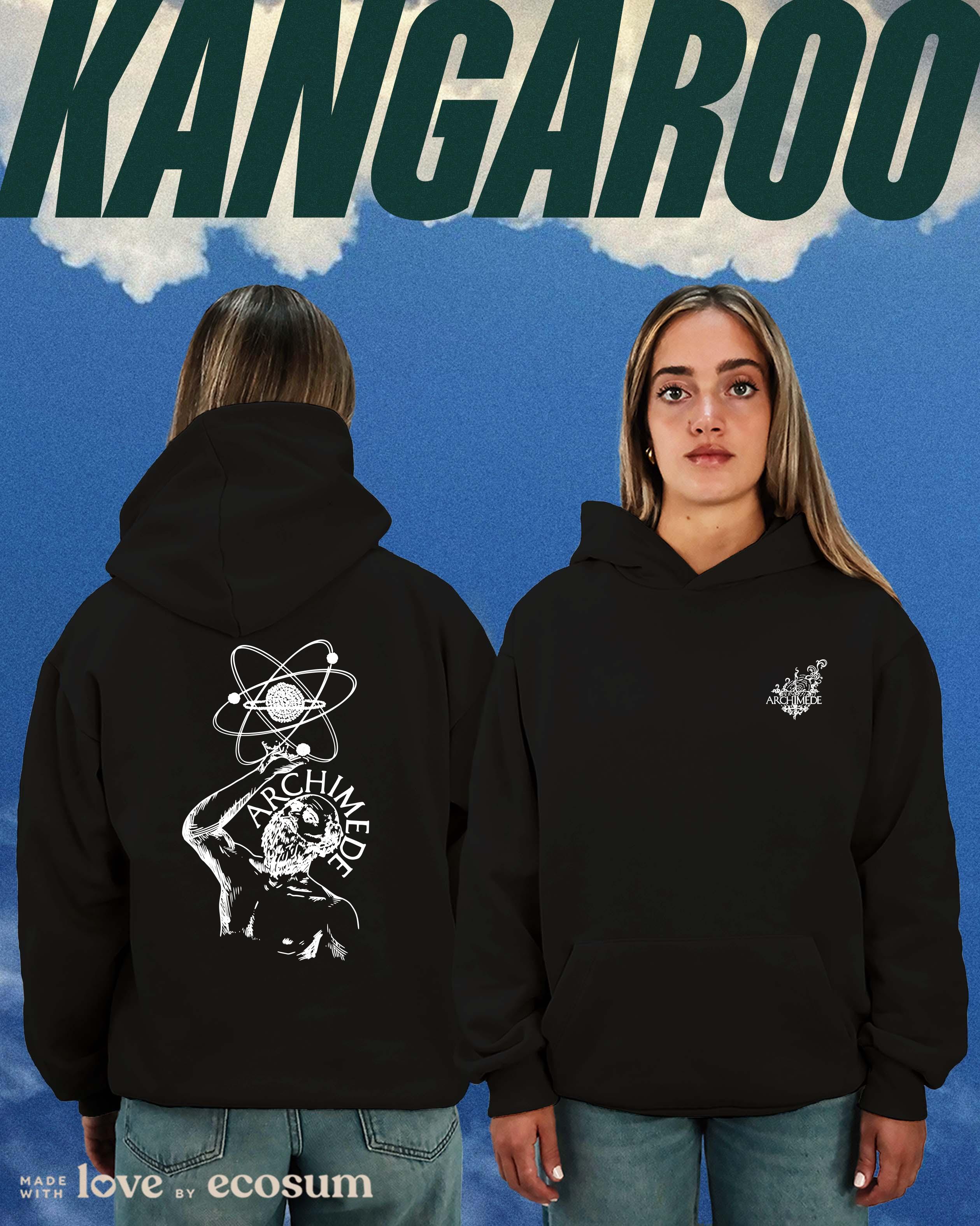 Hoodie iconica con cappuccio e tascone, studiata e prodotta in Italia con filati riciclati.