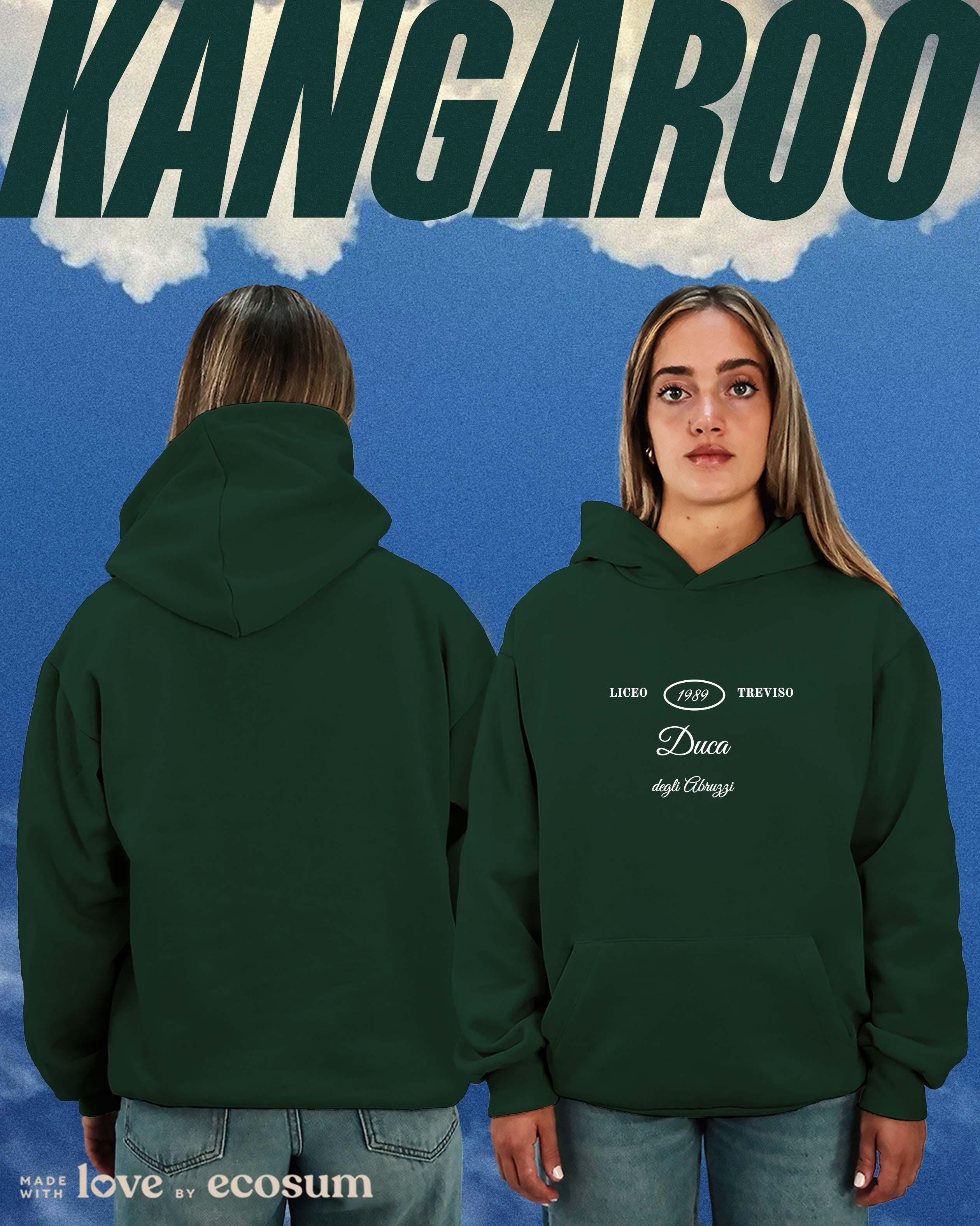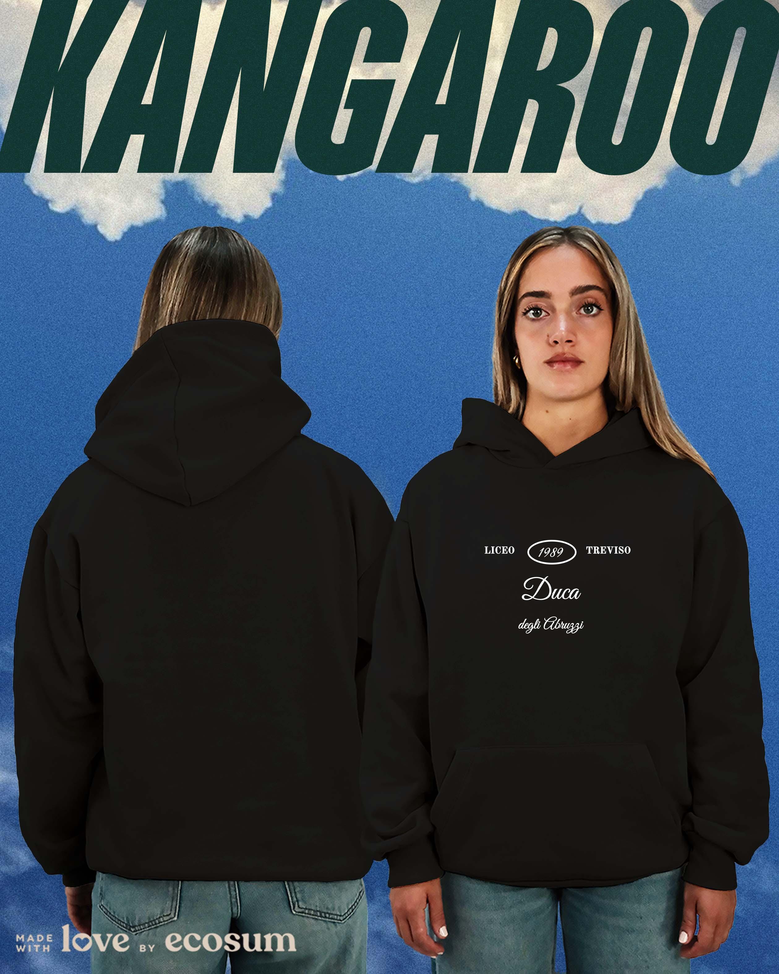 Hoodie iconica con cappuccio e tascone, studiata e prodotta in Italia con filati riciclati.