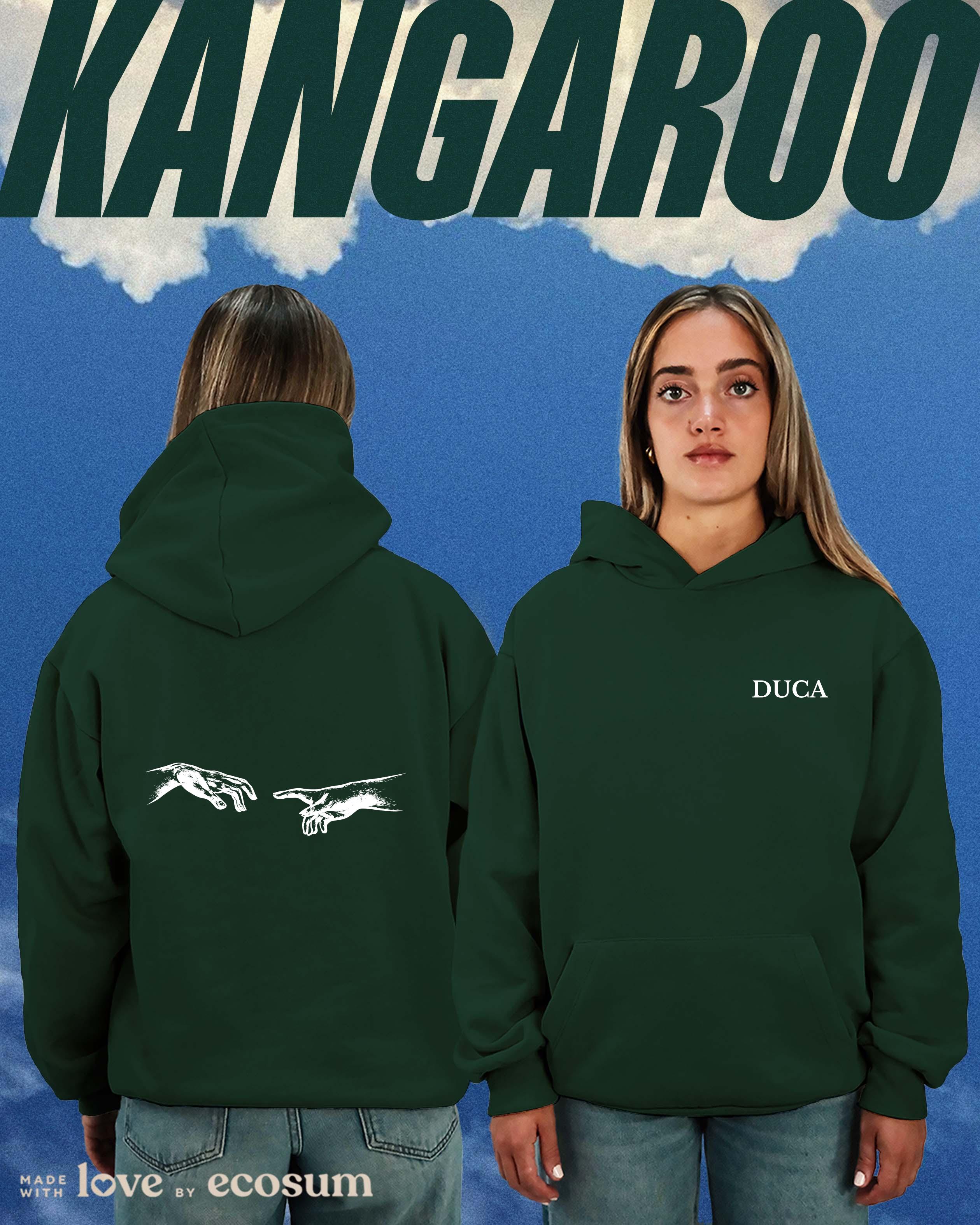 Hoodie iconica con cappuccio e tascone, studiata e prodotta in Italia con filati riciclati.
