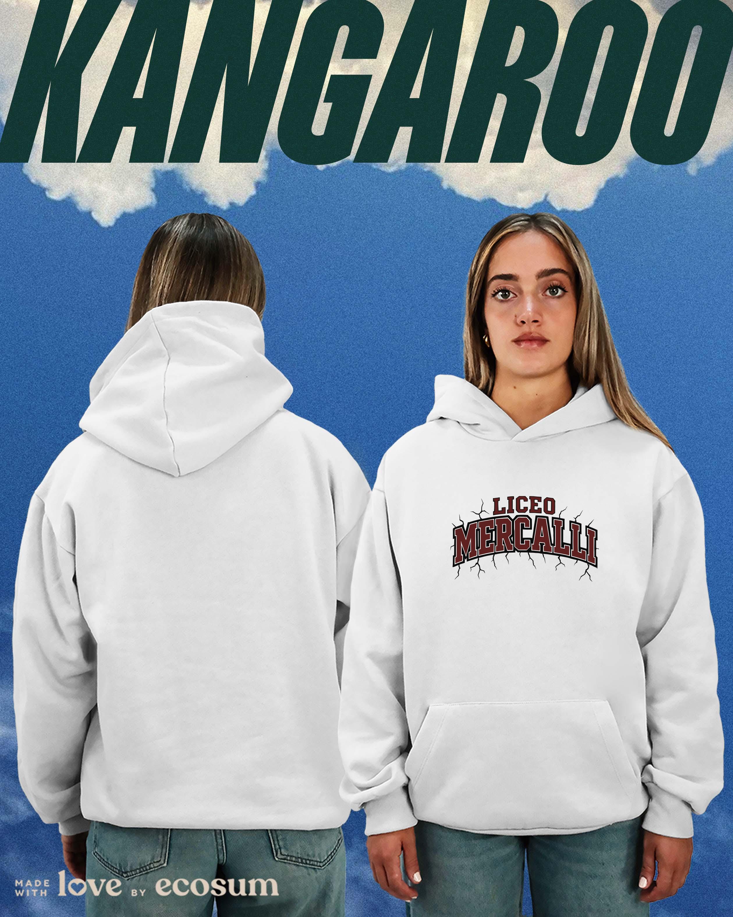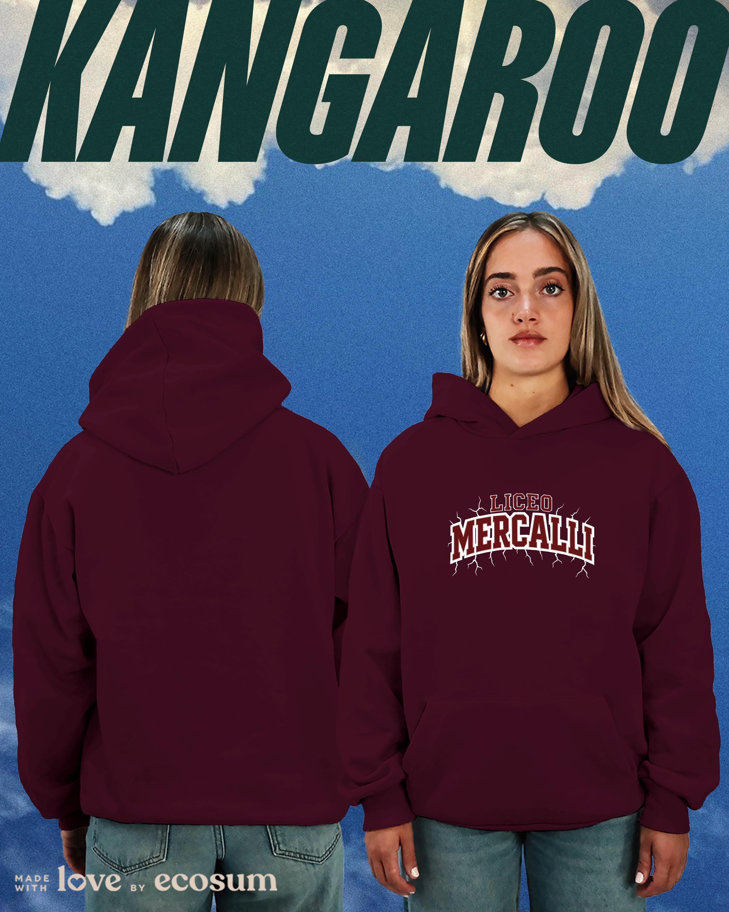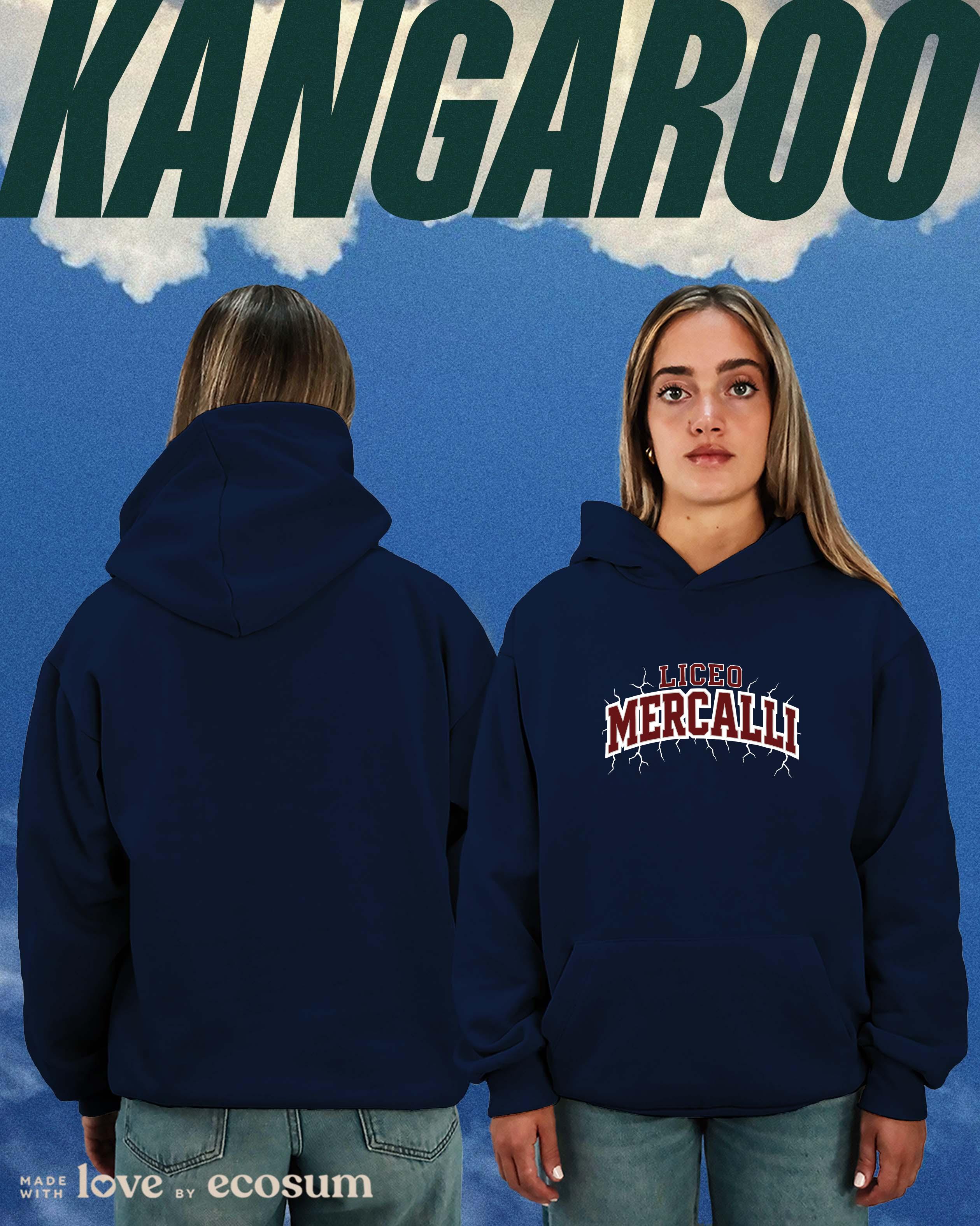 Hoodie iconica con cappuccio e tascone, studiata e prodotta in Italia con filati riciclati.