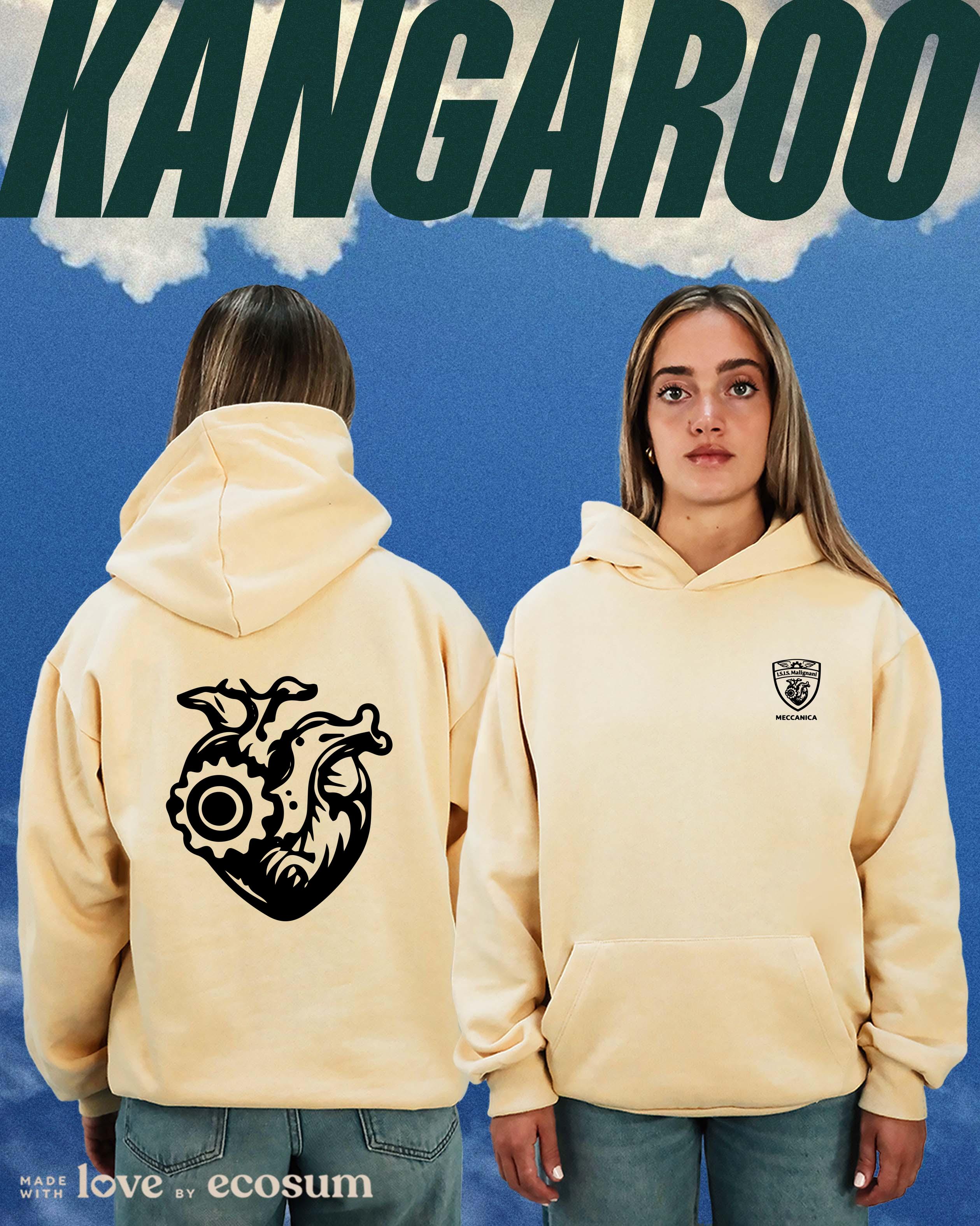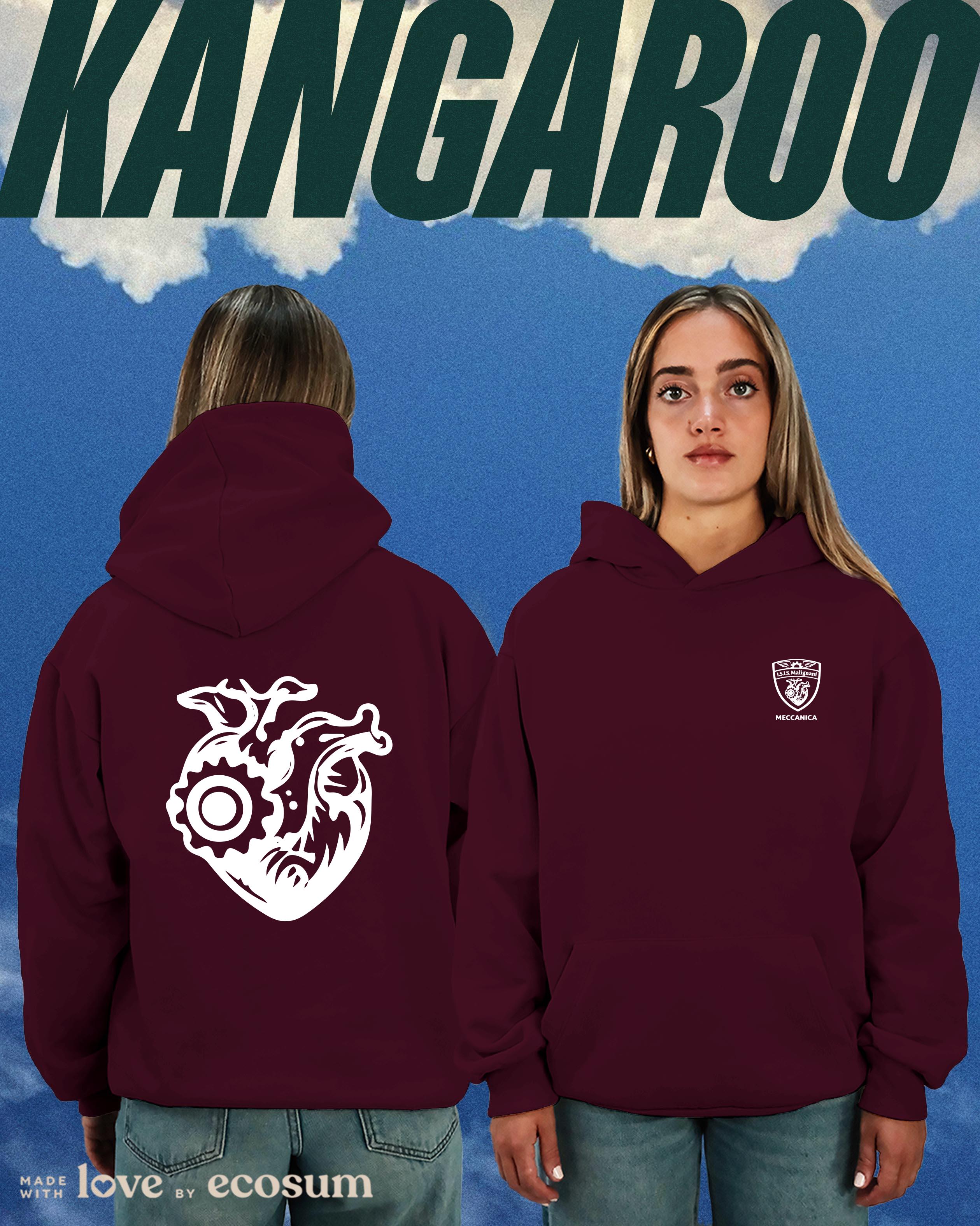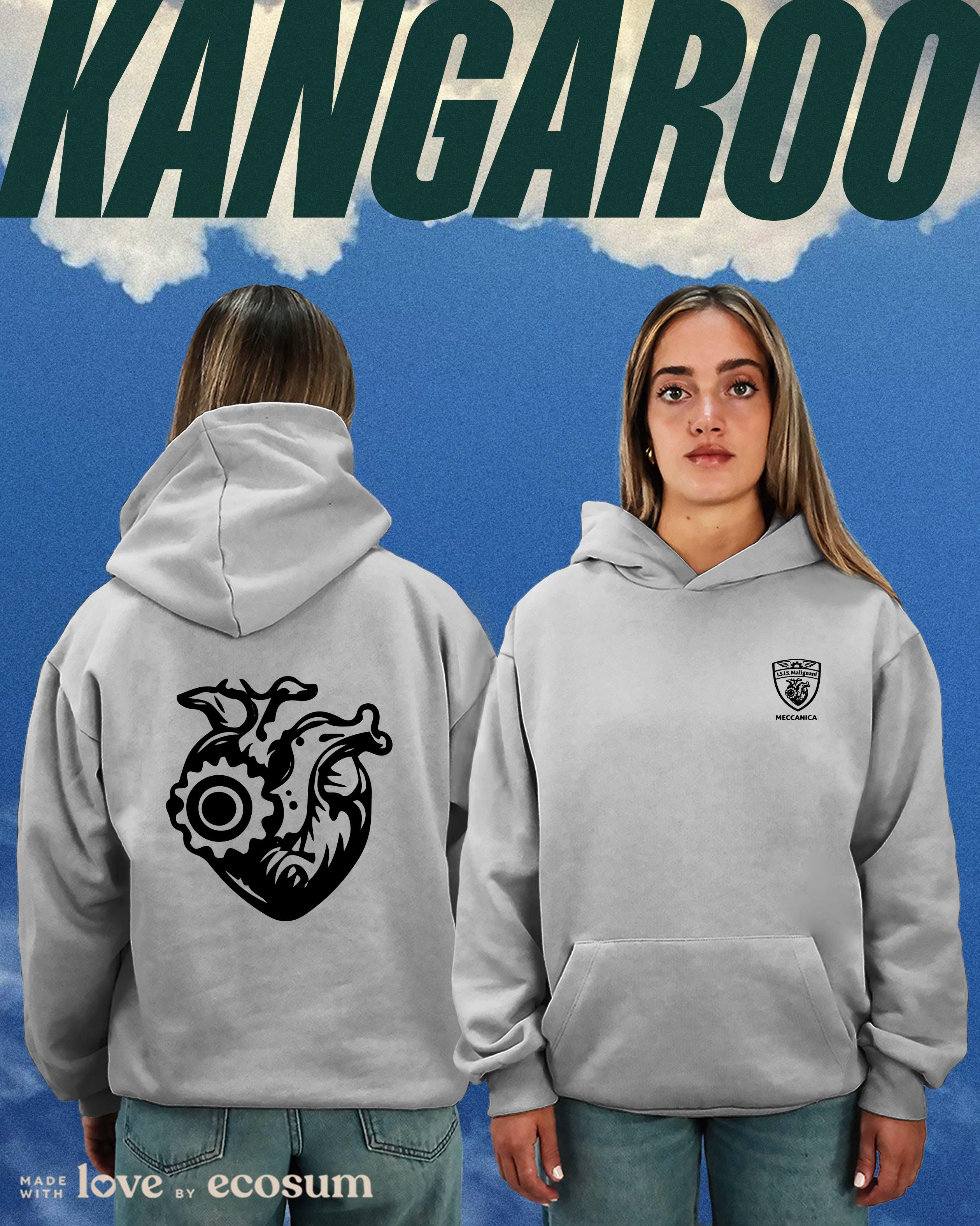 Hoodie iconica con cappuccio e tascone, studiata e prodotta in Italia con filati riciclati.