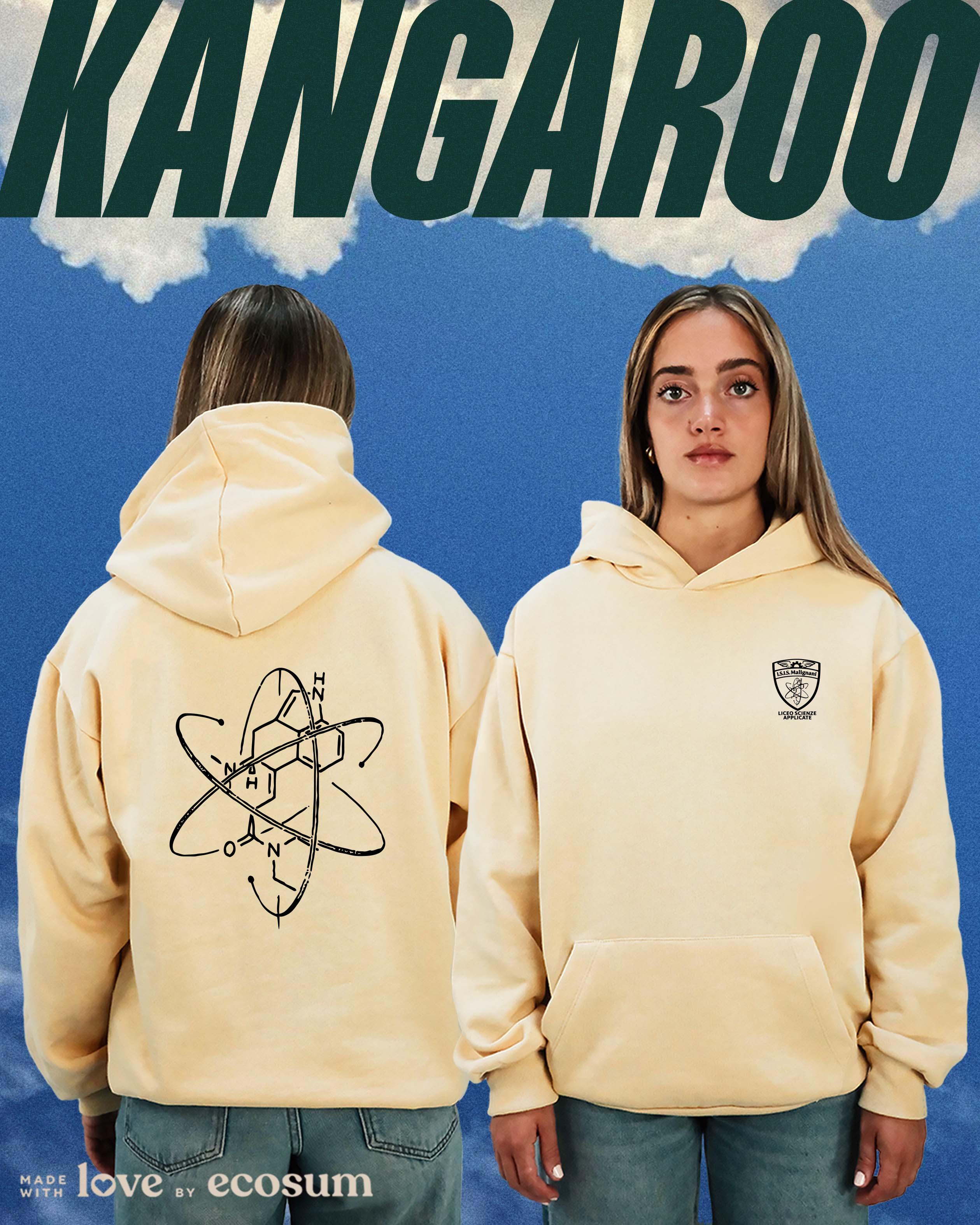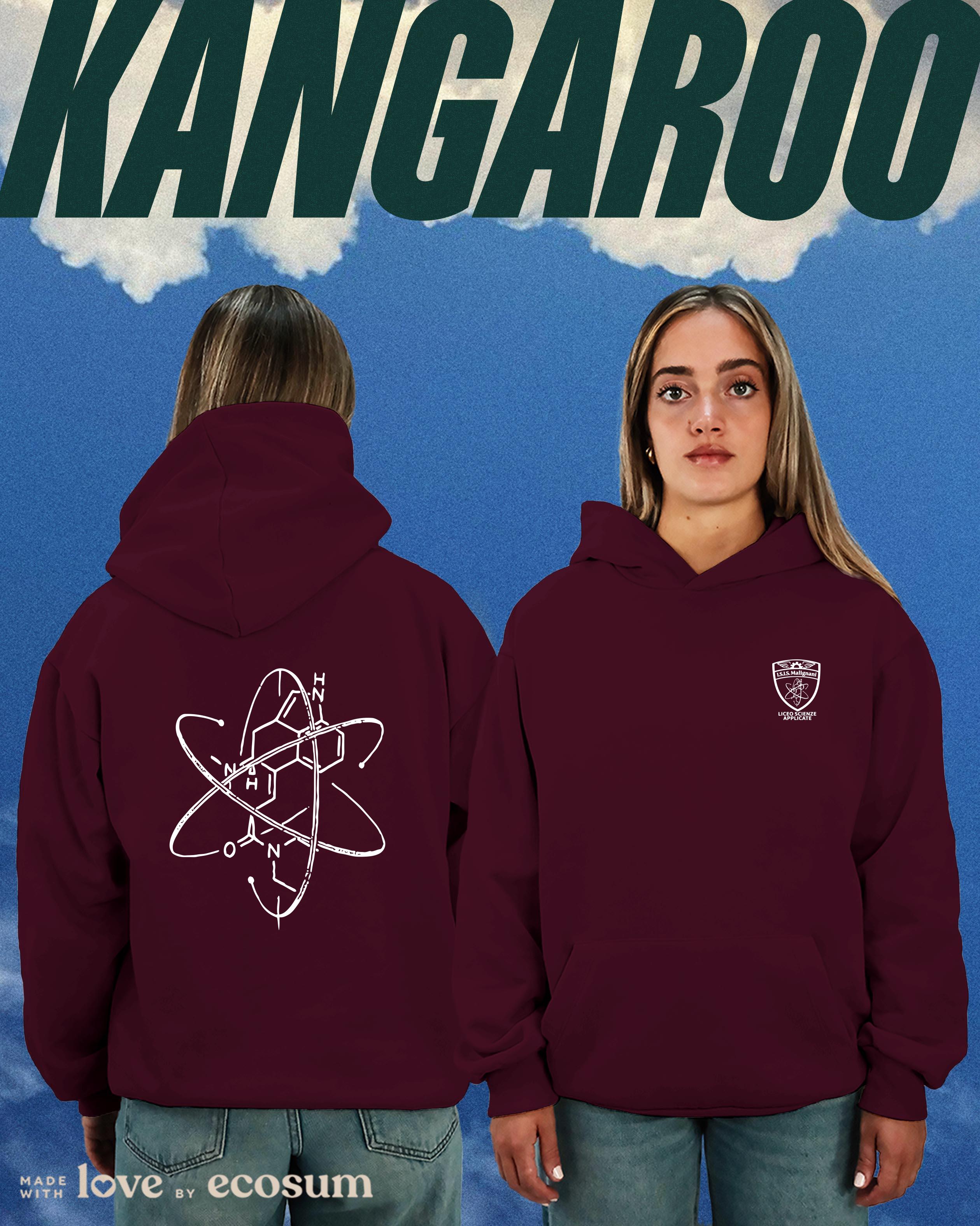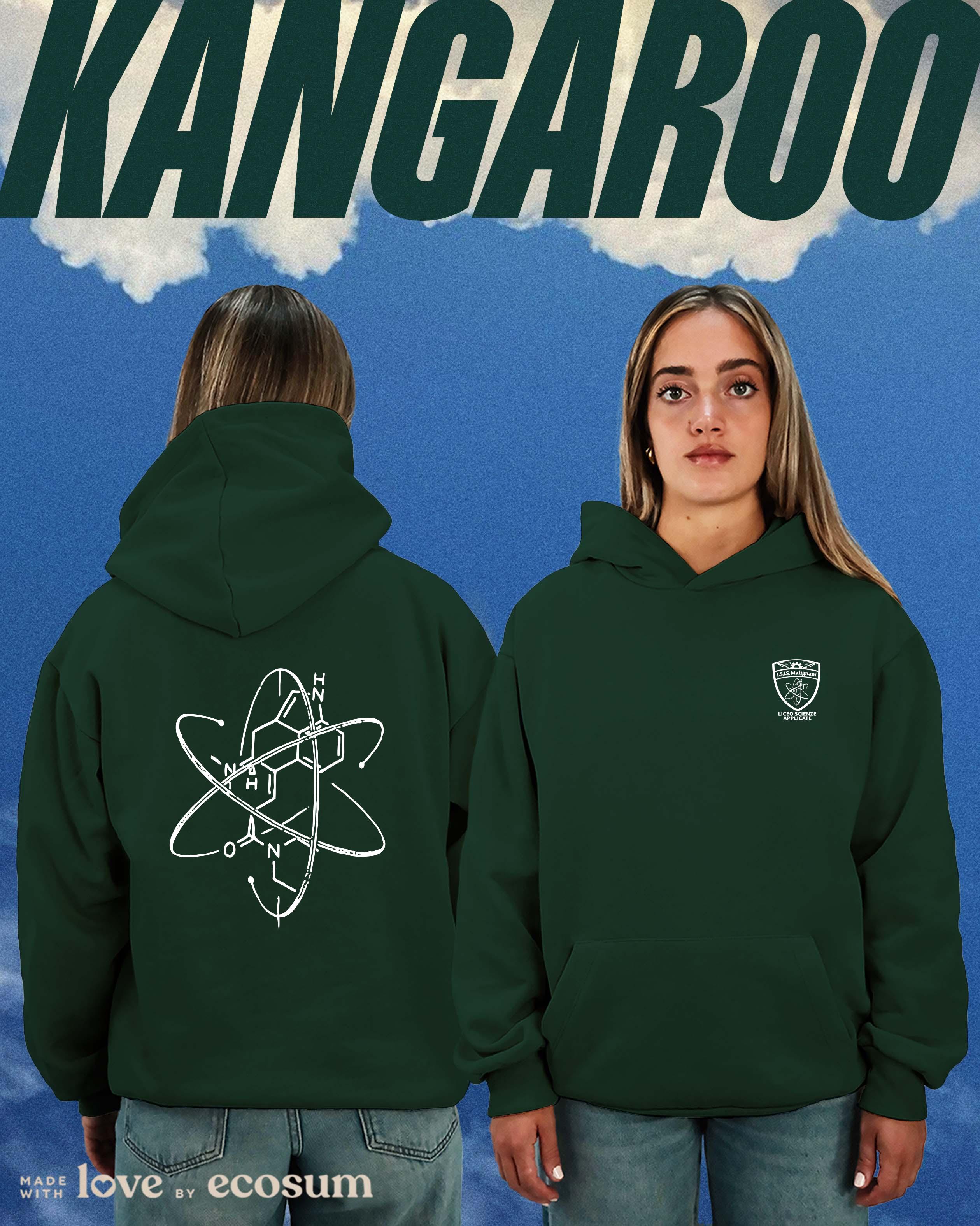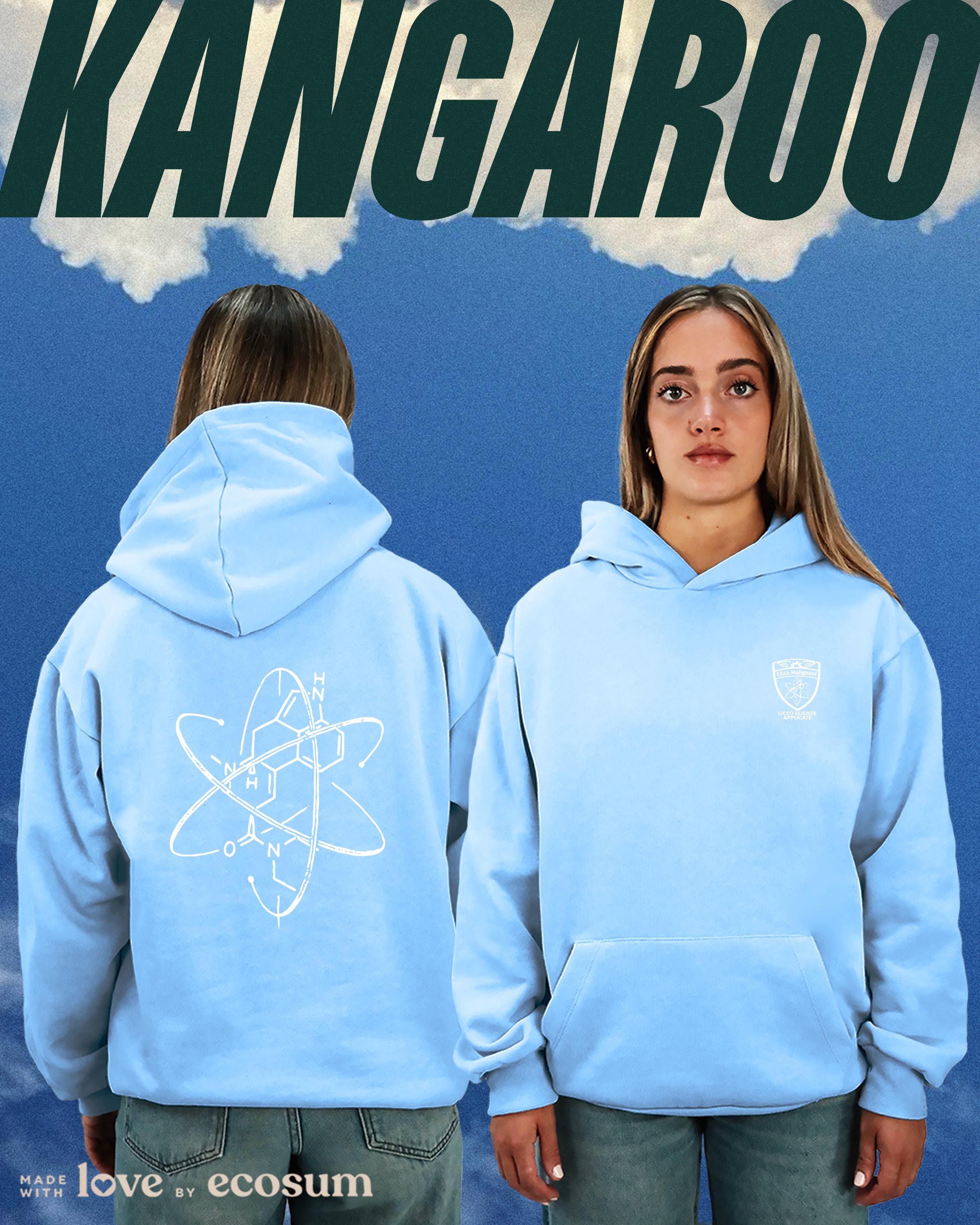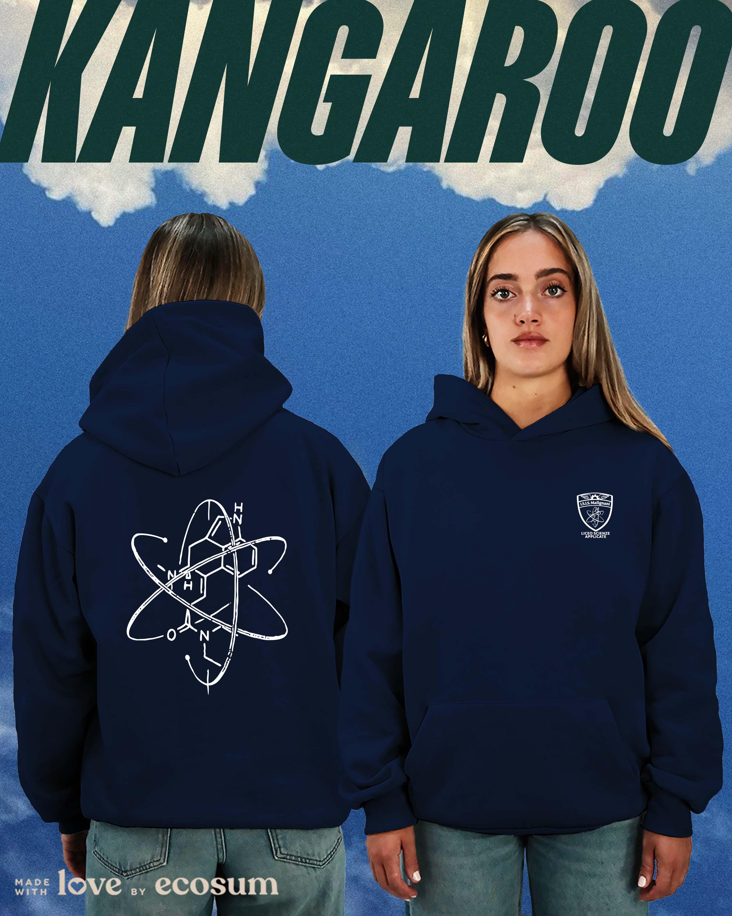 Hoodie iconica con cappuccio e tascone, studiata e prodotta in Italia con filati riciclati.