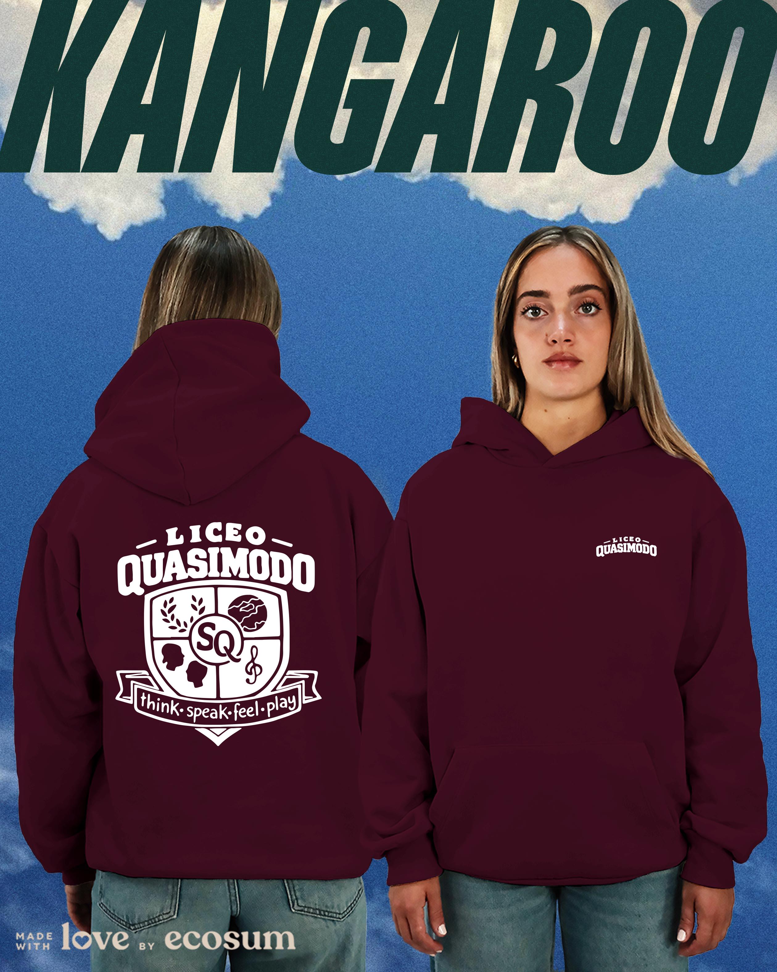 Hoodie iconica con cappuccio e tascone, studiata e prodotta in Italia con filati riciclati.