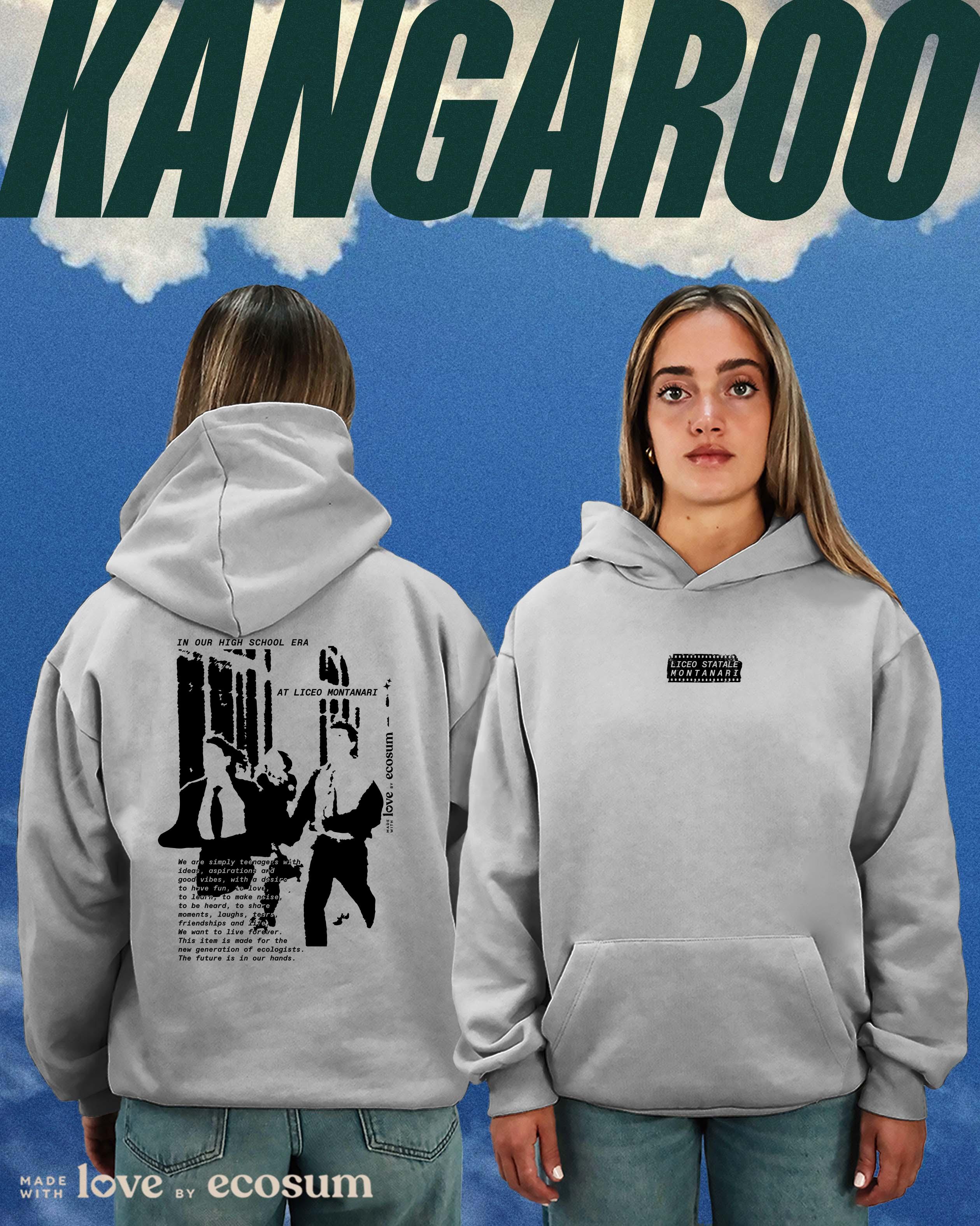 Hoodie iconica con cappuccio e tascone, studiata e prodotta in Italia con filati riciclati.