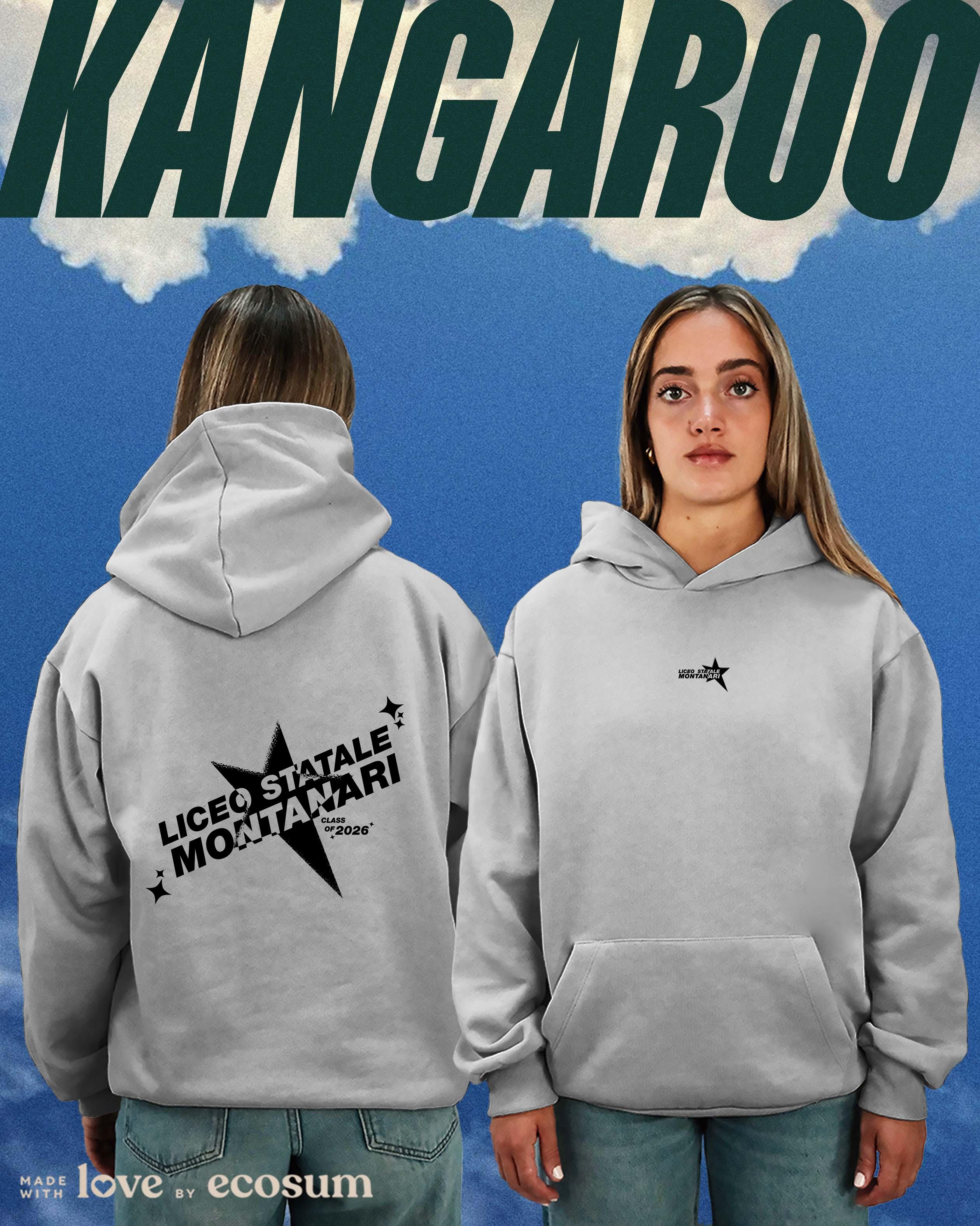 Hoodie iconica con cappuccio e tascone, studiata e prodotta in Italia con filati riciclati.