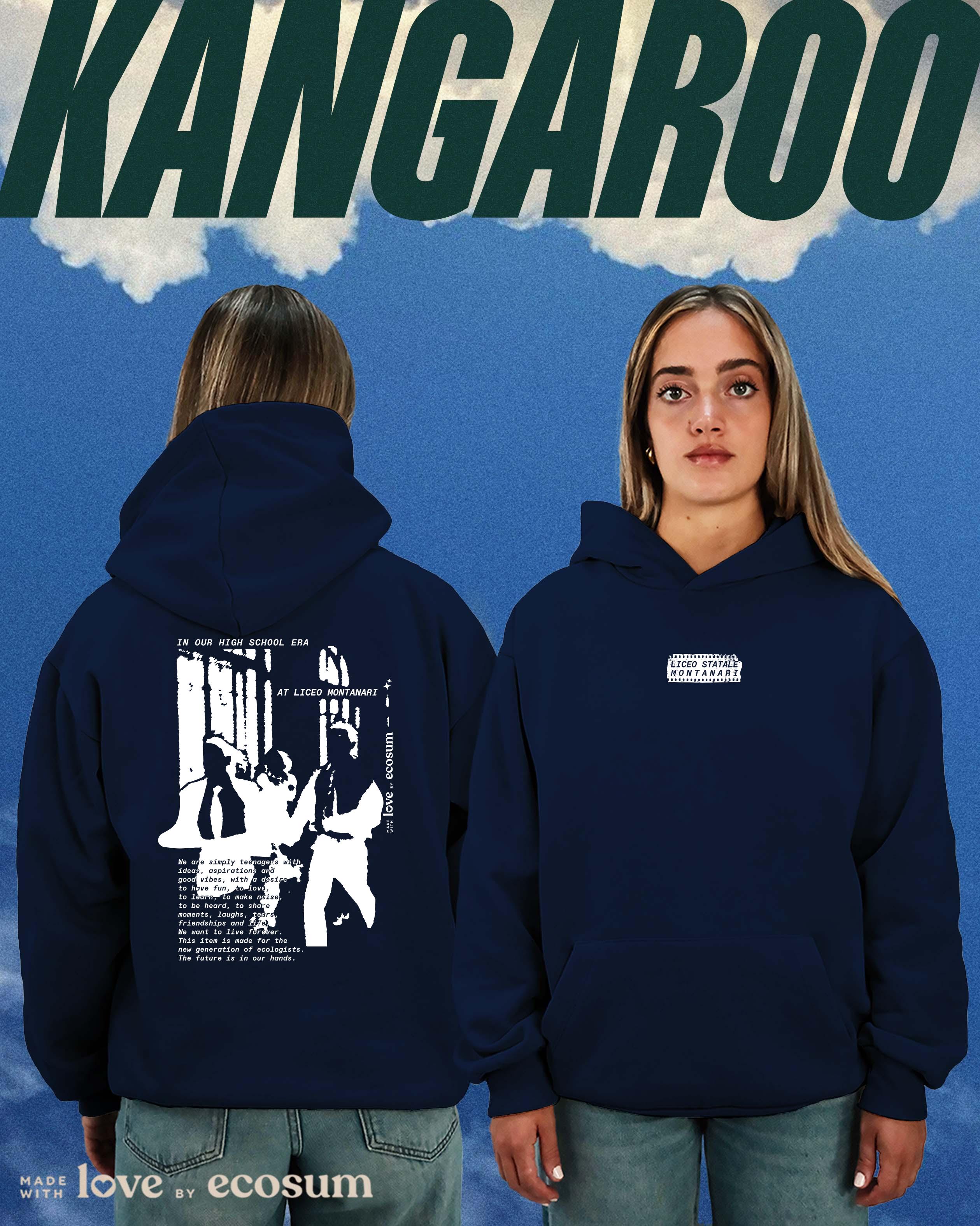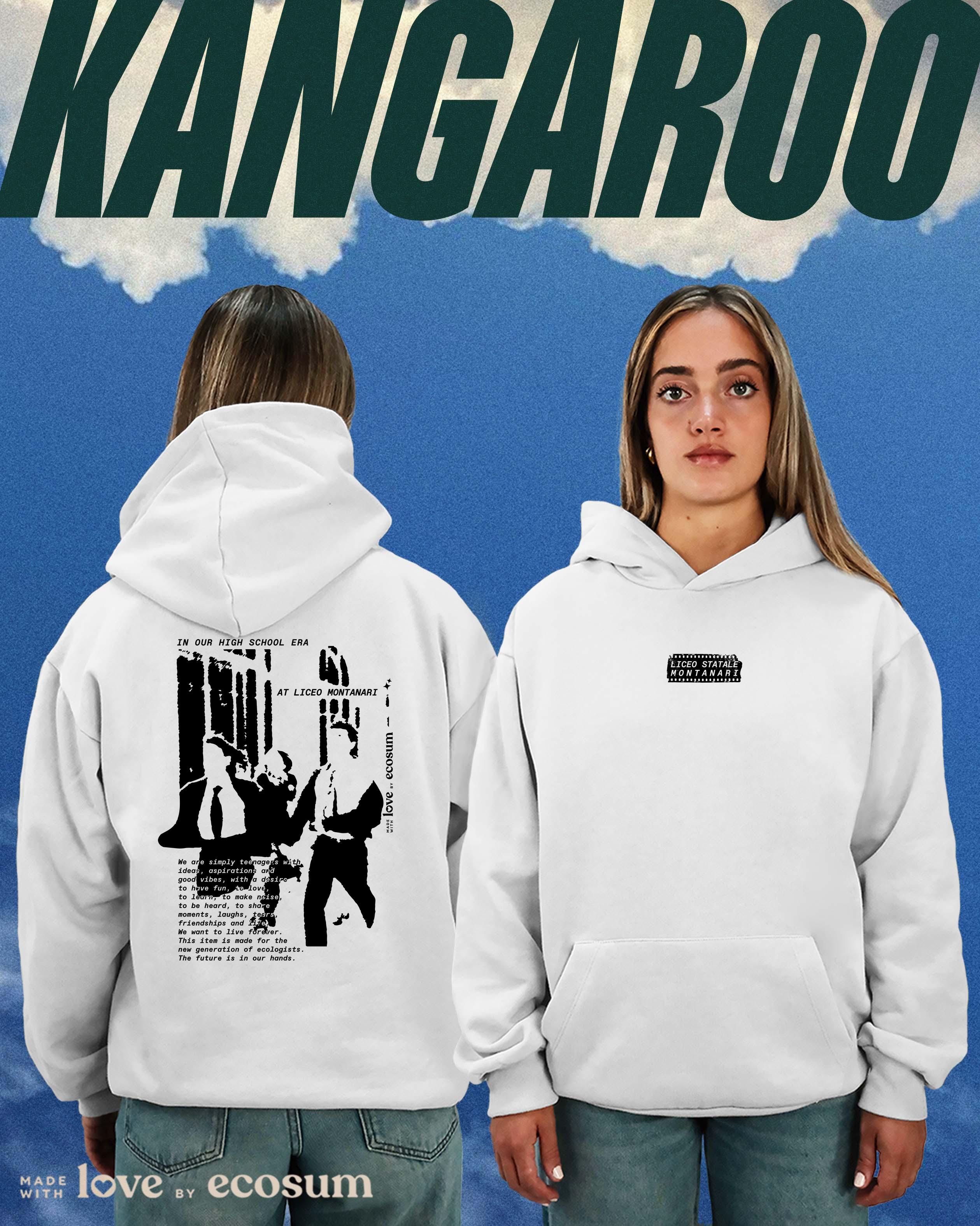 Hoodie iconica con cappuccio e tascone, studiata e prodotta in Italia con filati riciclati.
