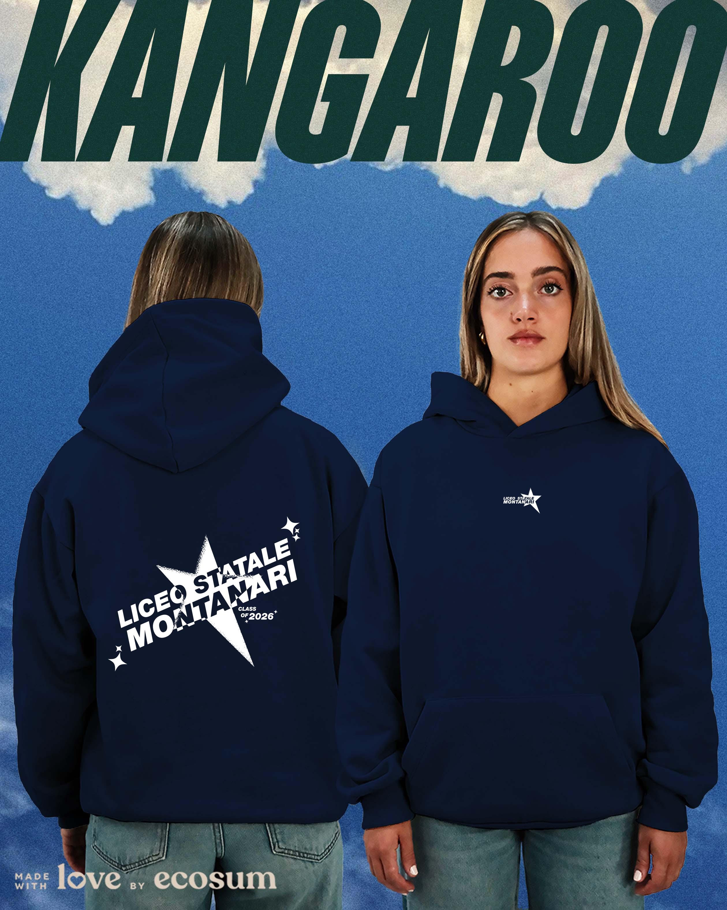 Hoodie iconica con cappuccio e tascone, studiata e prodotta in Italia con filati riciclati.