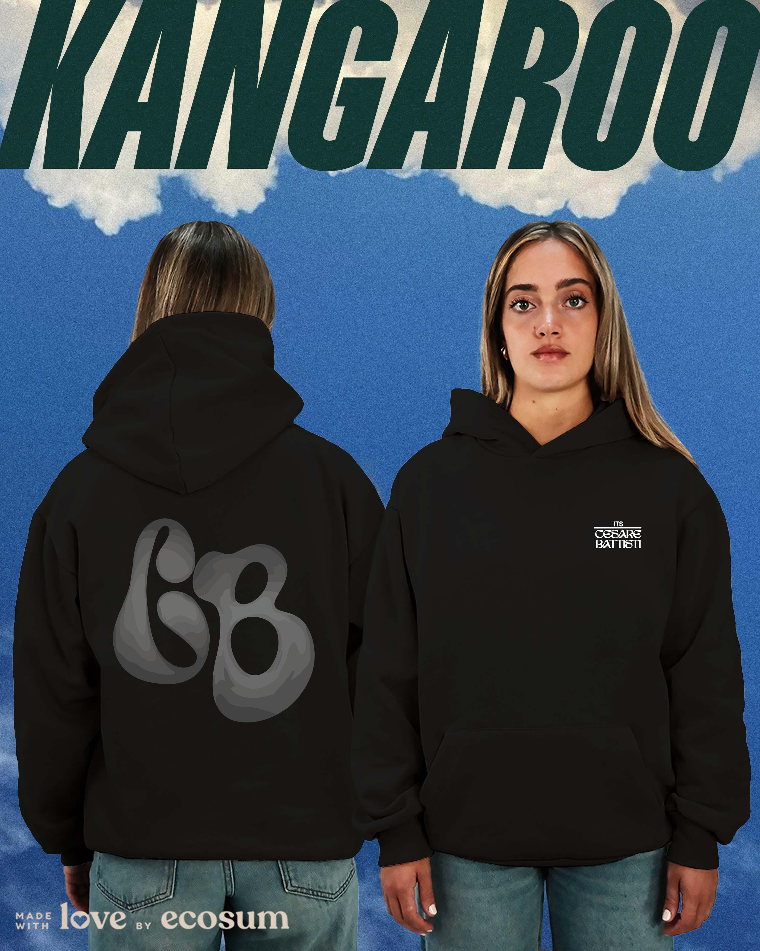 Hoodie iconica con cappuccio e tascone, studiata e prodotta in Italia con filati riciclati.