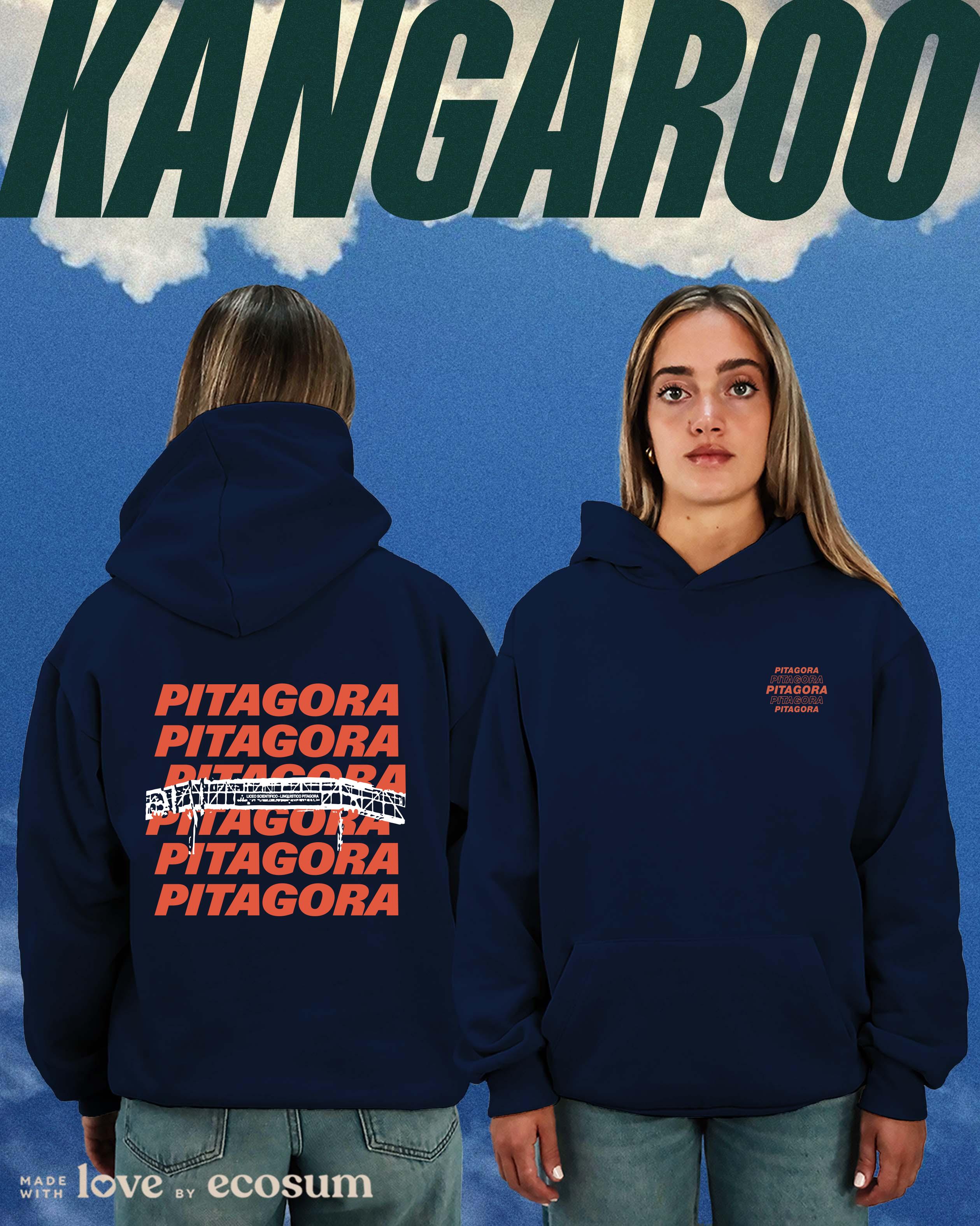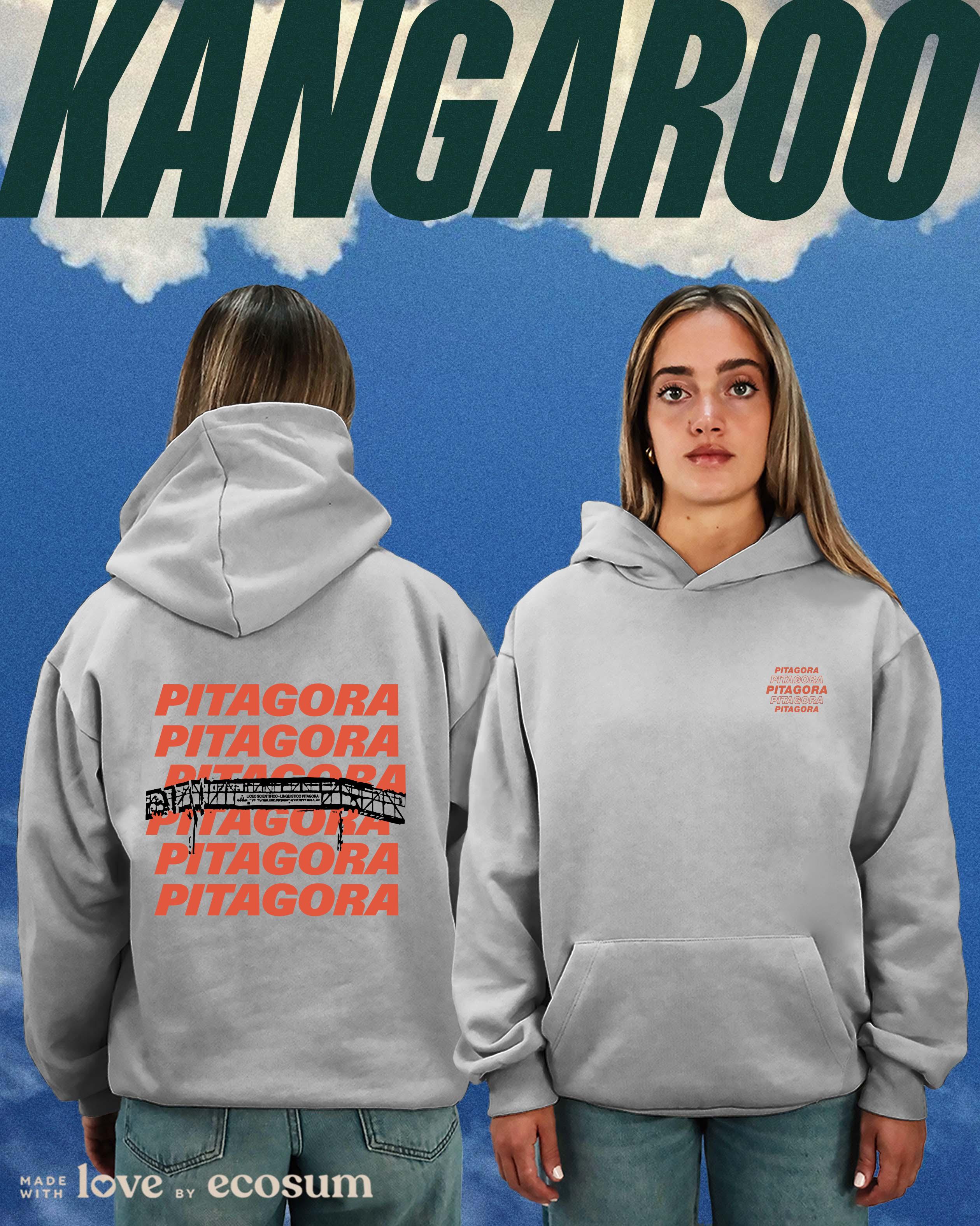Hoodie iconica con cappuccio e tascone, studiata e prodotta in Italia con filati riciclati.
